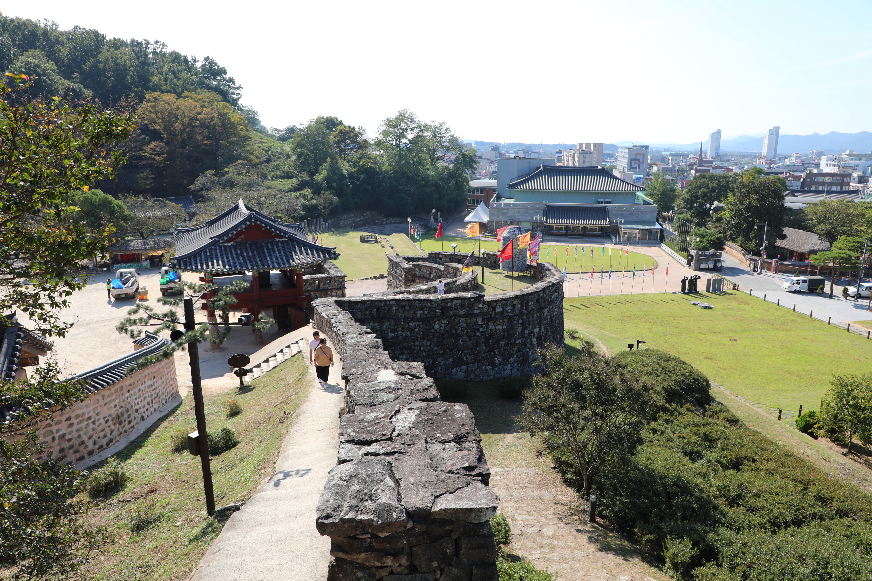 성벽 위에서 보는 정문 밖 공원