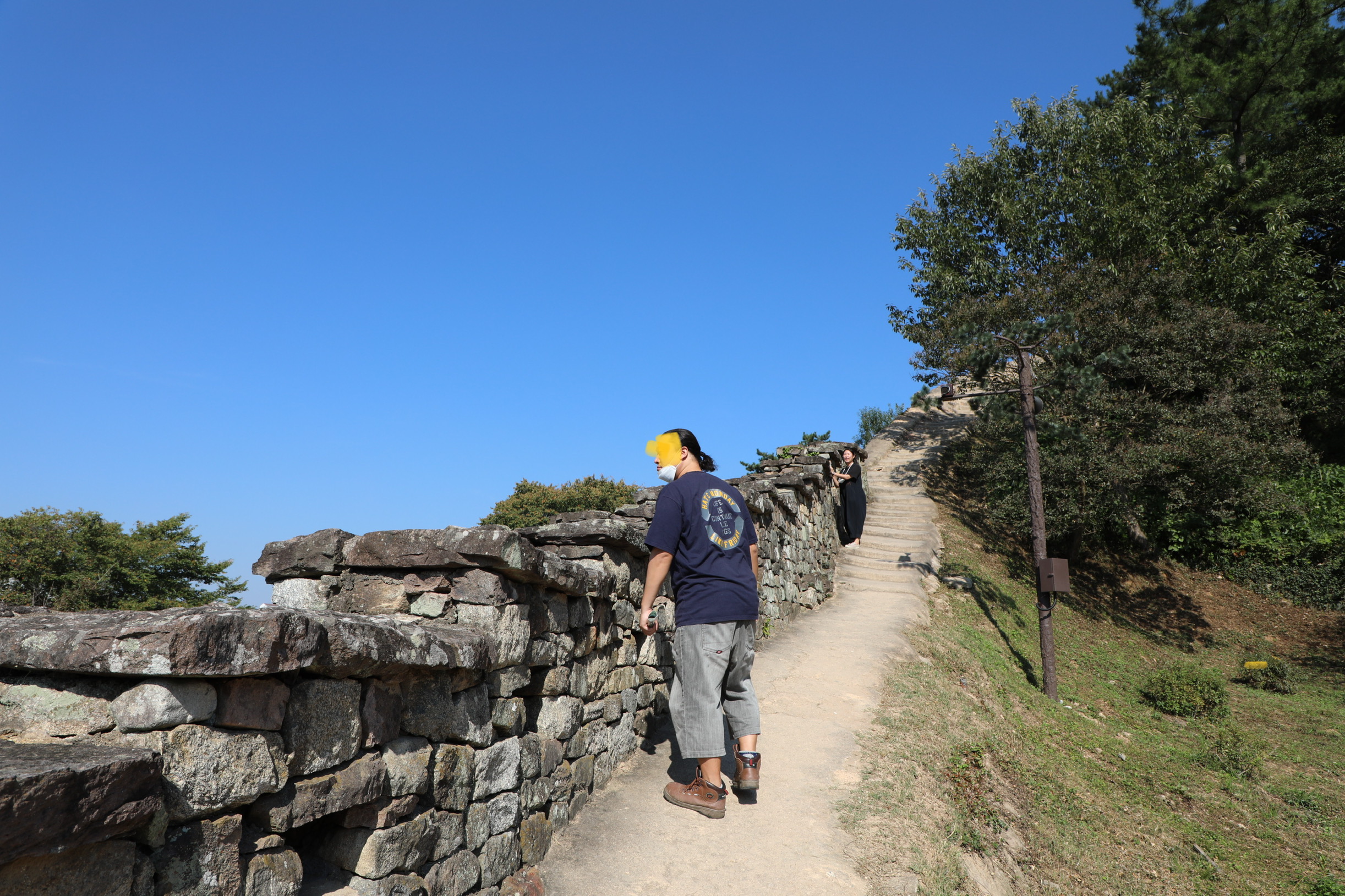 성벽은 안전시설이 없어도 누구나 자연스럽게 오르내릴 수 있다.