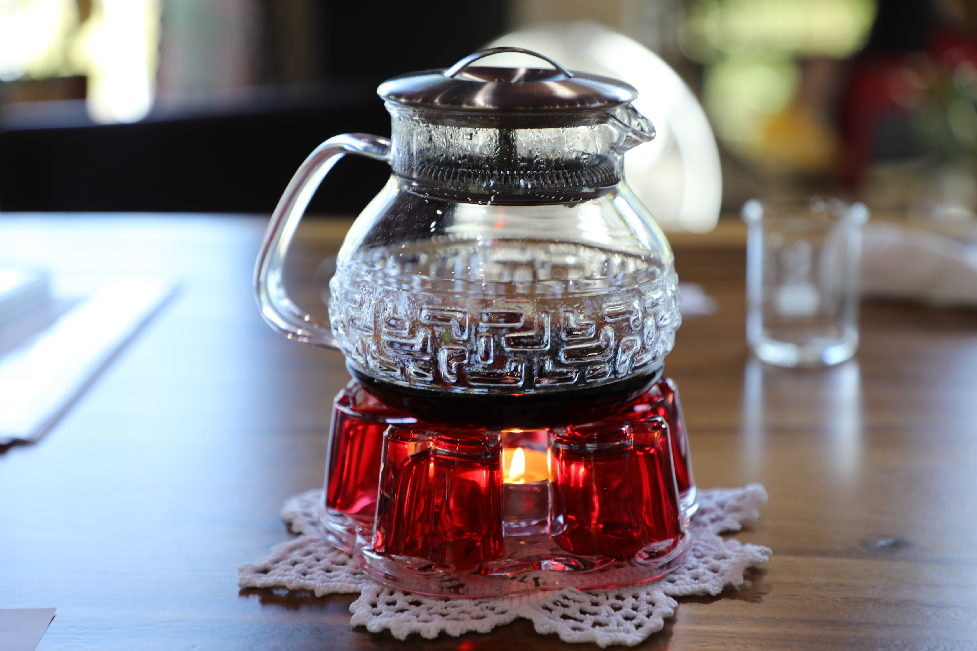 이곳에서 생산한 허브를 데워 블렌딩을 체험하는 동안 마시게 될 허브차를 데우고 있다.