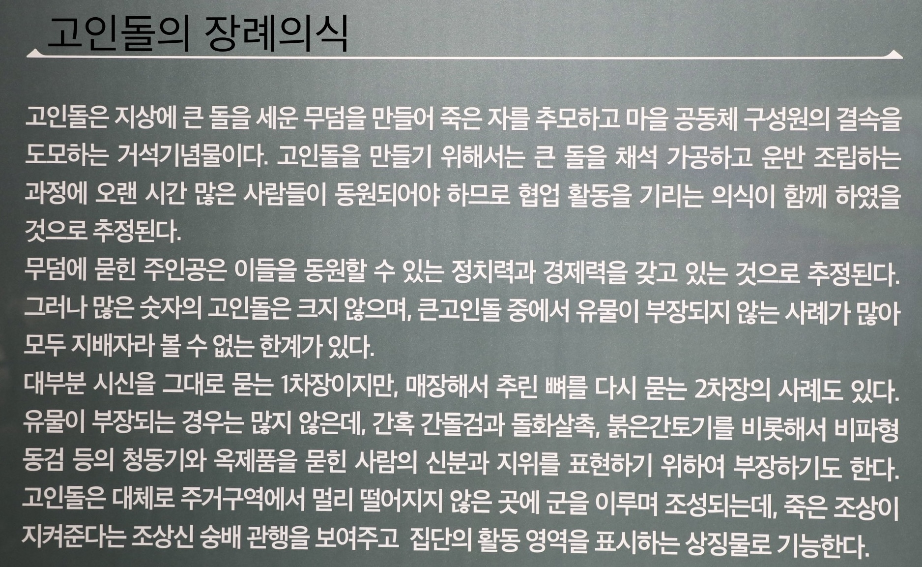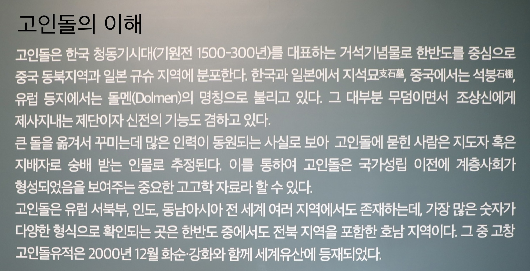고창 고인돌 박물관은 청동기 시대의 각종 유물 및 생활상과 고인돌 문화를 한눈에 살필 수 있는