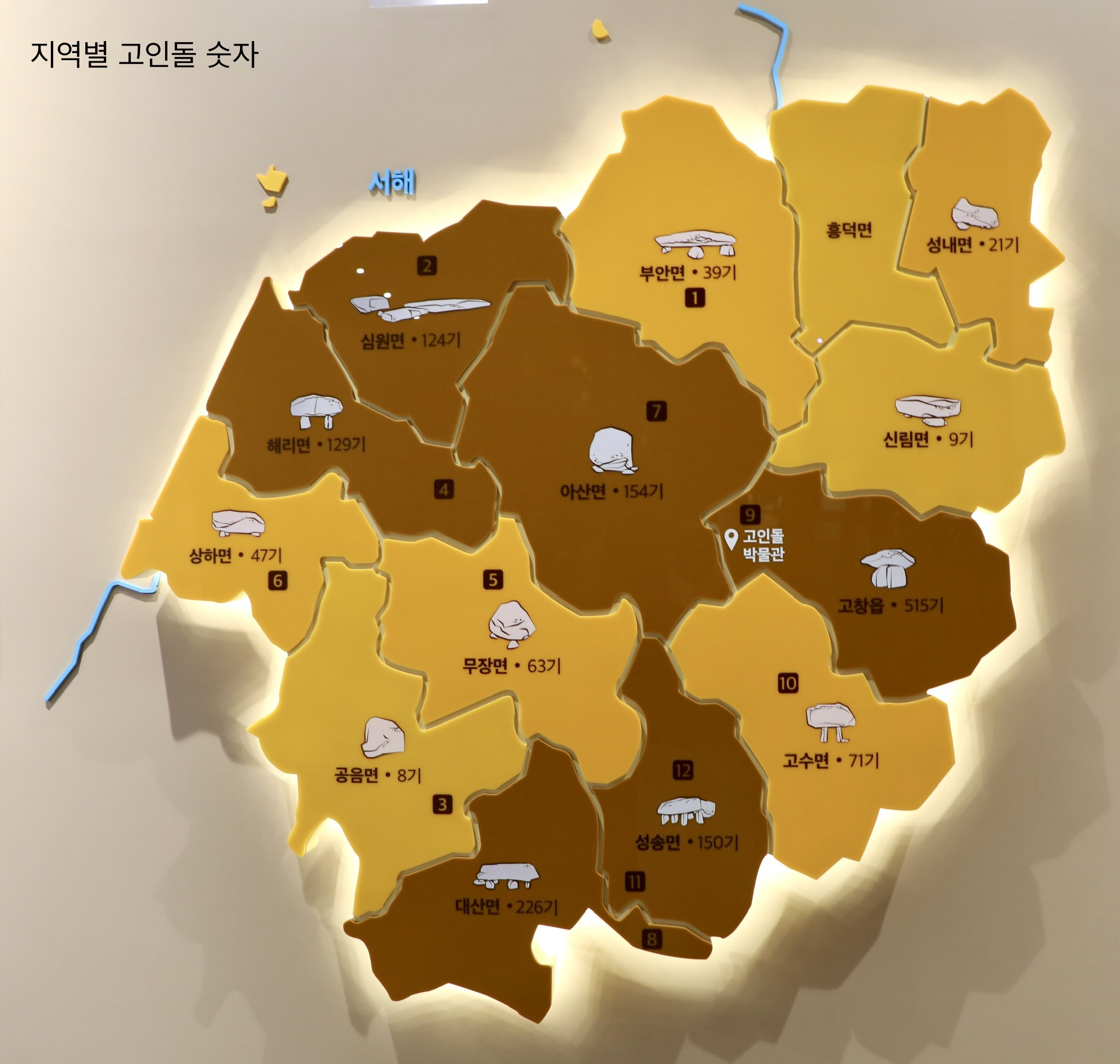 유네스코 세계문화유산인 고창 고인돌 유적지는 세계에서 가장 밀집 분포된 고인돌 군집이다.