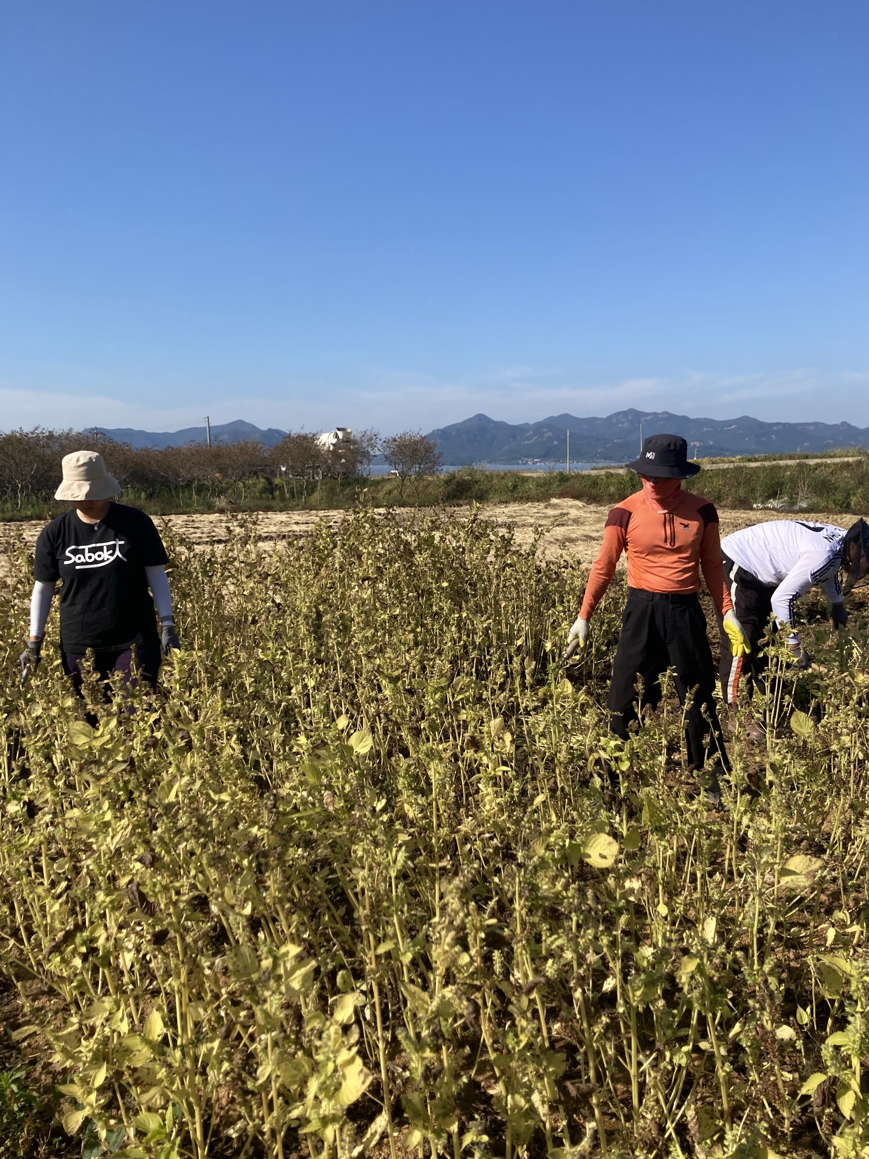 우리 팀 셋이 손을 거들자 넓던 들깨밭도 순식간에 작업이 끝난다.
