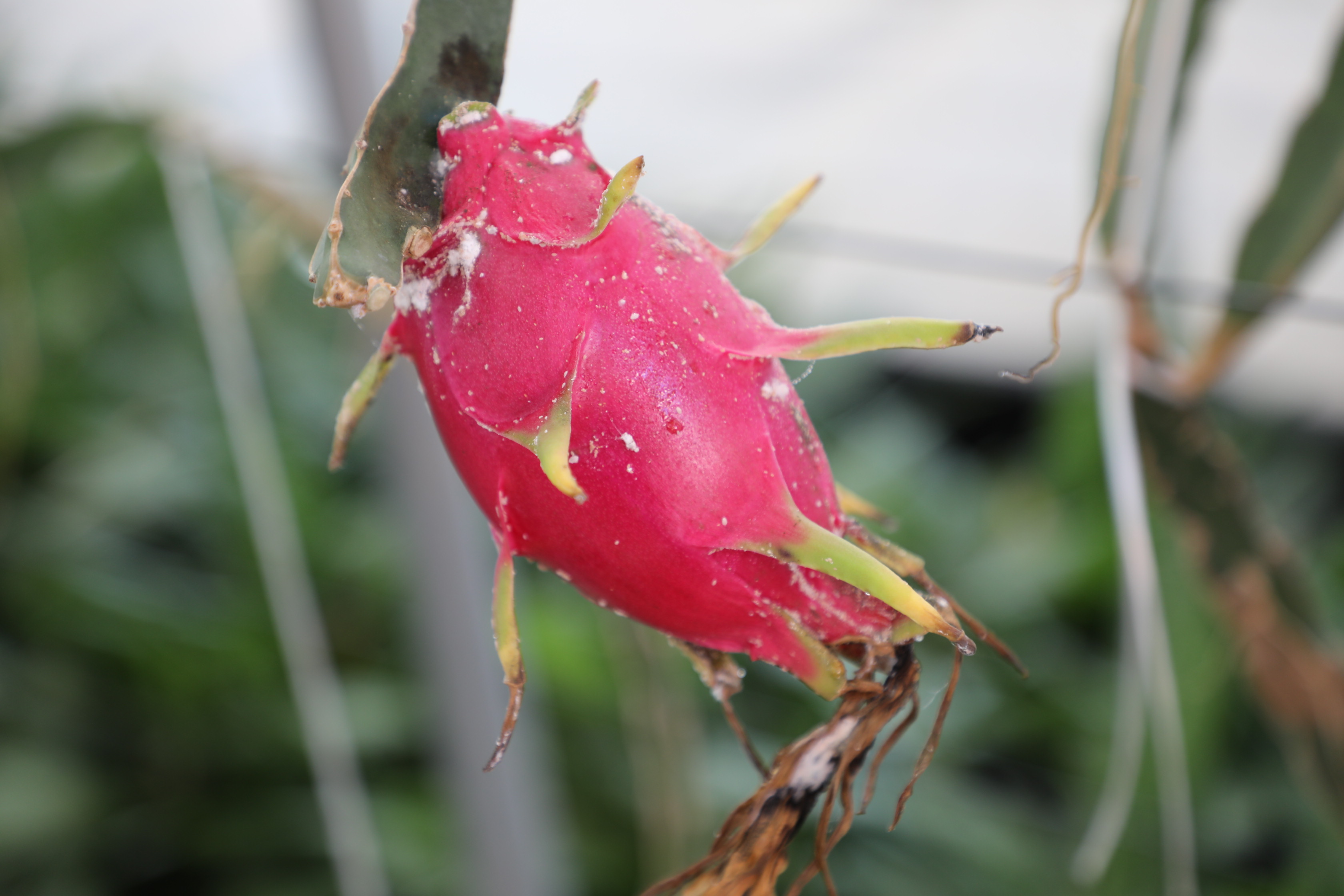 유리온실에서 키우는 용과가 탐스럽게 잘 열렸다.