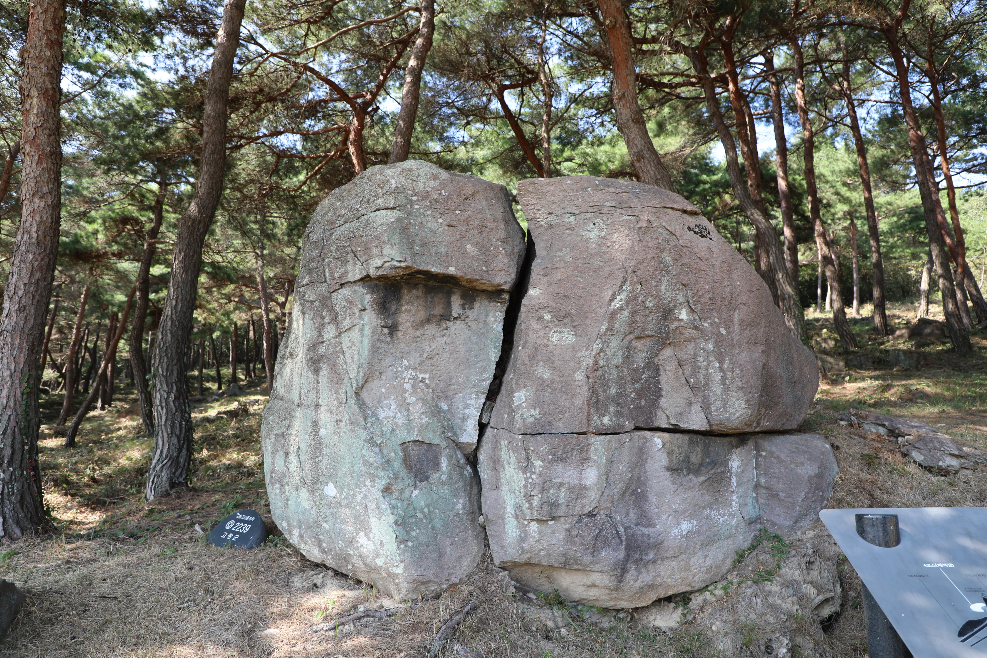 이 고인돌은 크게 세로로 갈라진 뒤 우측 바위는 가로로 또 한 번 갈라지는 신공을 보인다.