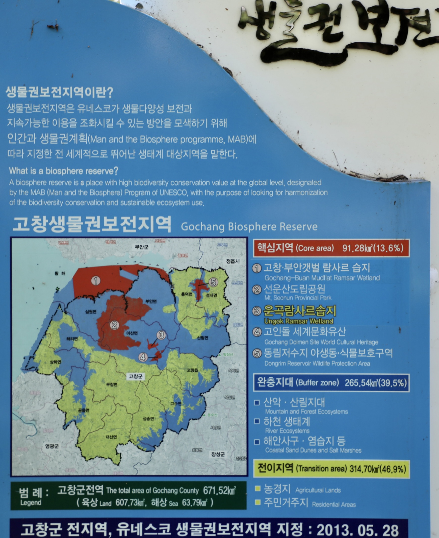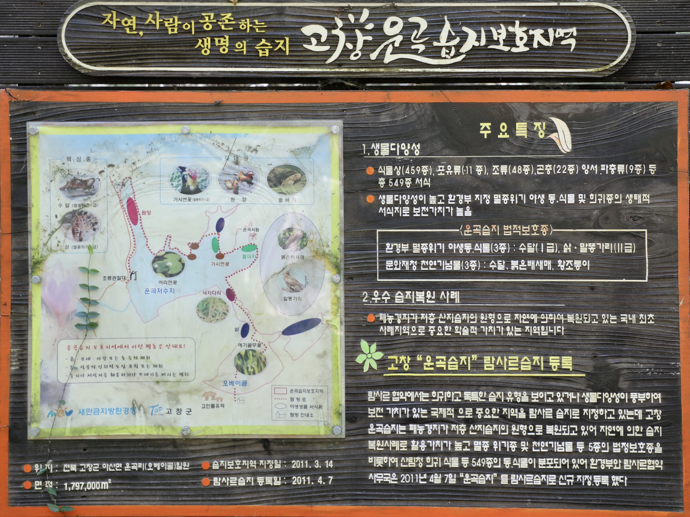고창은 지역 전체가 유네스코가 지정한 생물권 보전지역이면서 운곡습지는 람사르 습지로 지정되기도 했다.