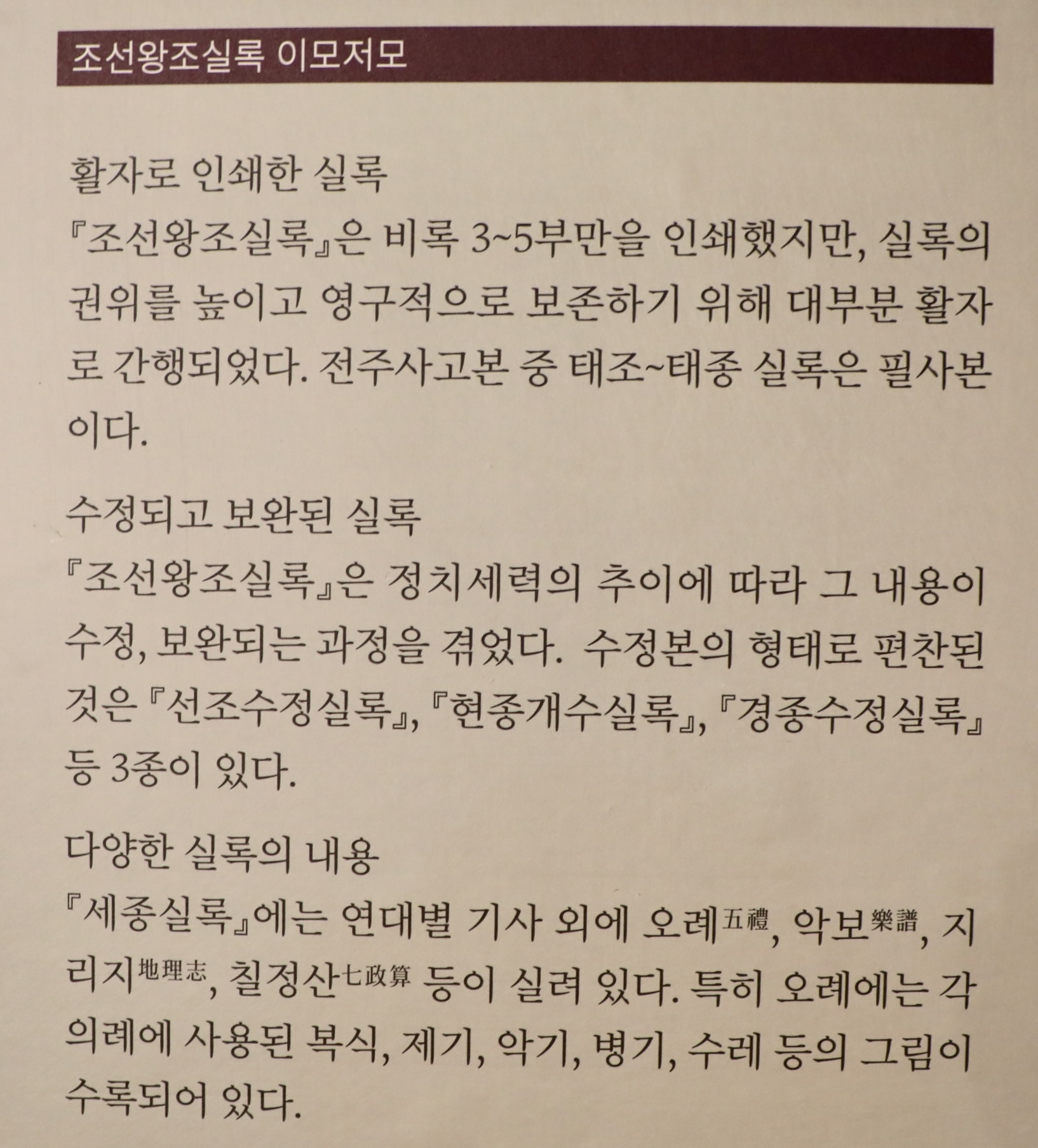 (실록 47궤, 기타 13궤)에 보관되고 있었다. (안내문)