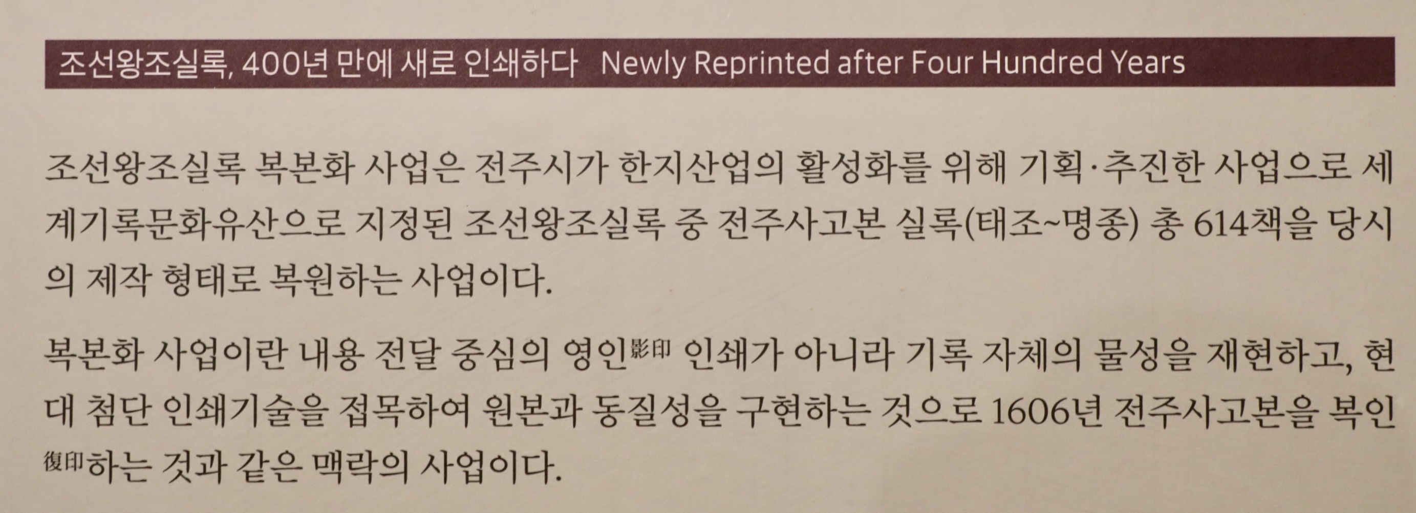 조선왕조는 실록의 안전한 보존을 위하여 첫 번째 실록인 「태조실록」이 완성된 후부터 실록의 복본을 만들어