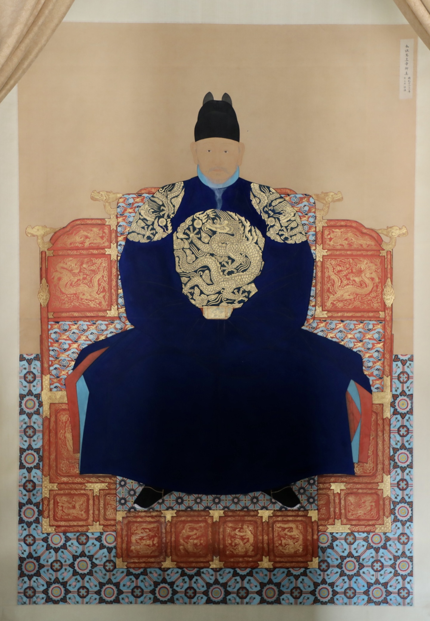 태조어진은 평상시 집무복인 익선관과 청령포 차림의 전신상이다.