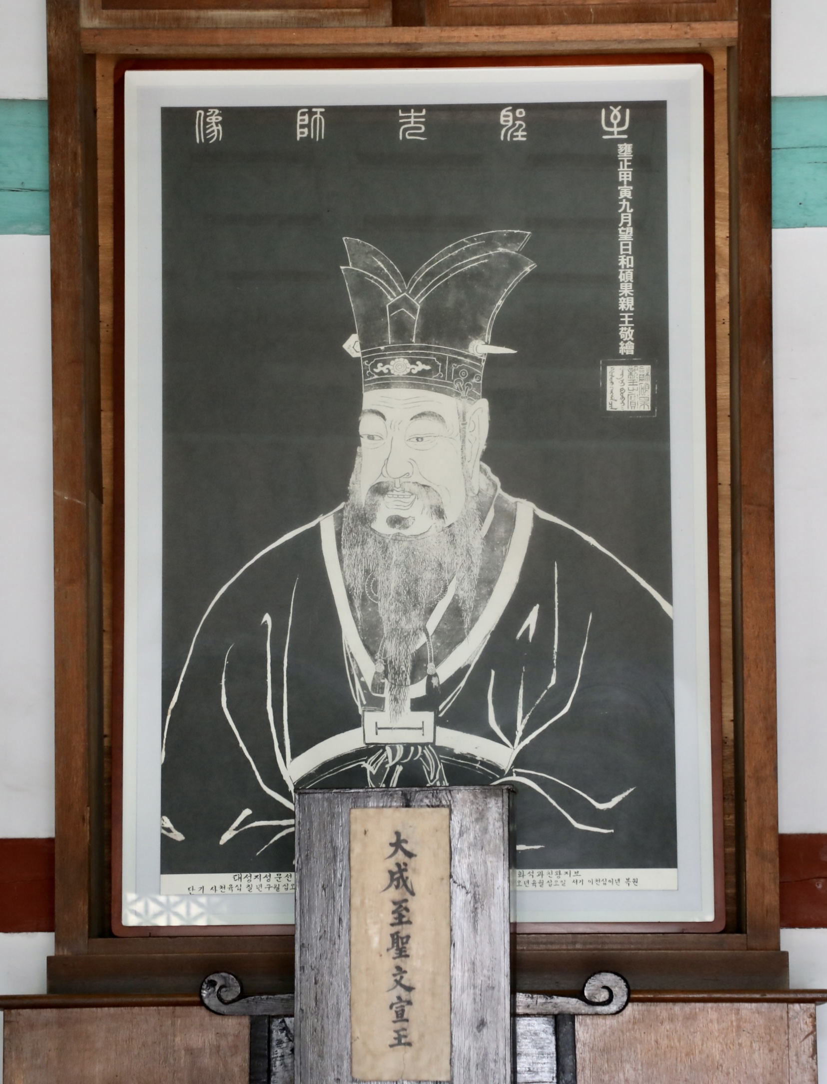 孔夫子를 정위로 모시고, 안자, 증자, 자사, 맹자를 중앙에, 그 외 아국 18현을 동서벽에, 공문십철, 송조육현과