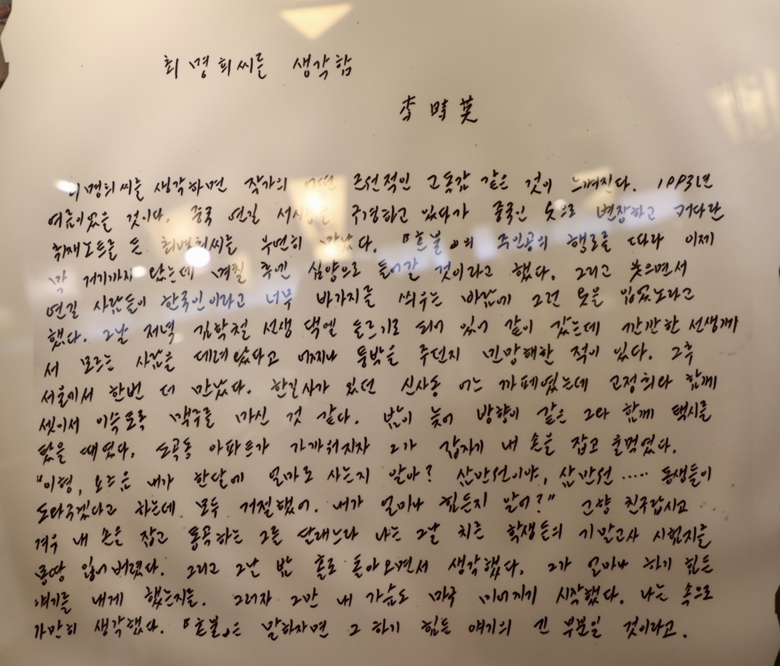최명희 선생은 생전 ‘아름다운 조각품을 볼 때,