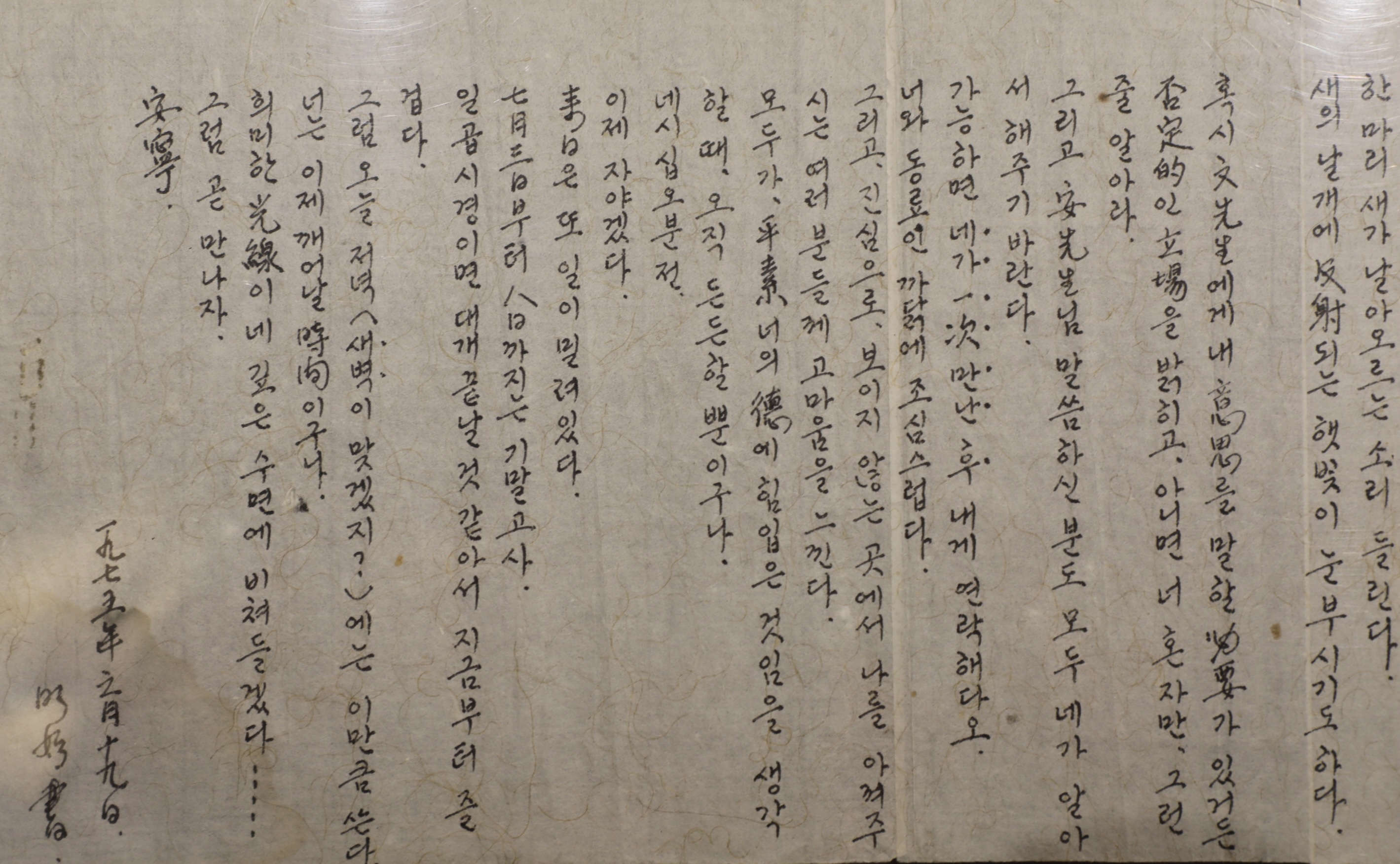 금림 친구에게도 만년필로 한문처럼 아래 쓰기, 좌측으로 써 내려간 서한문이다.