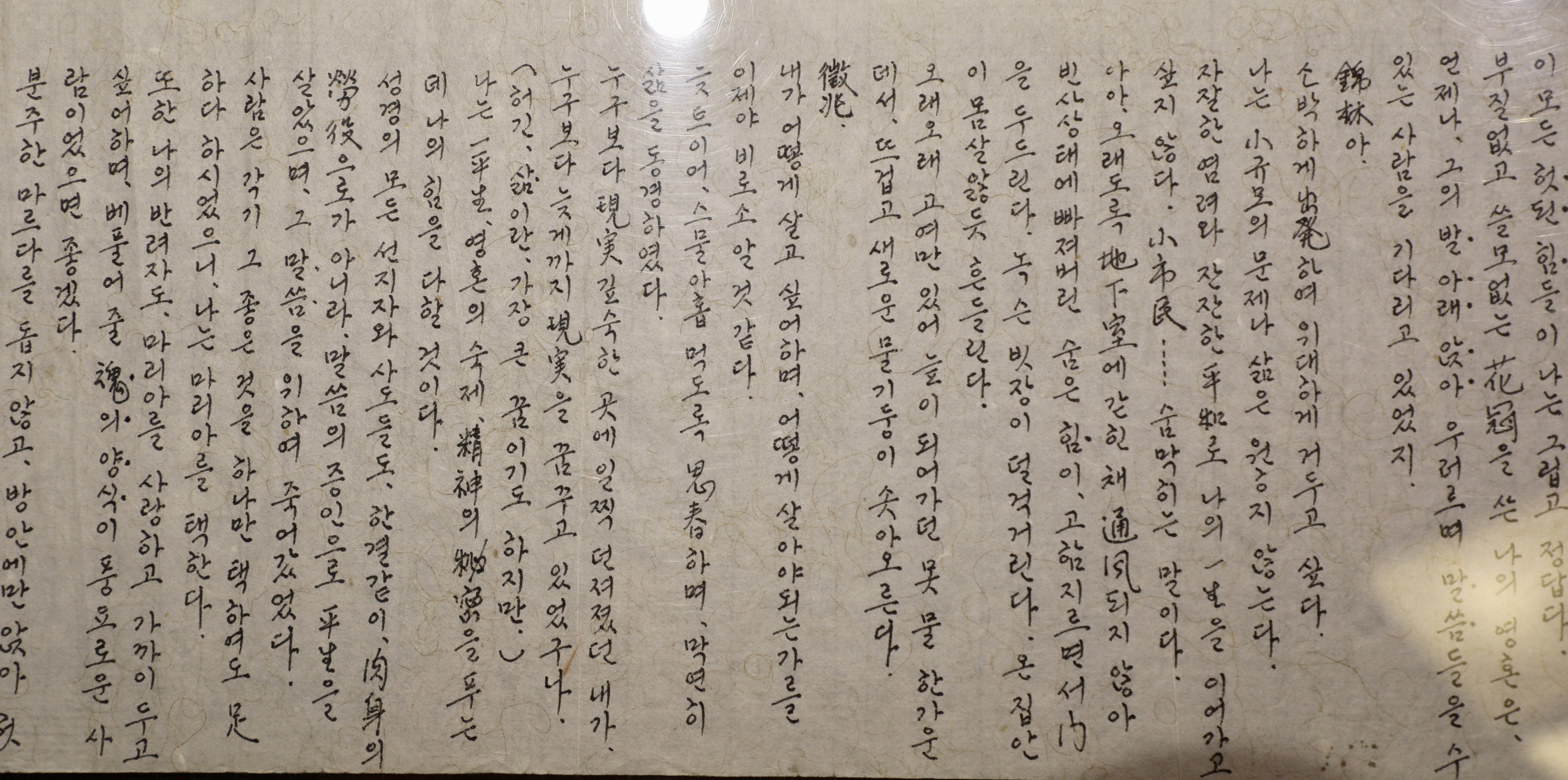 최명희 작가는 혼불 전권을 만년필로 한 자 한 자 정성스럽게 써 내려간 작품이다.