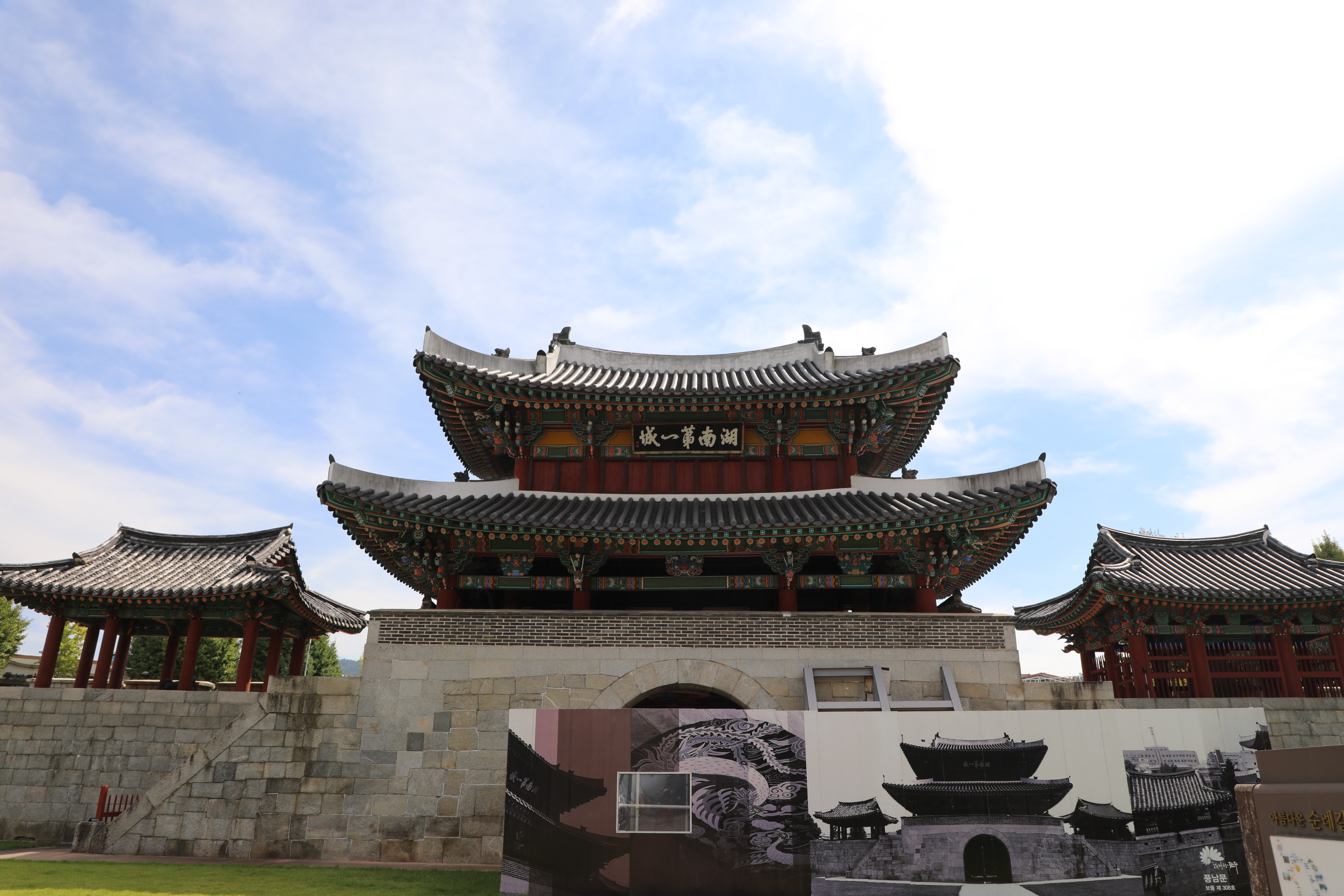 북쪽 면에는 전라도 행정 중심지로서의 의미인 ‘호남 제일성(湖南第一城)’이라고 쓴 현판이 걸려 있다.