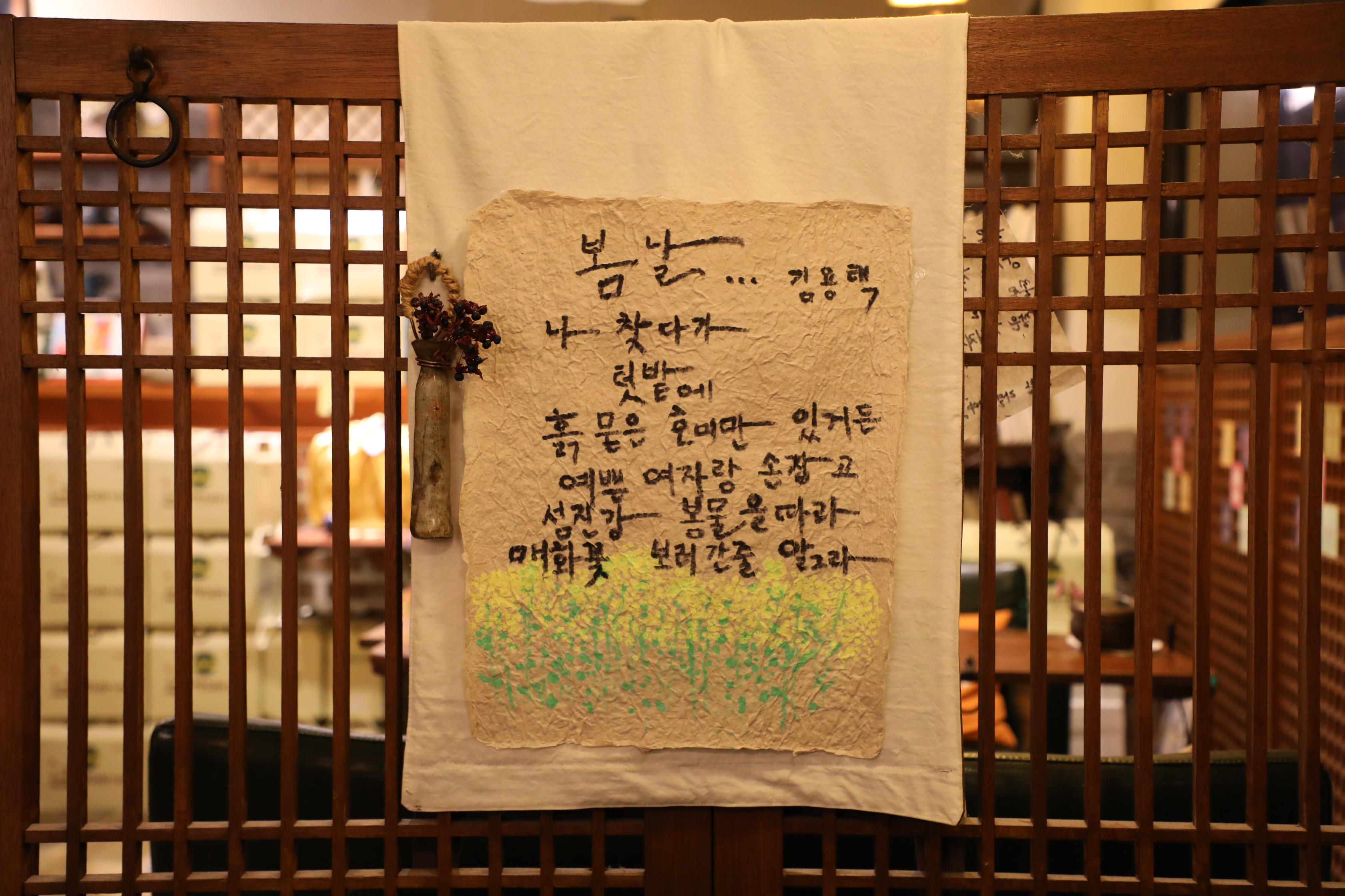 가게 주인이 김용택 시인의 시를 좋아하나 보다.