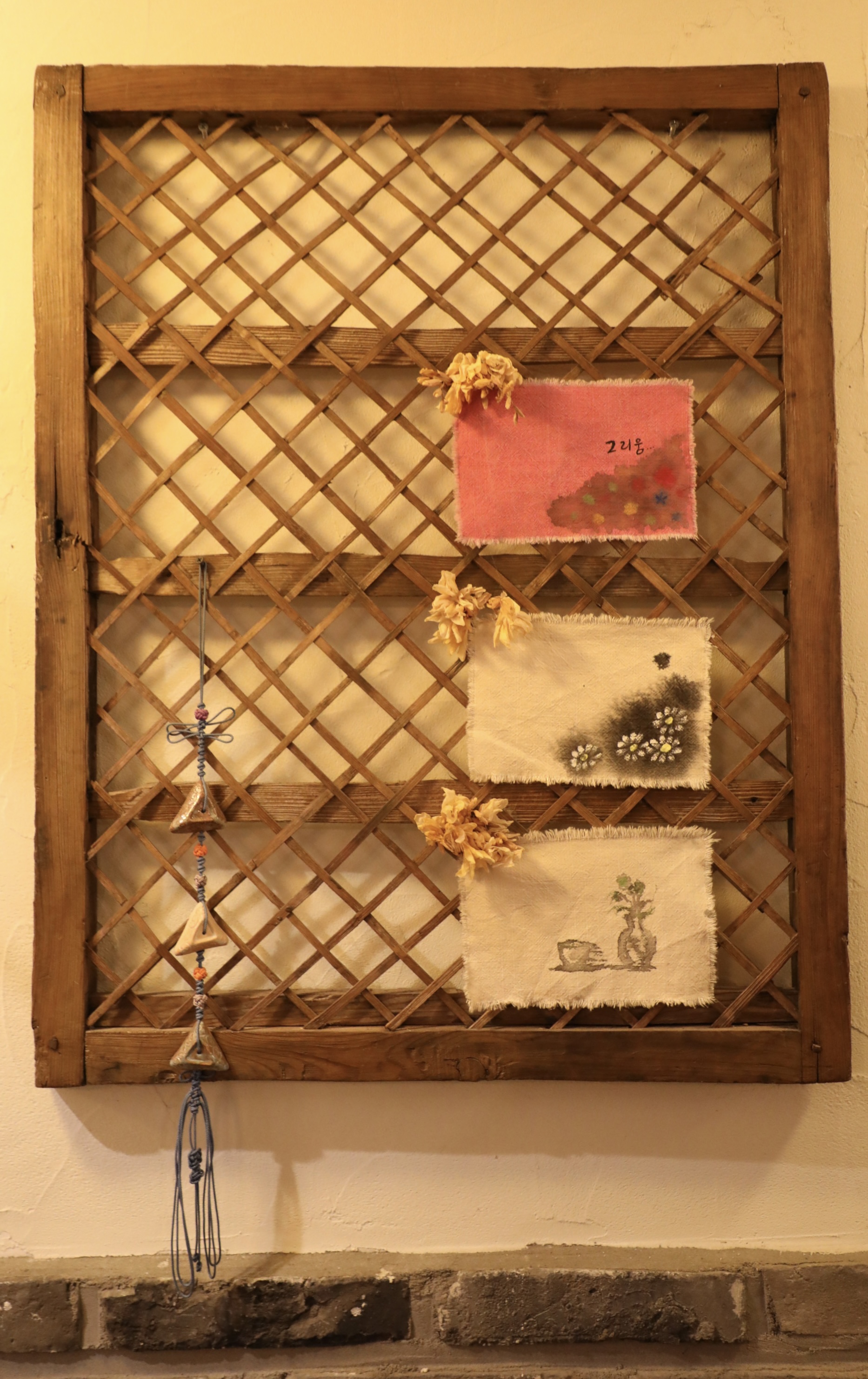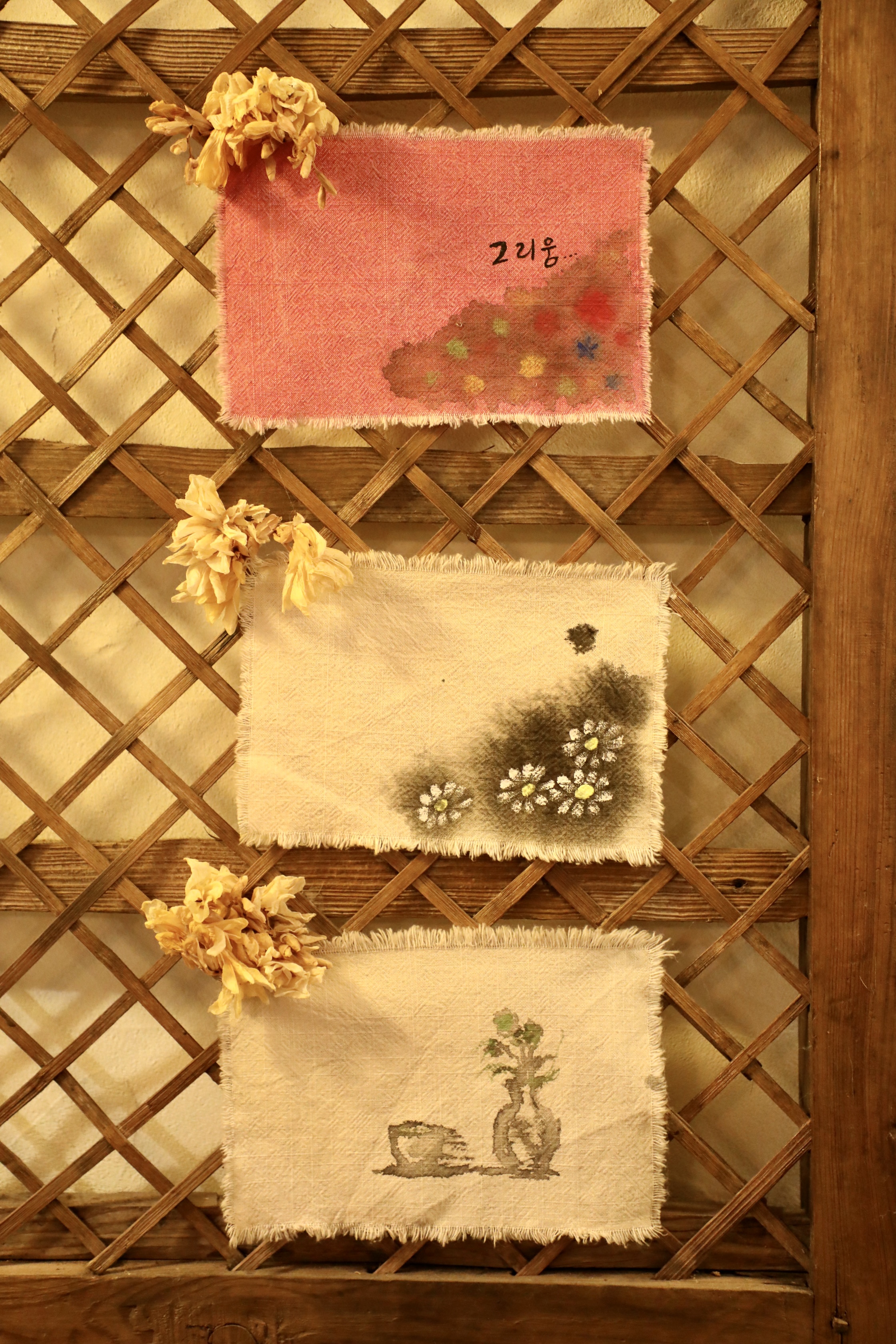 광목천인지 뭔지 모를 천에 간단한 그림을 넣어 액자 같은 느낌을 준다.