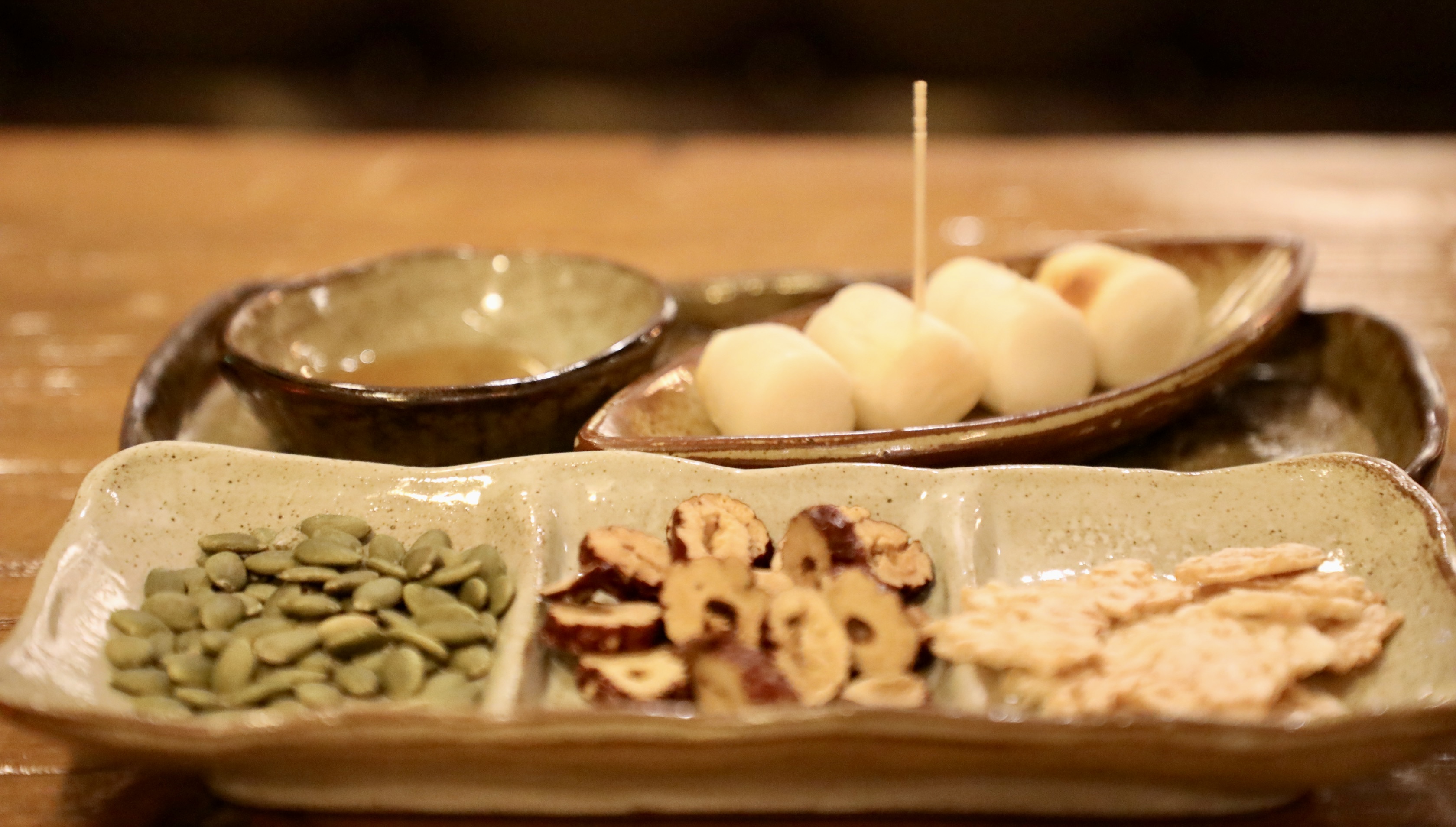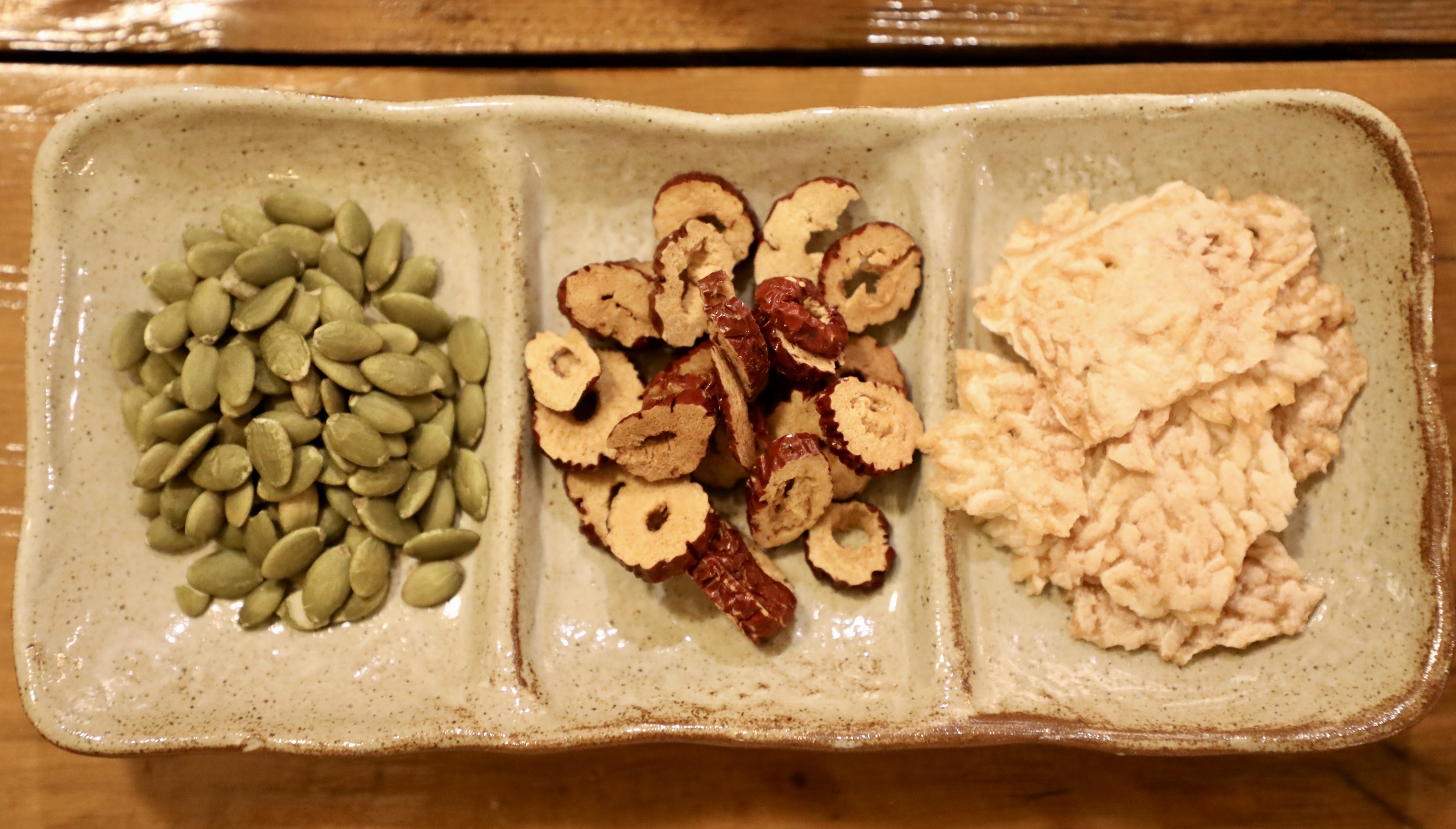 호박씨와 말린 대추, 누룽지가 먼저 나왔다.