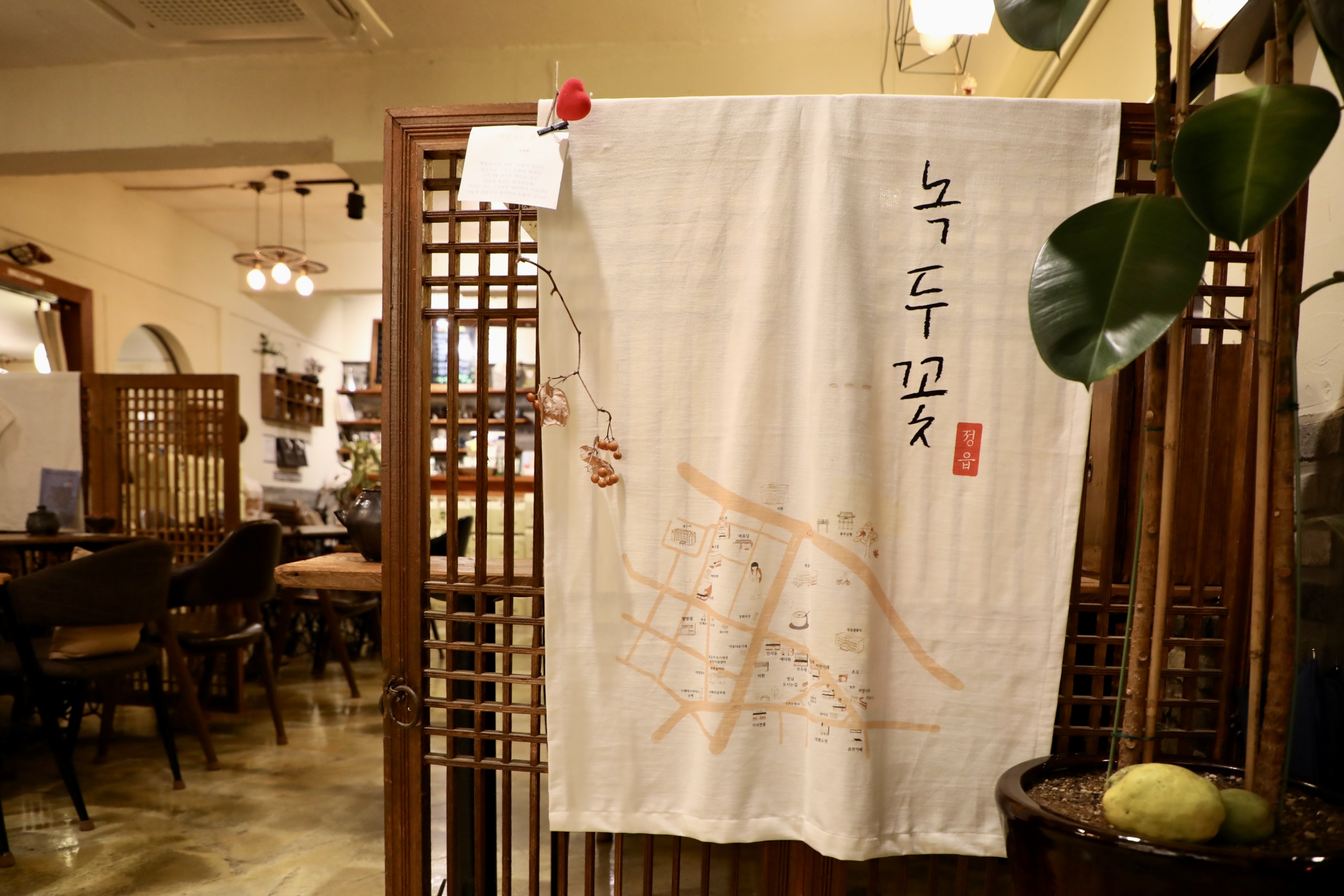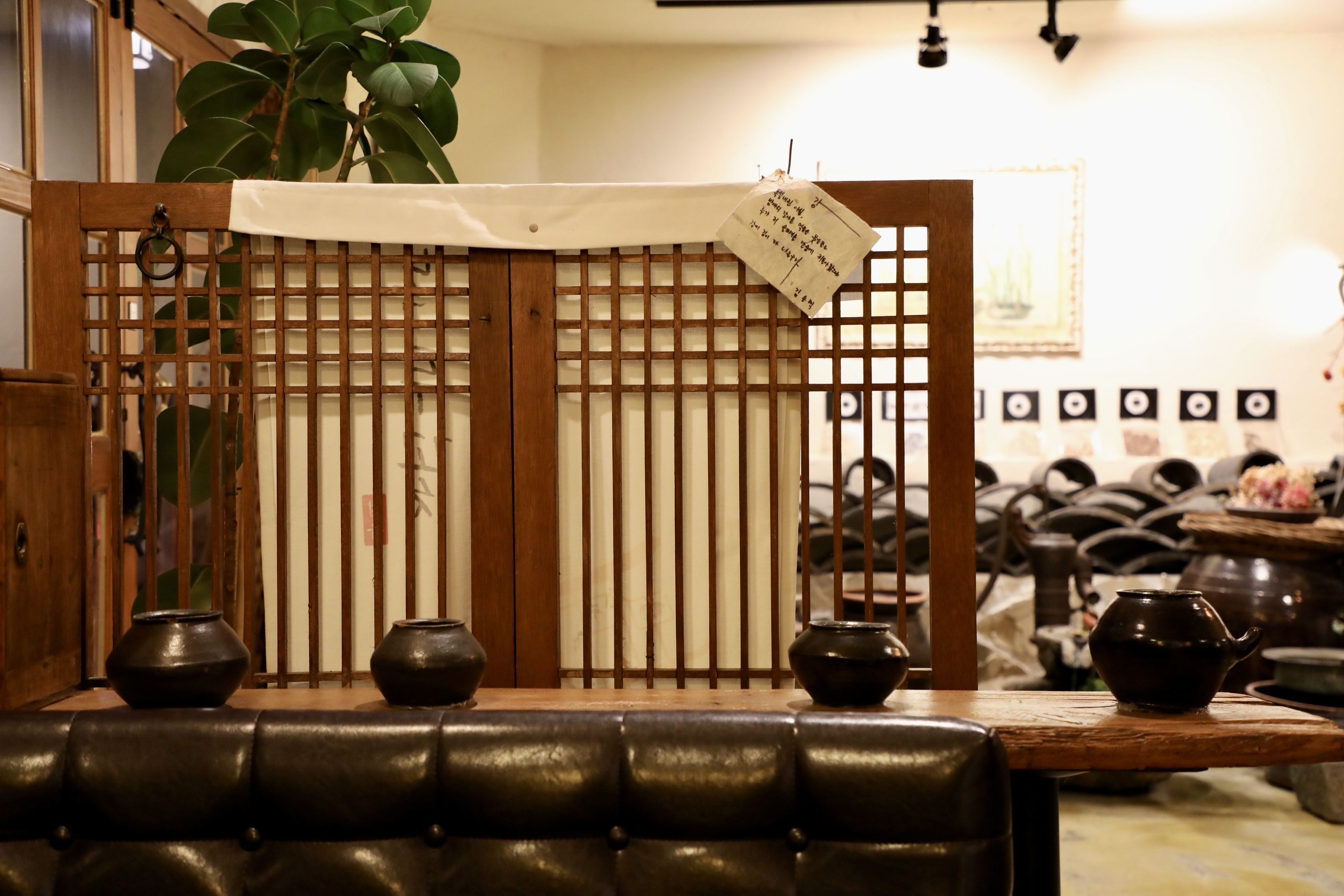 녹두꽃 쌍화탕 집에서 가장 큰 인테리어는 단연 문짝이다.