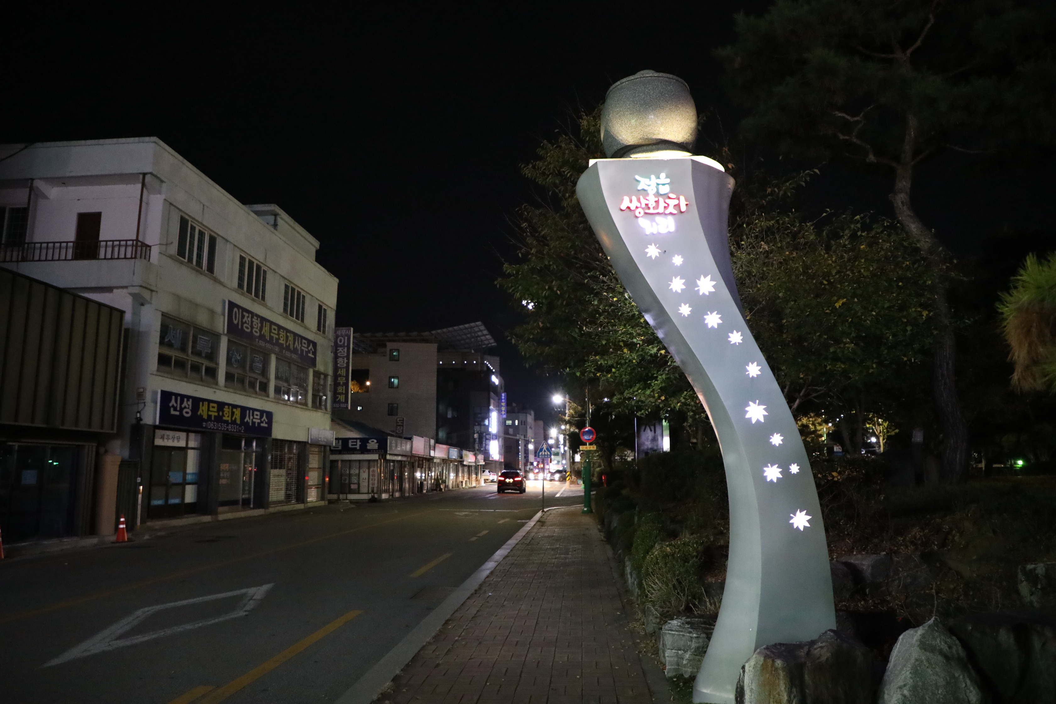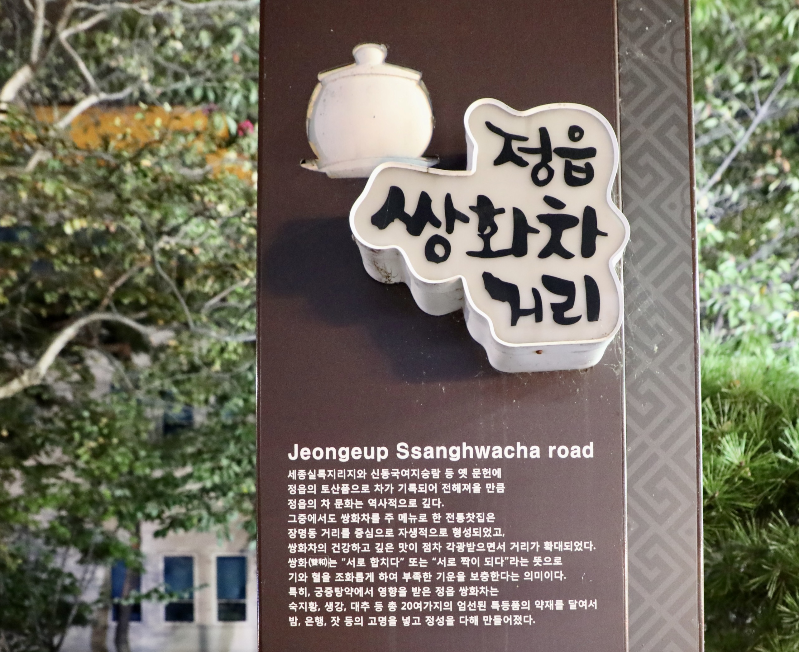 정읍 시내에서 저녁을 먹고 거리를 걷는데 정읍 쌍화차 거리라는 표지판을 본다.