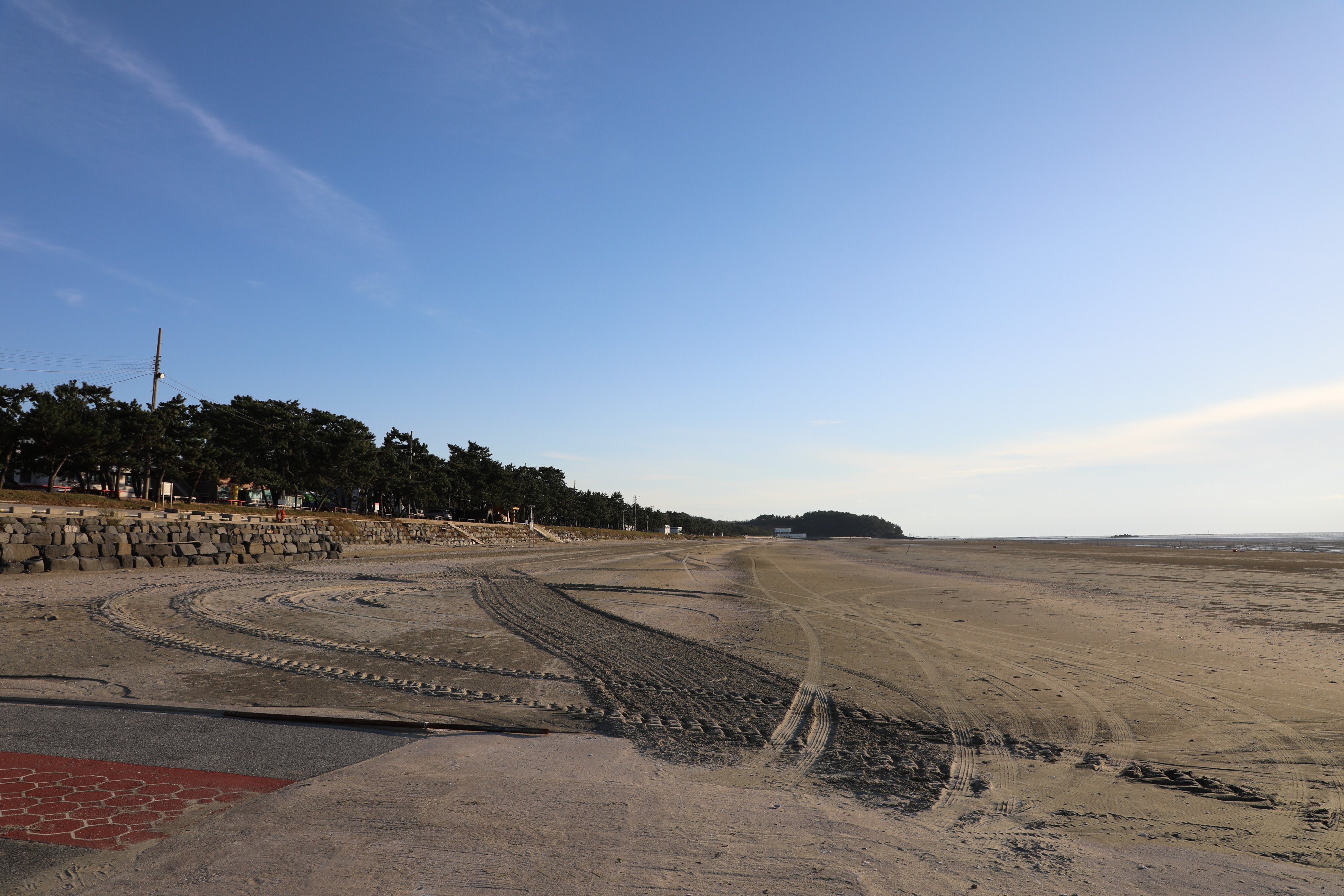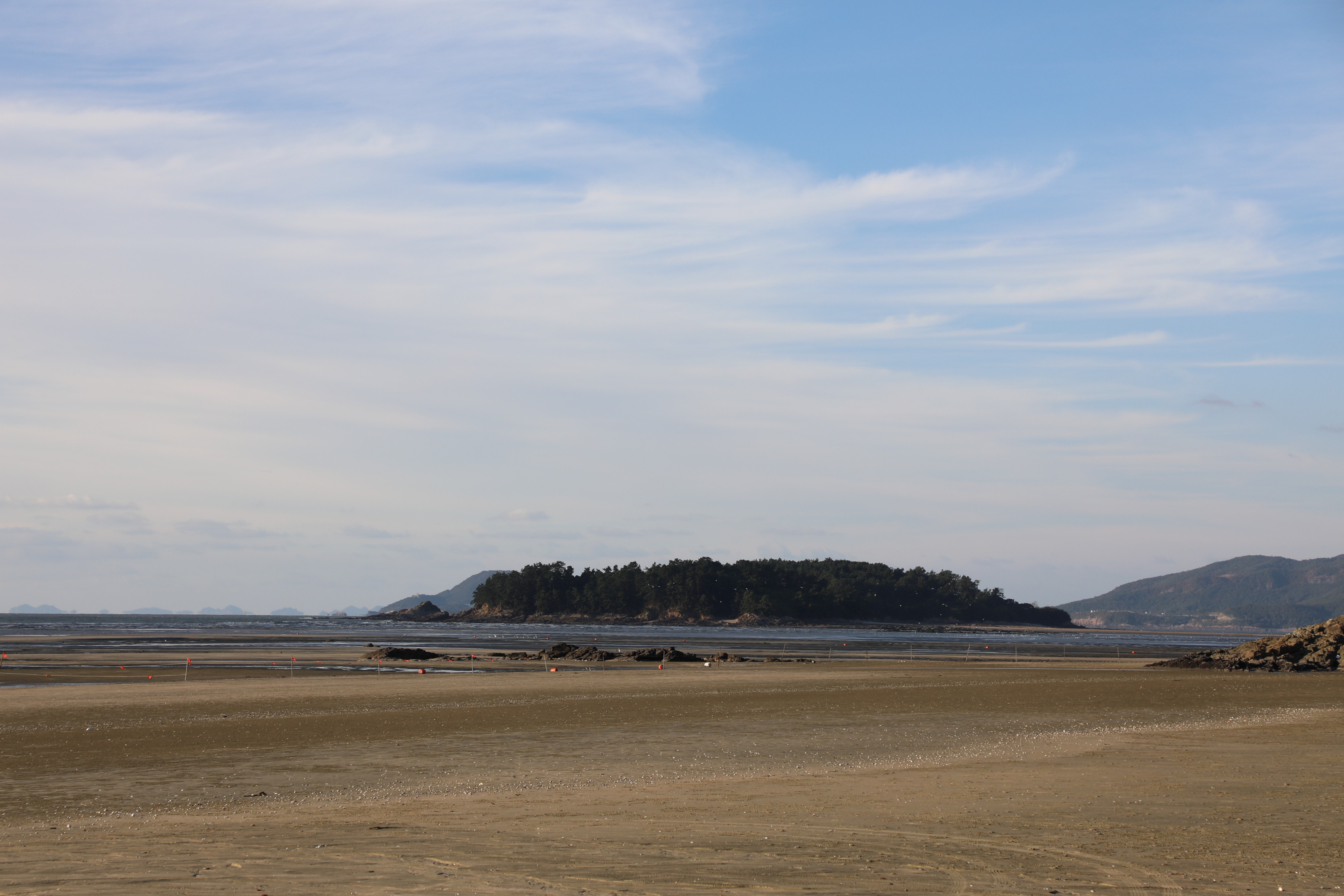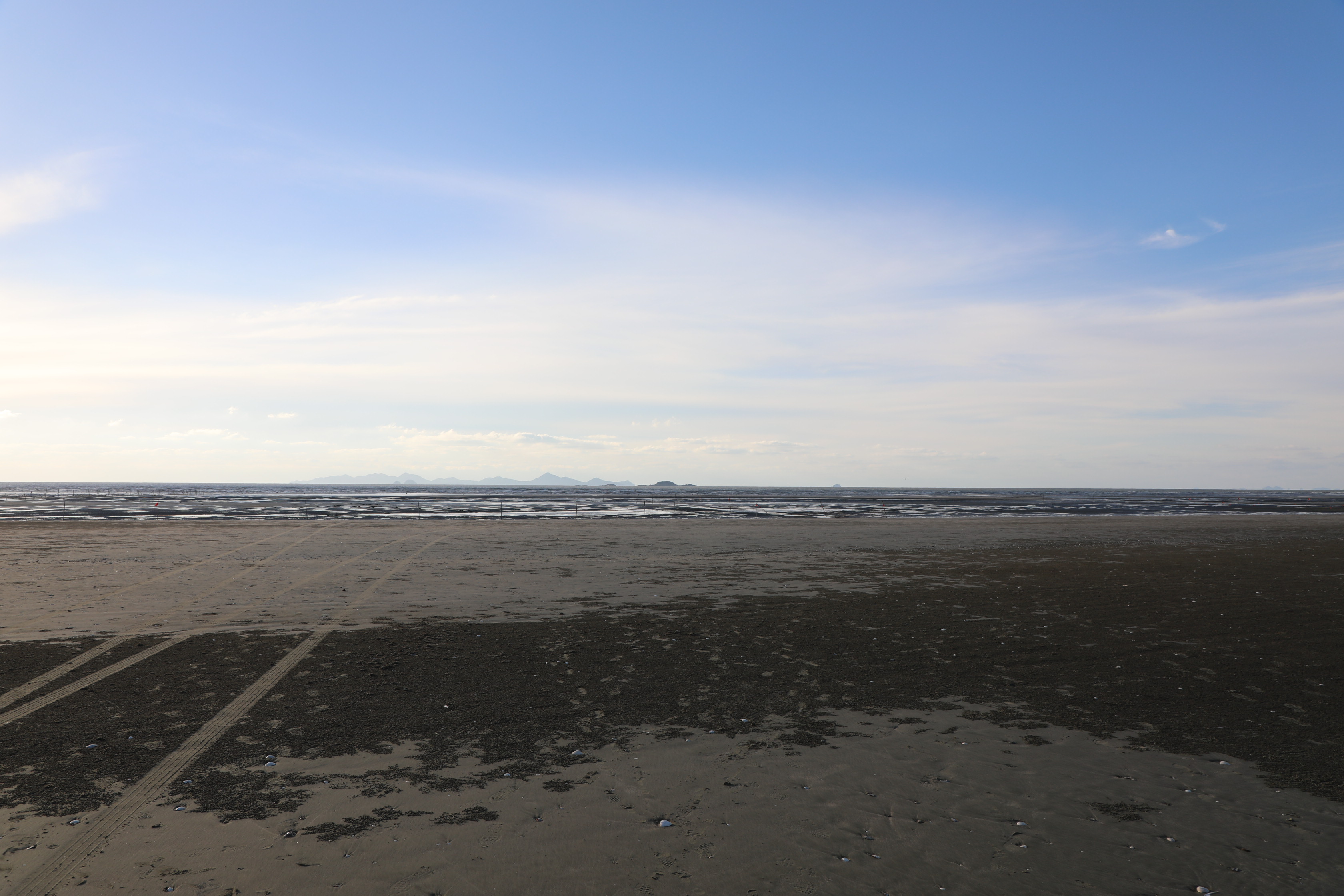 썰물에 바닷물이 빠져나가면 드러난 해안선이 끝없이 펼쳐져 바다가 보이지 않을 정도로 멀다.