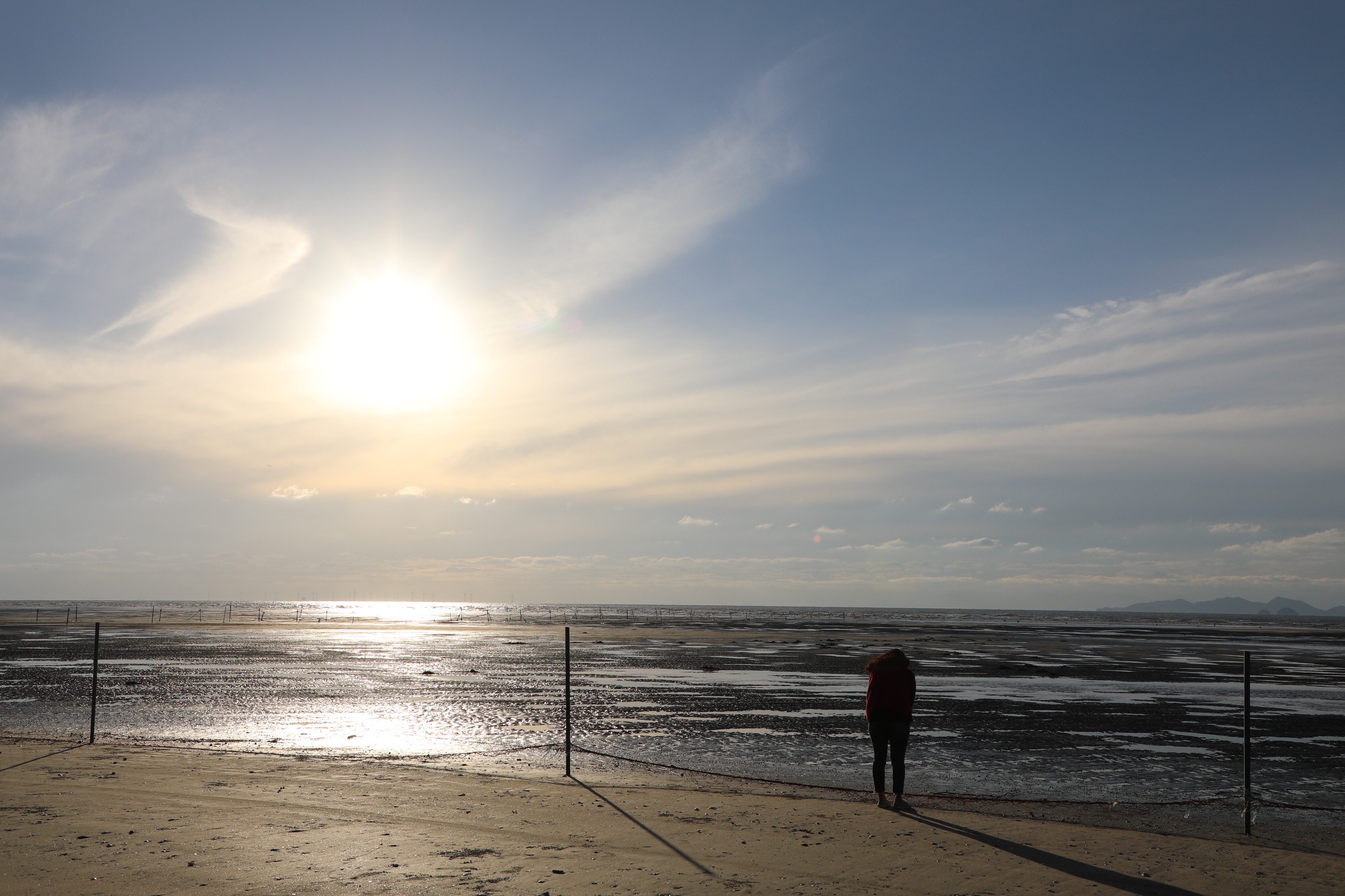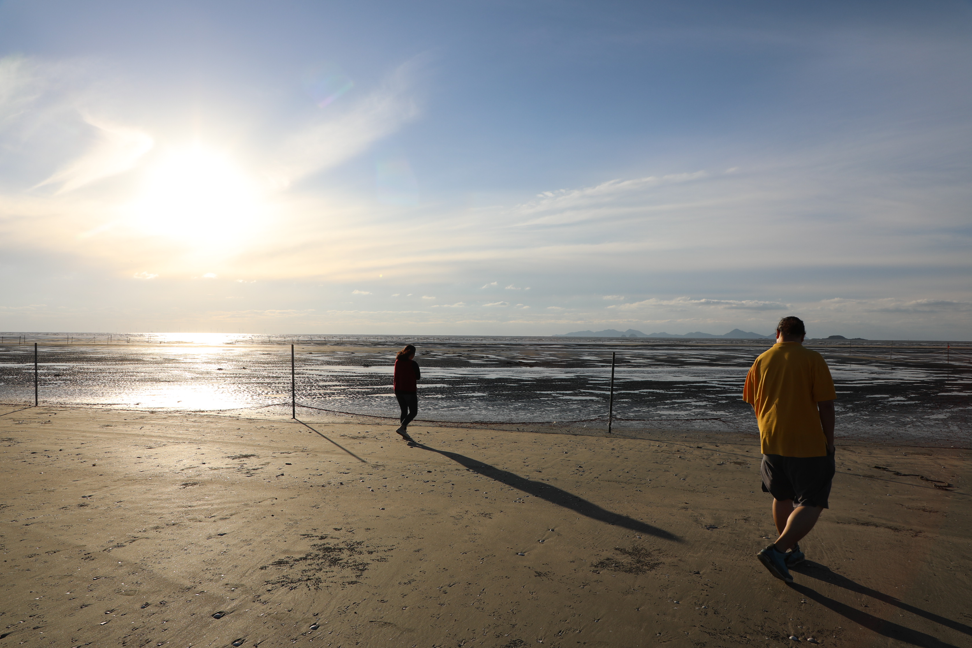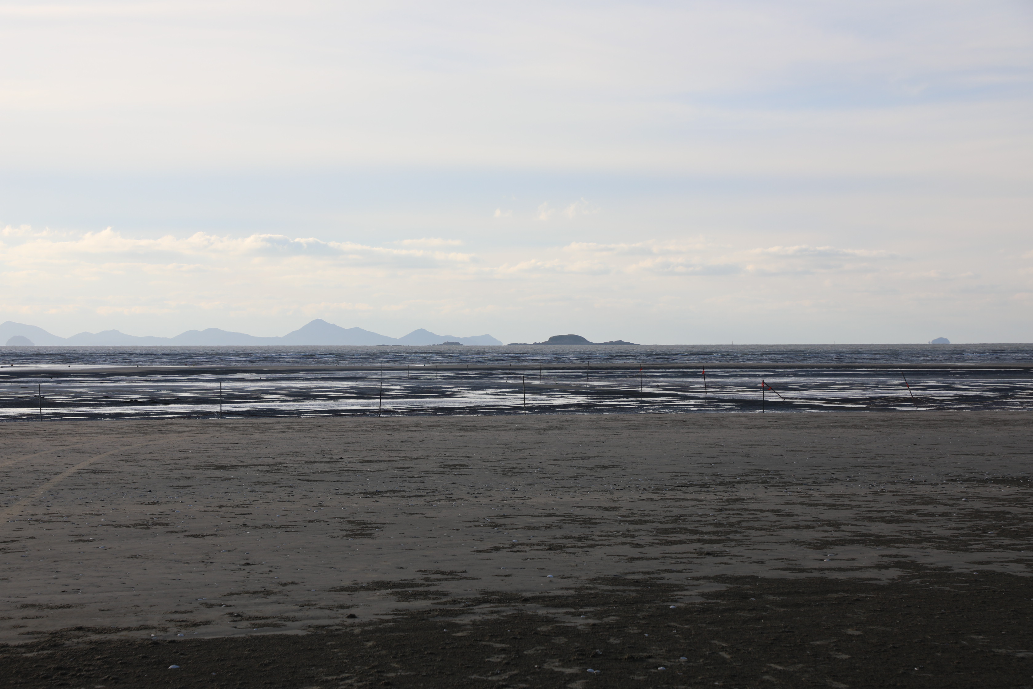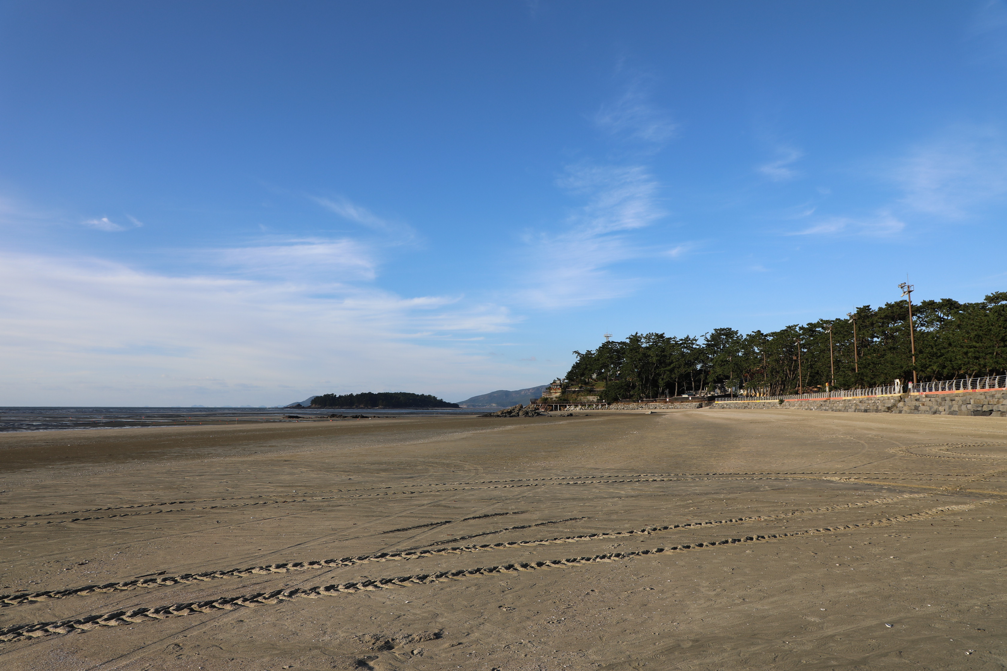 썰물에 바닷물이 빠져나가면 드러난 해안선이 끝없이 펼쳐져 바다가 보이지 않을 정도로 멀다.