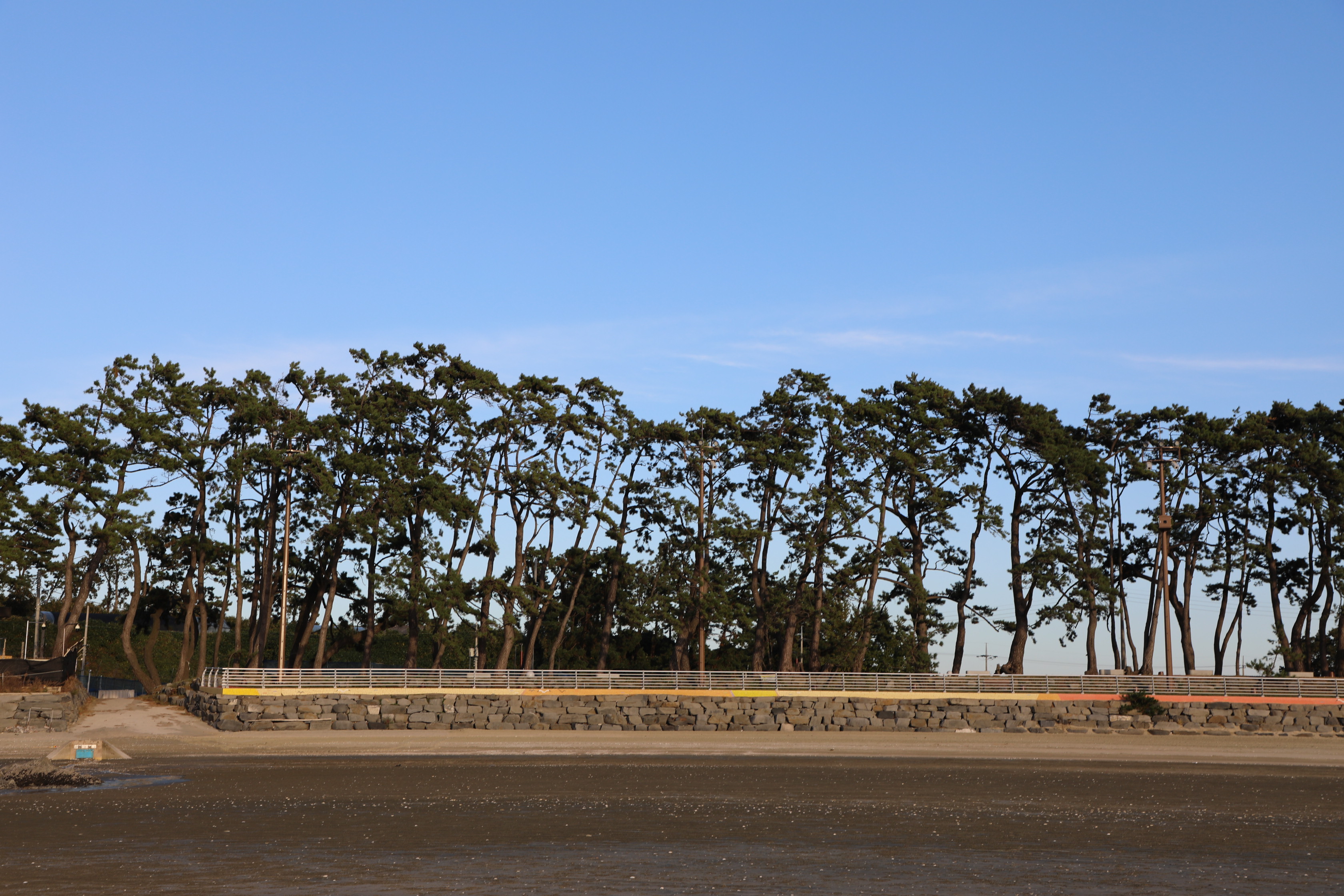 백사장 뒤쪽으로 가지런히 서있는 아름드리 소나무가 만들어내는 그늘은