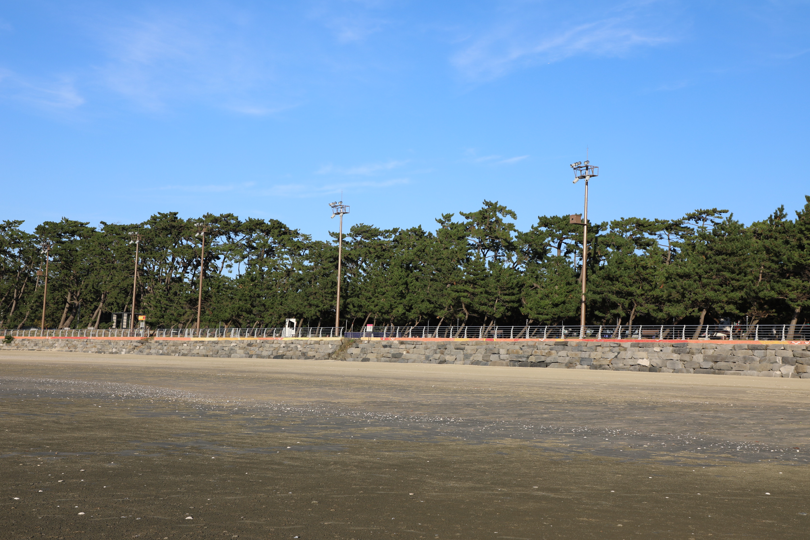 수백년 된 소나무 숲이 장관을 이루고, 4km의 백사장은 모래가 가늘며 경사가 완만하다.