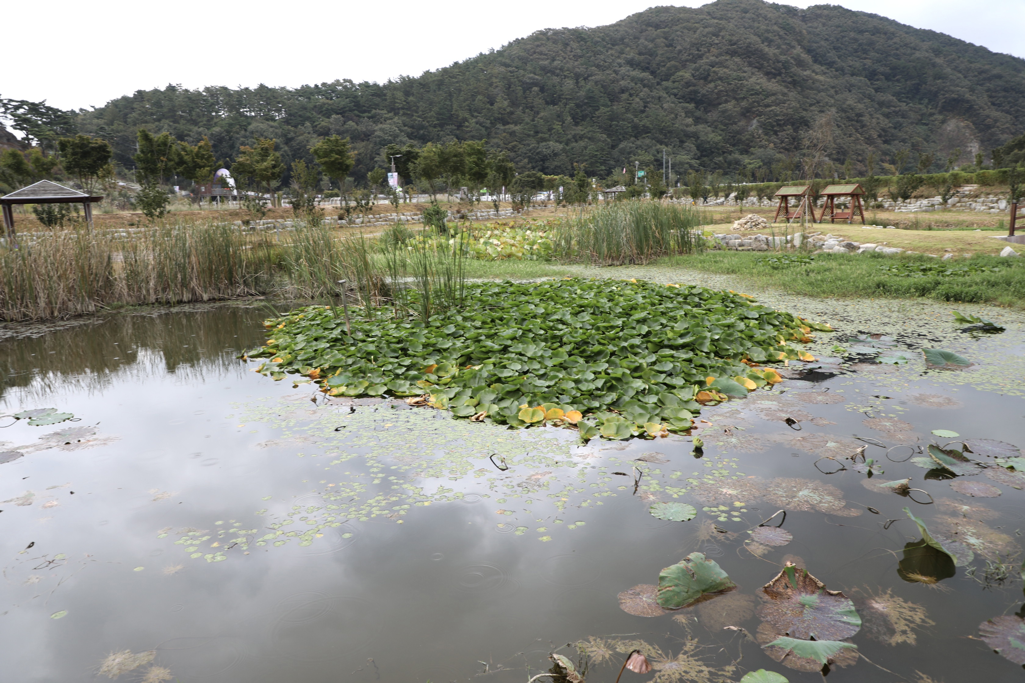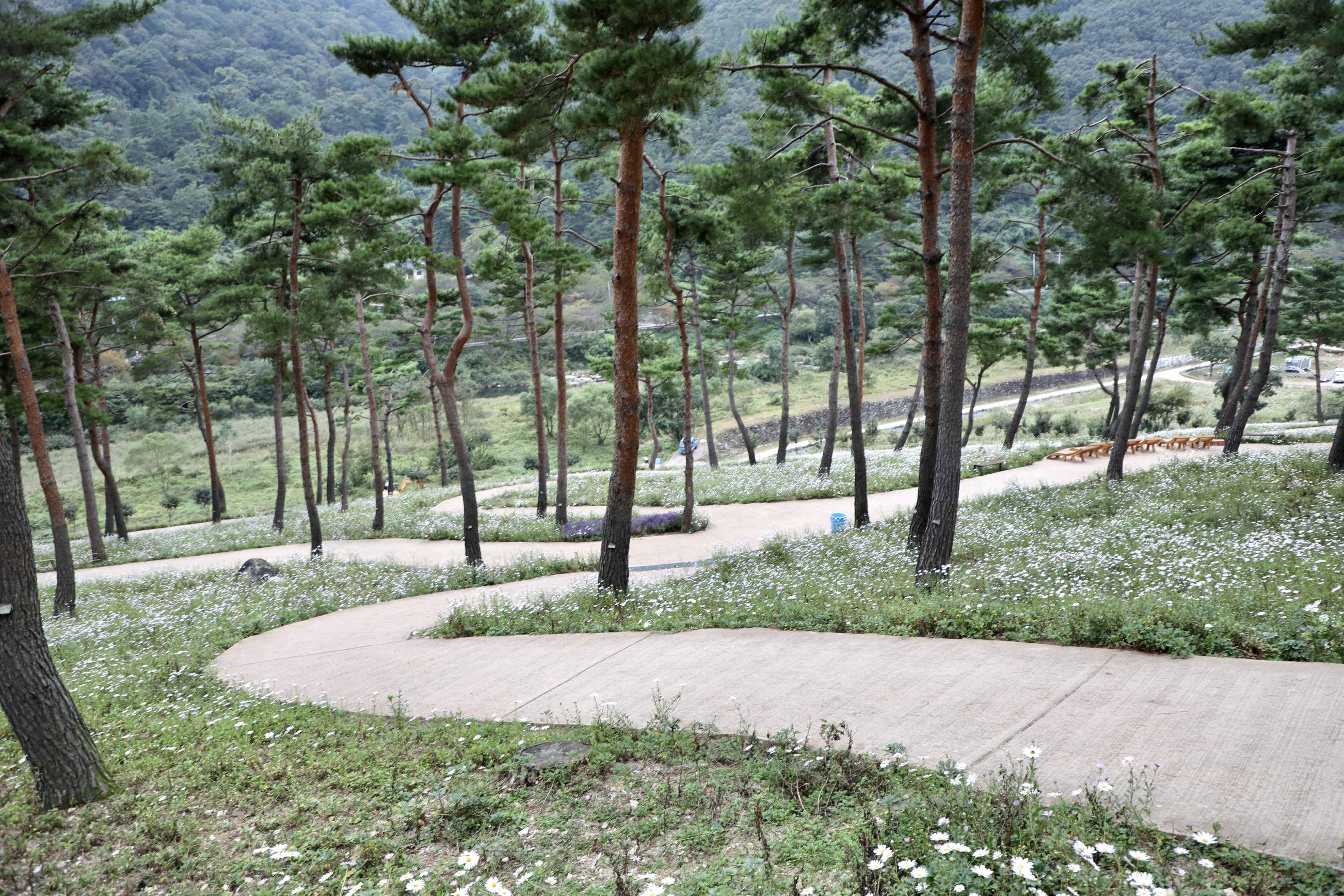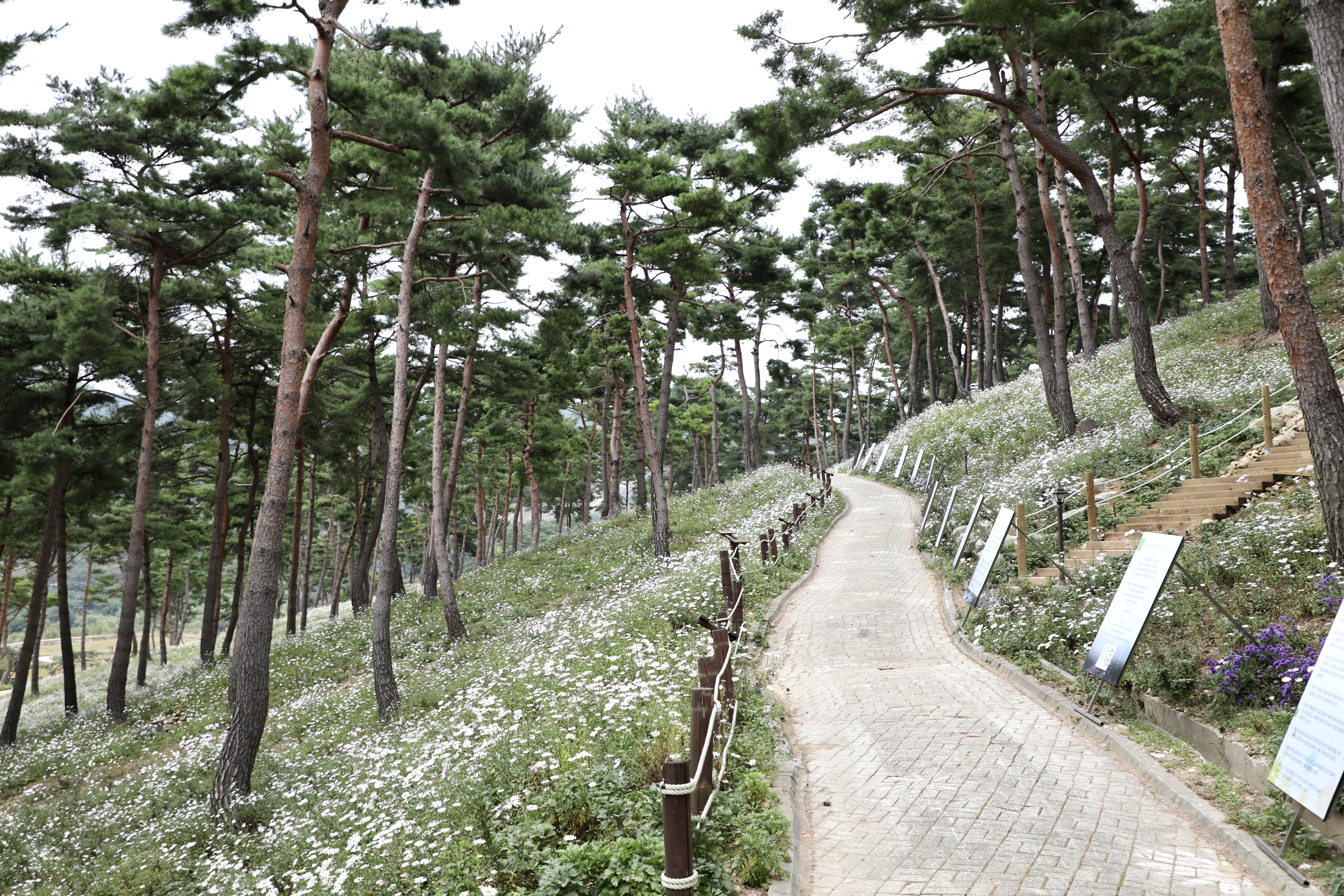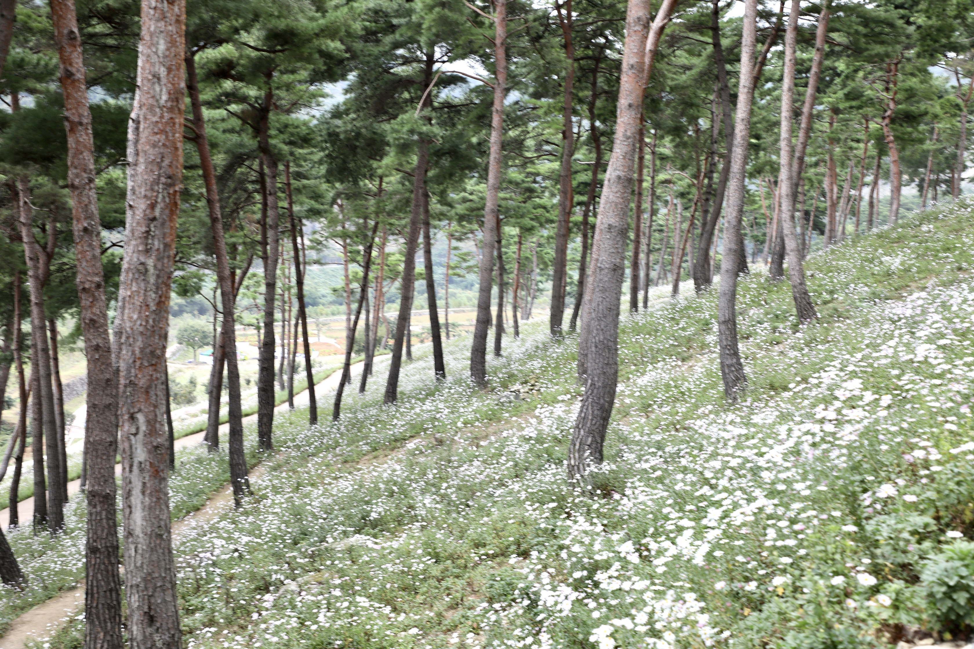 정읍 구절초공원은 추령천이 오메가(Ω)처럼 작은 동산을 감싸 돌아가는 야산에 있다.