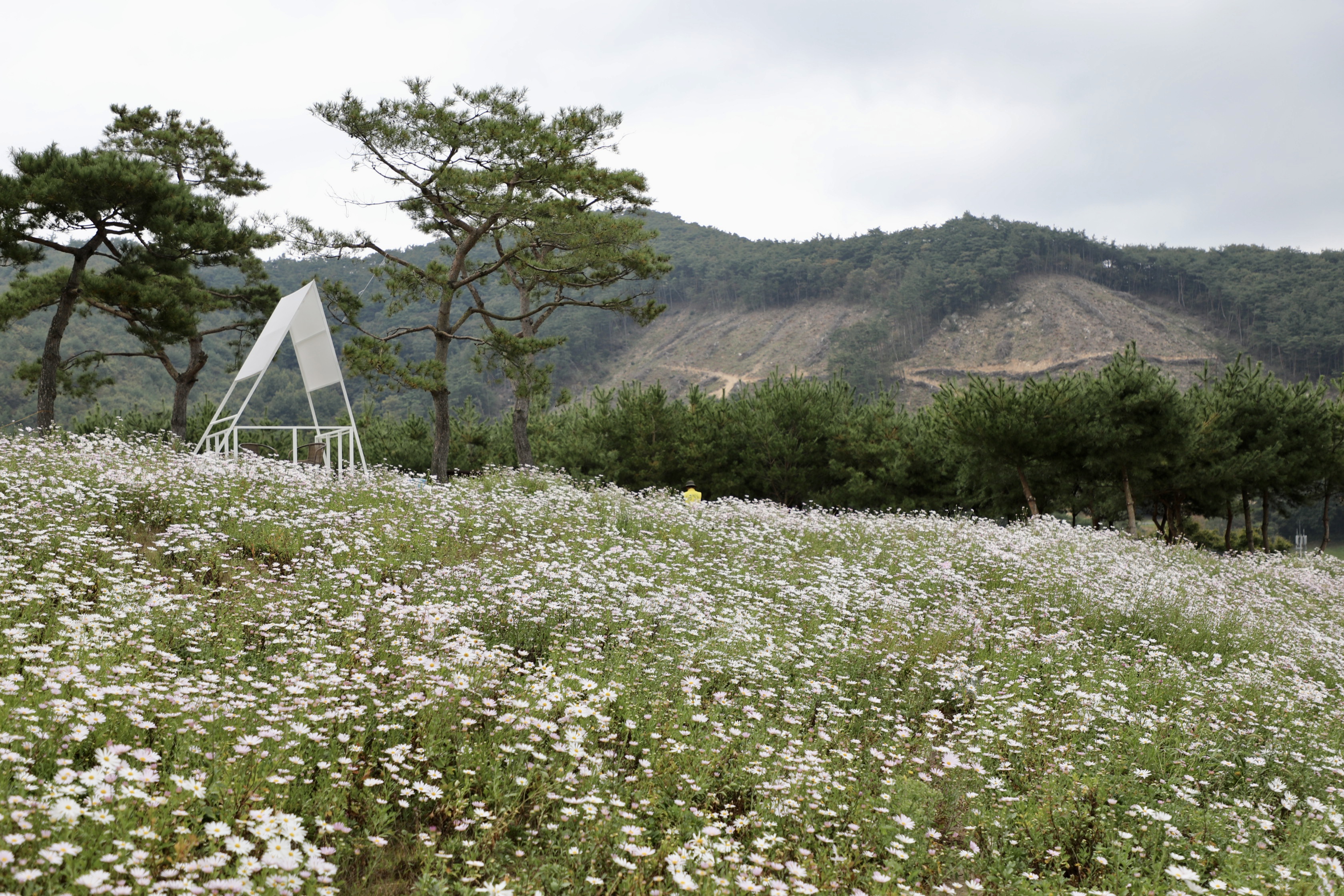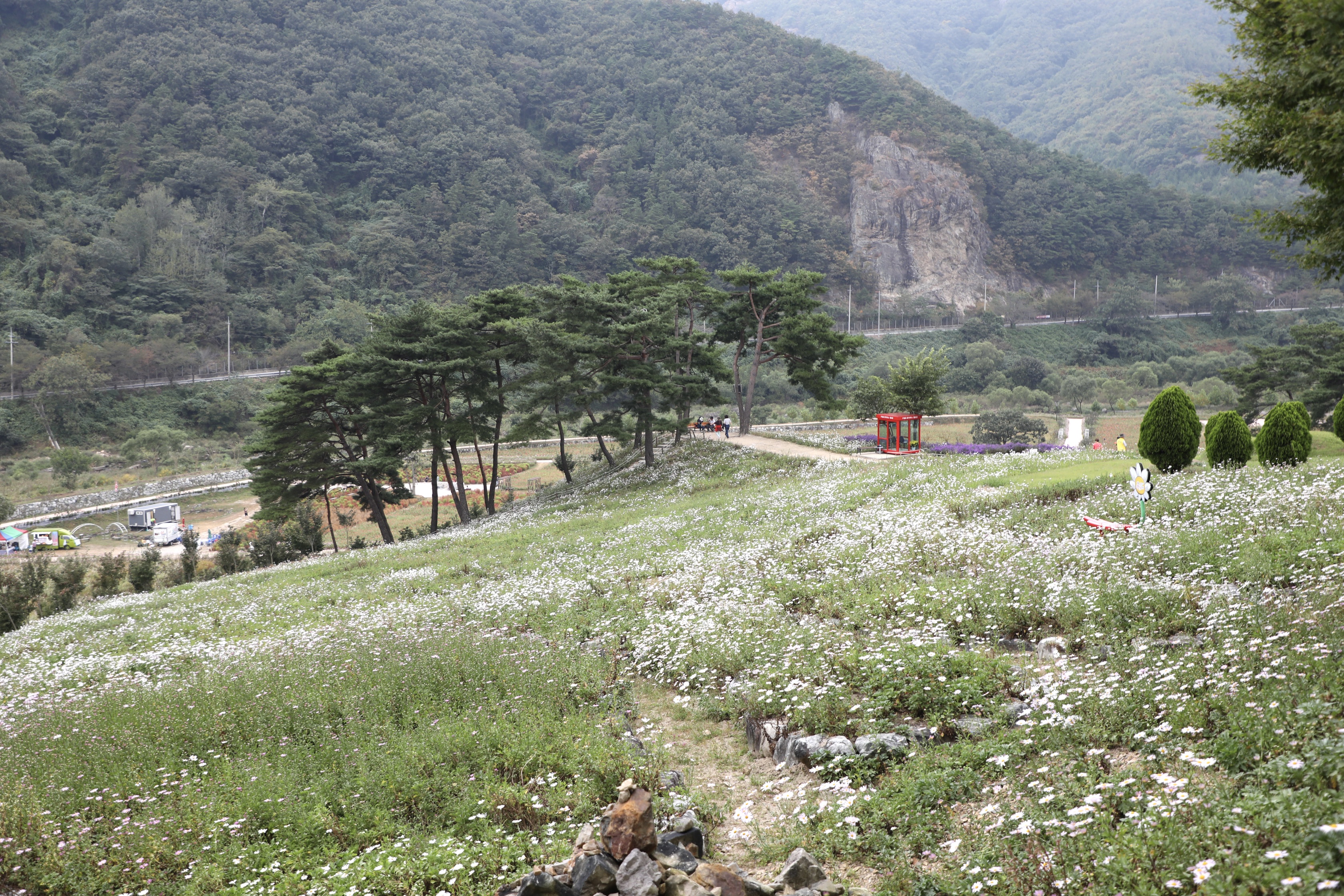 파란 하늘이었으면 더 좋았을 구절초축제 현장이다.