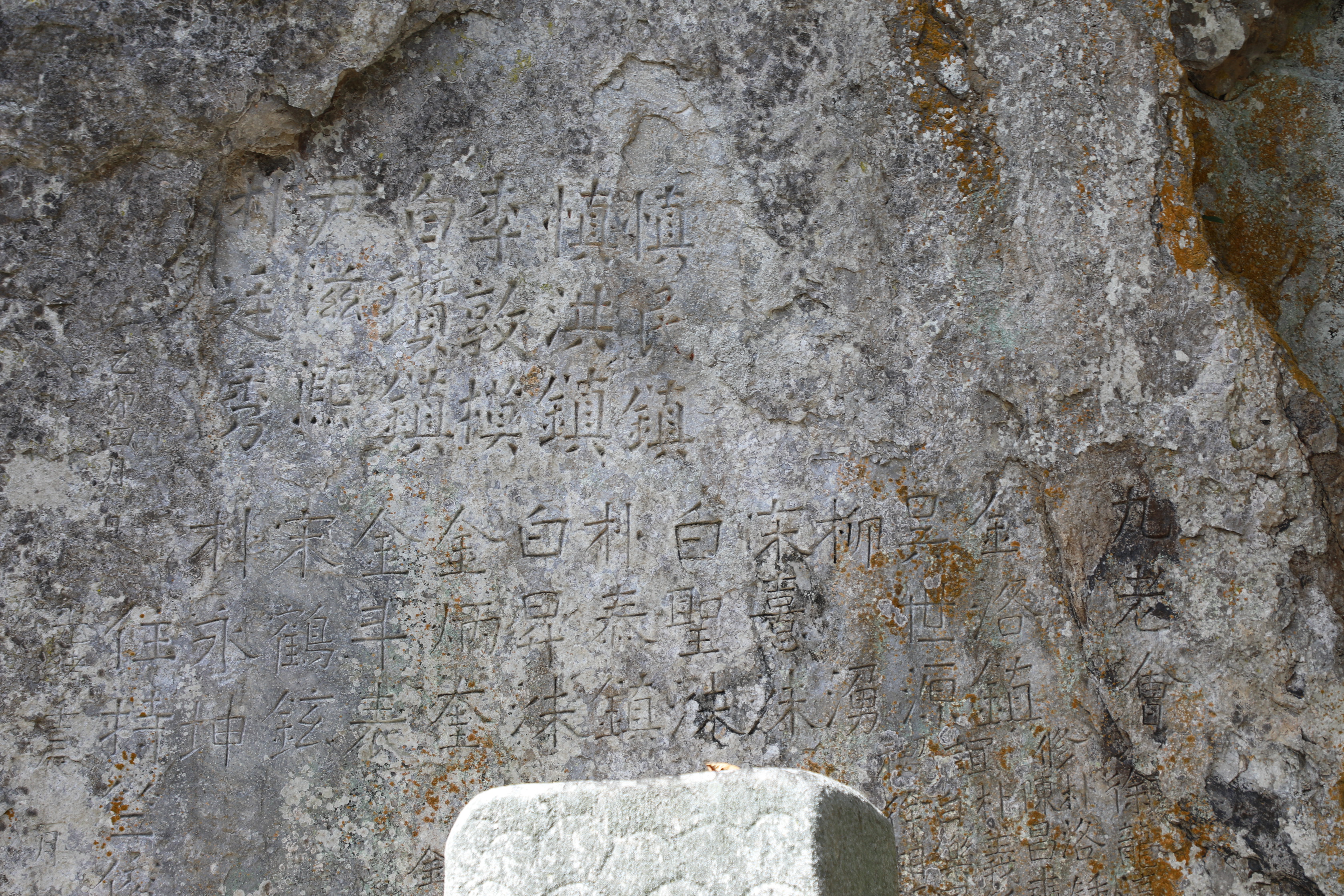 남의 사찰 앞 바위에 엉뚱한 사람들의 친목회 명단을 적었다.