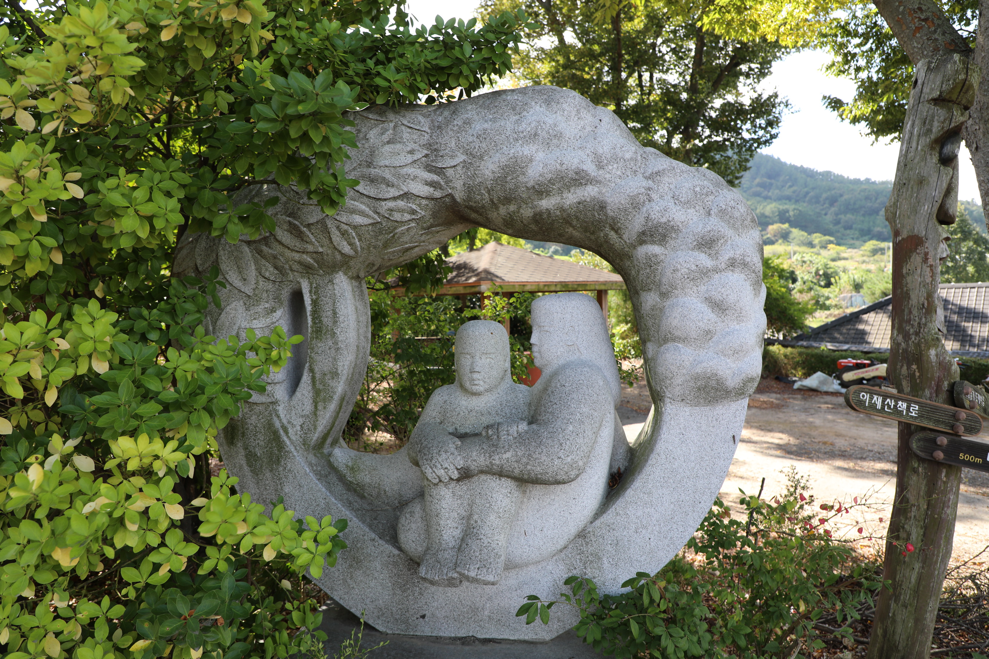 신목으로 신성시하는 당산나무를 원 형태로 감싸고도는 따듯한 모녀의 모습으로 표현한 작품