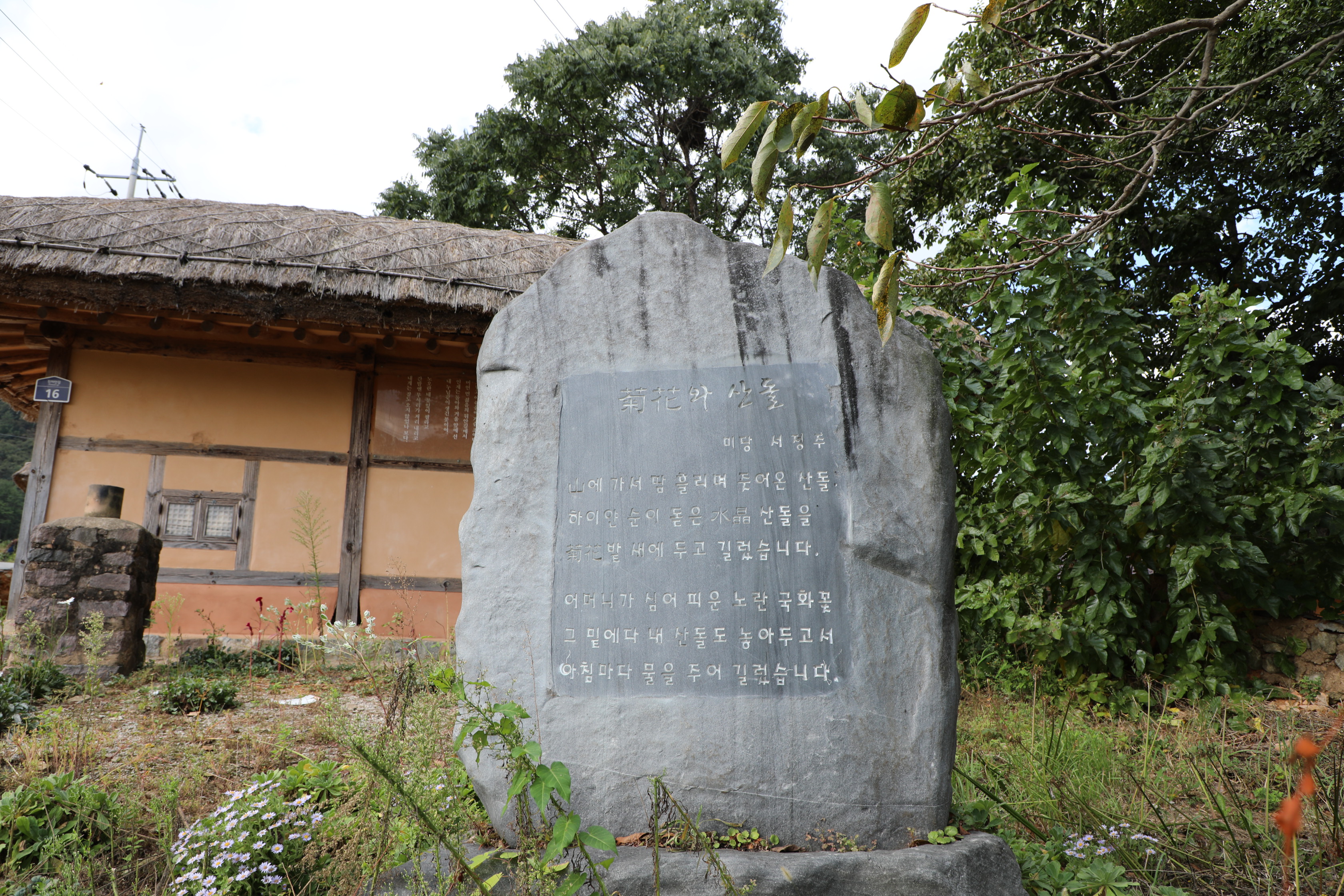 미당 생가에 어울리게 제 시기를 맞아 국화가 막 피어났다.