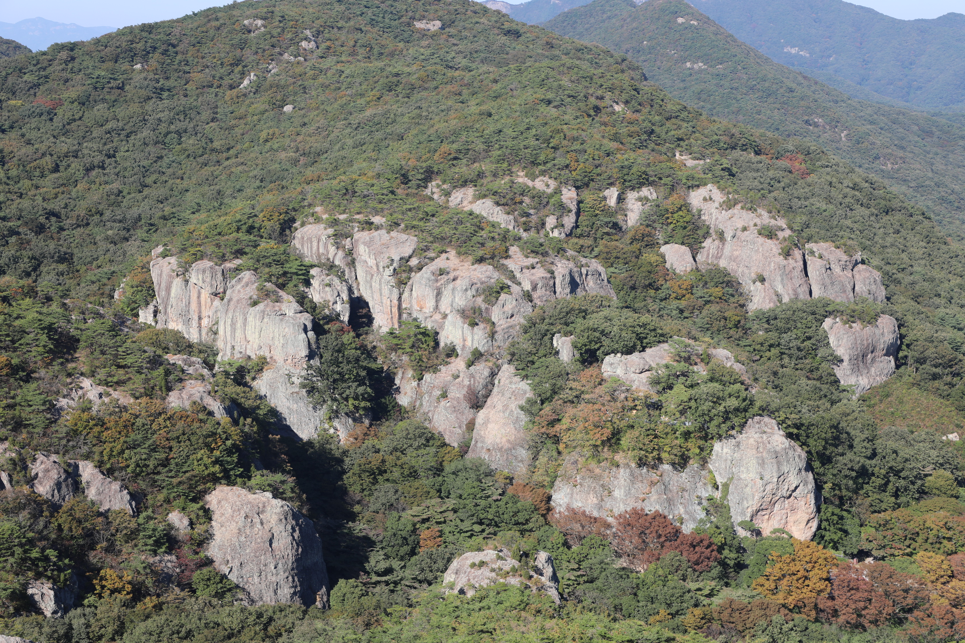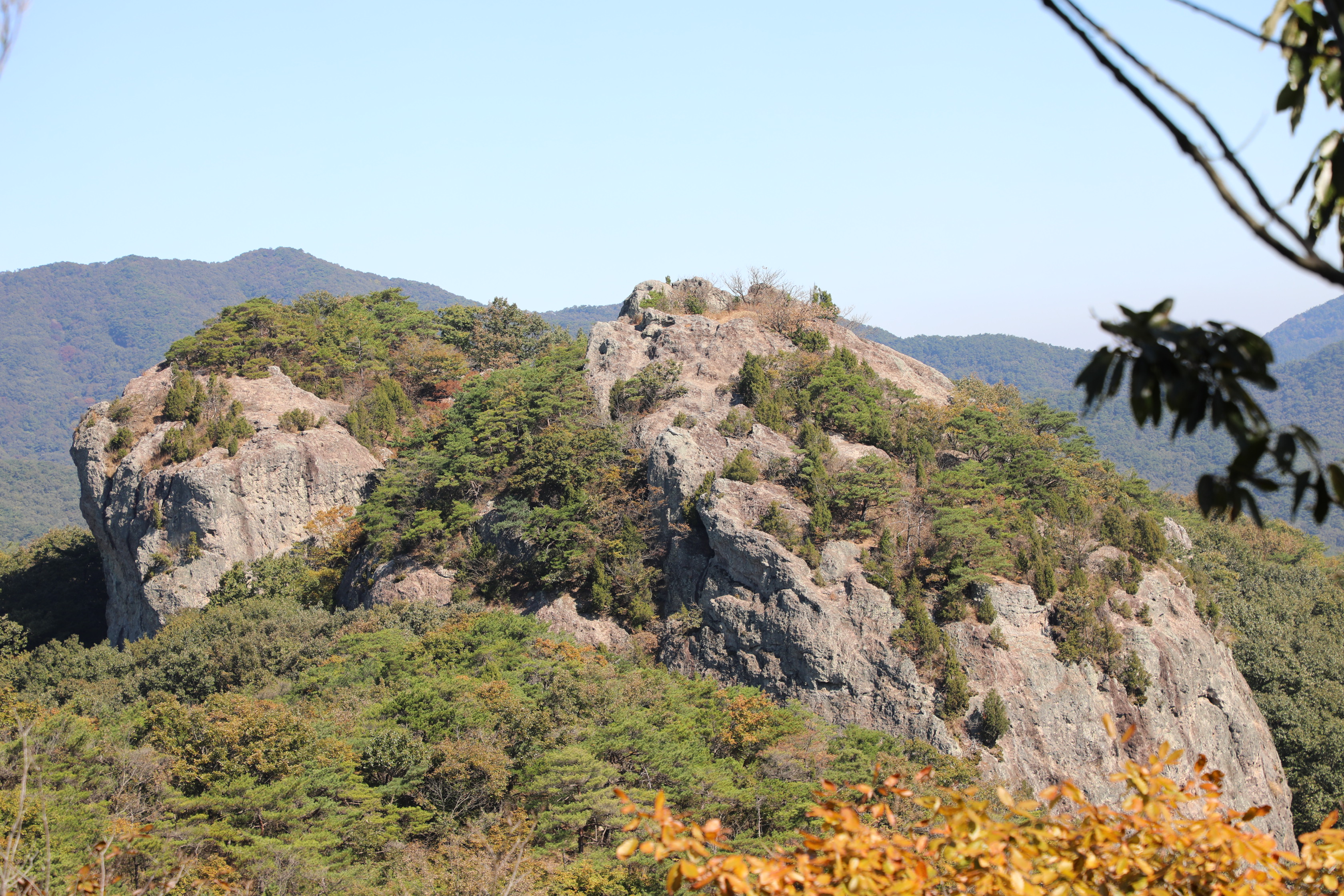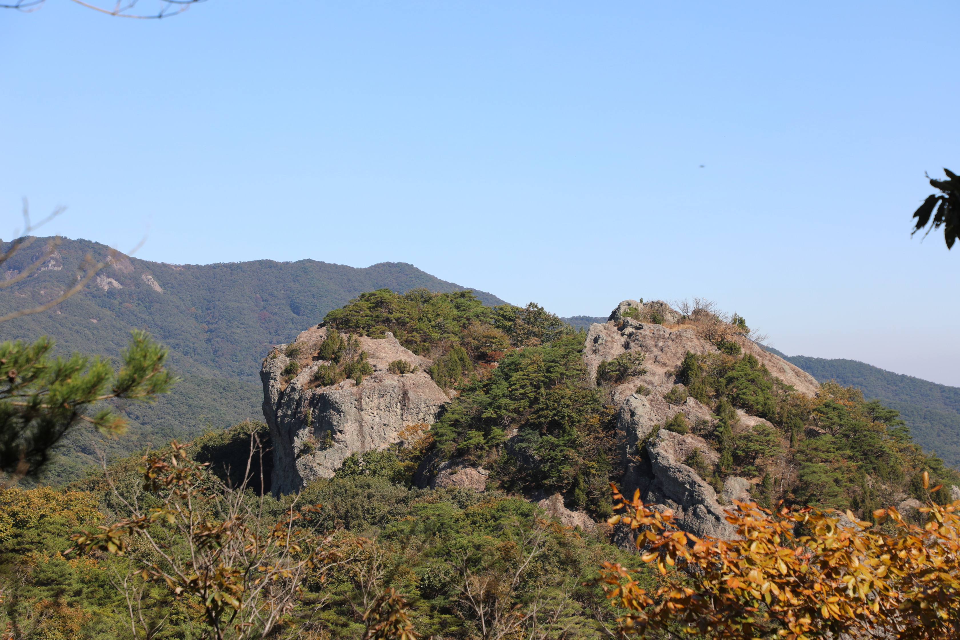 멀리서 볼 땐 두 암봉이 제법 멀리 떨어진 듯 보여도 두 암봉 사이의 소나무 숲은 오른쪽 암봉의 일부이다.