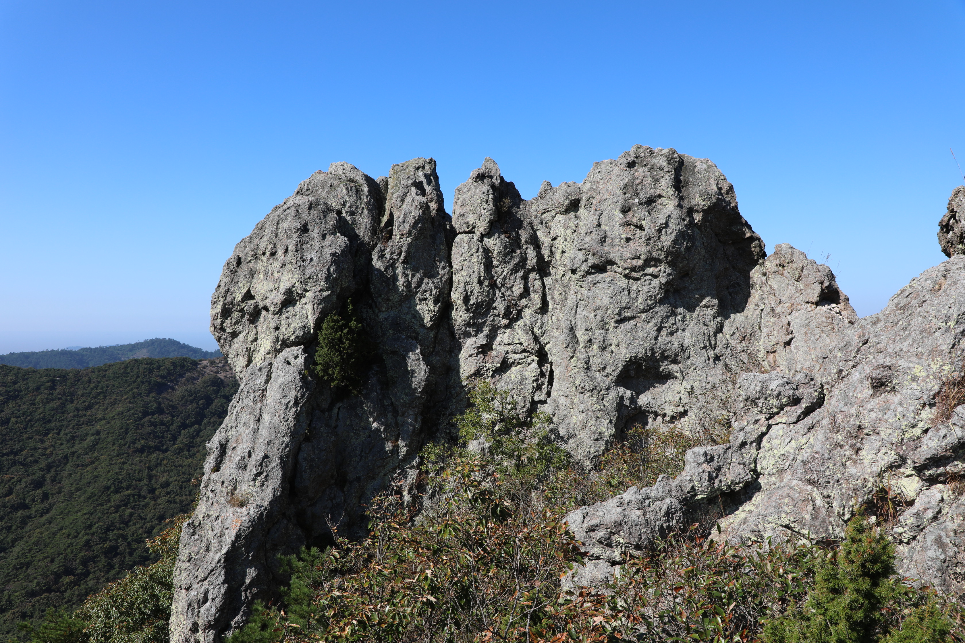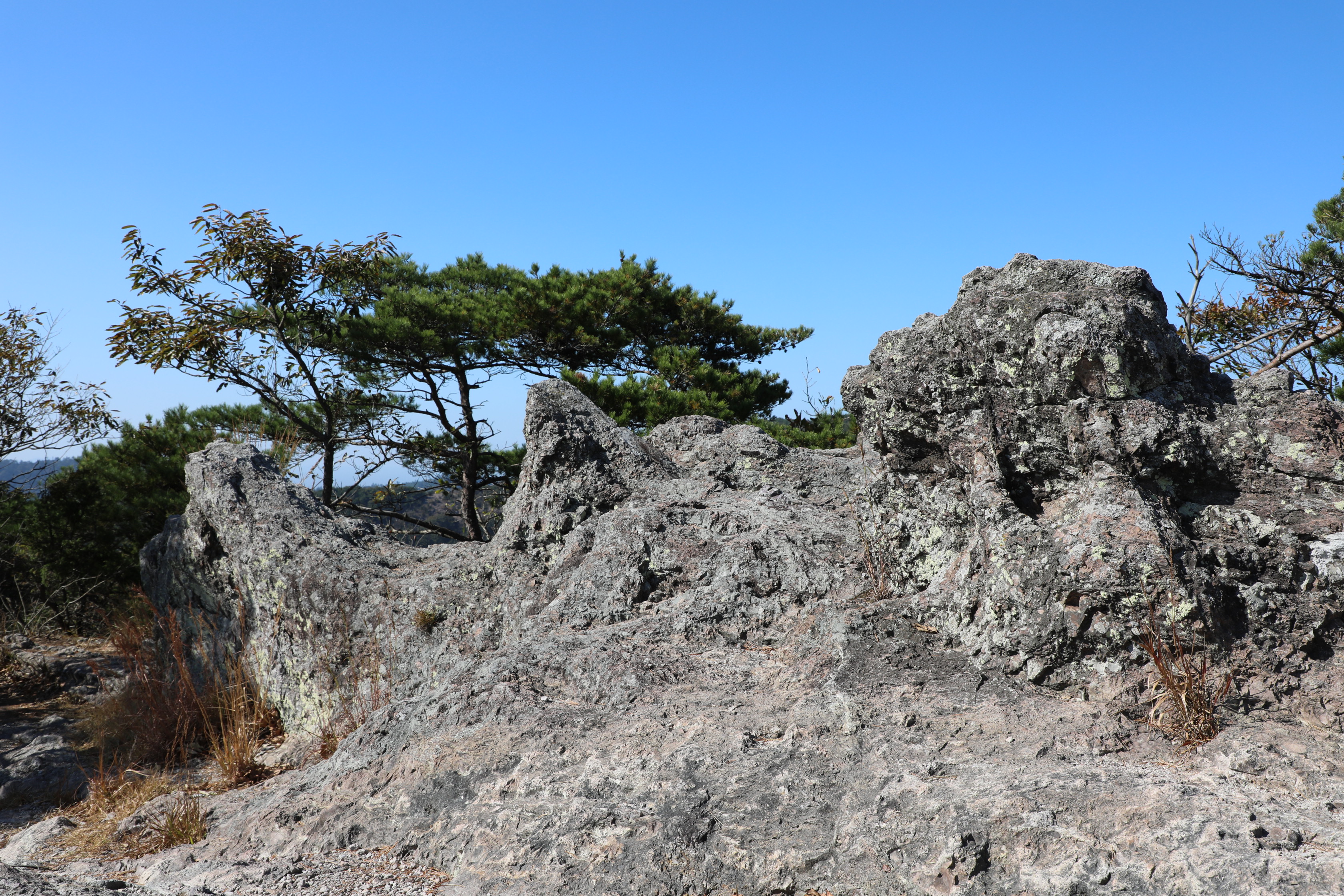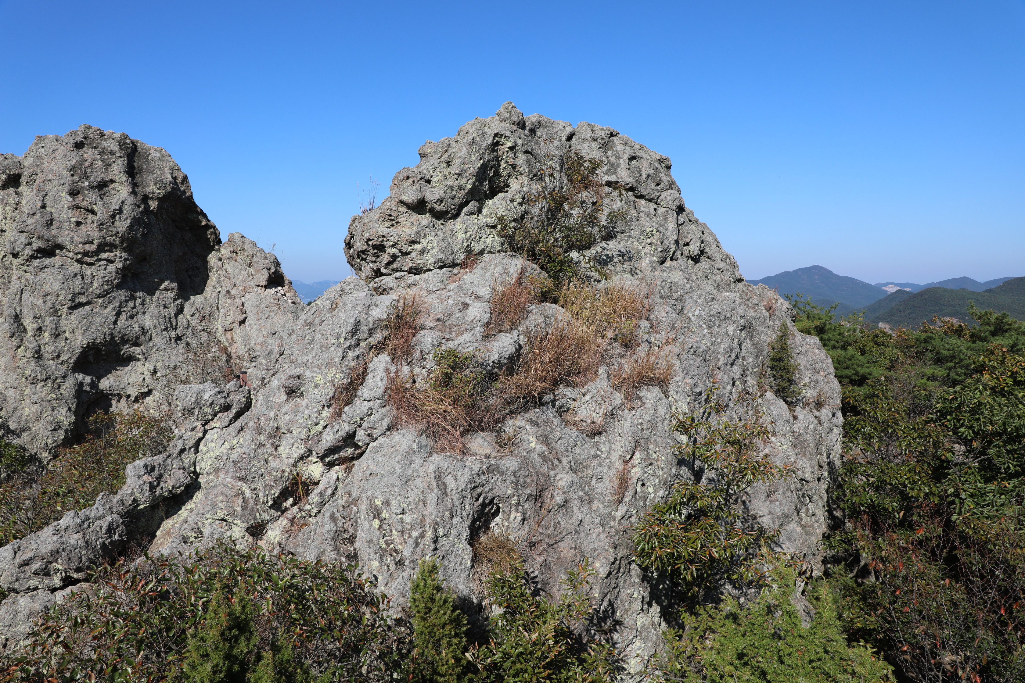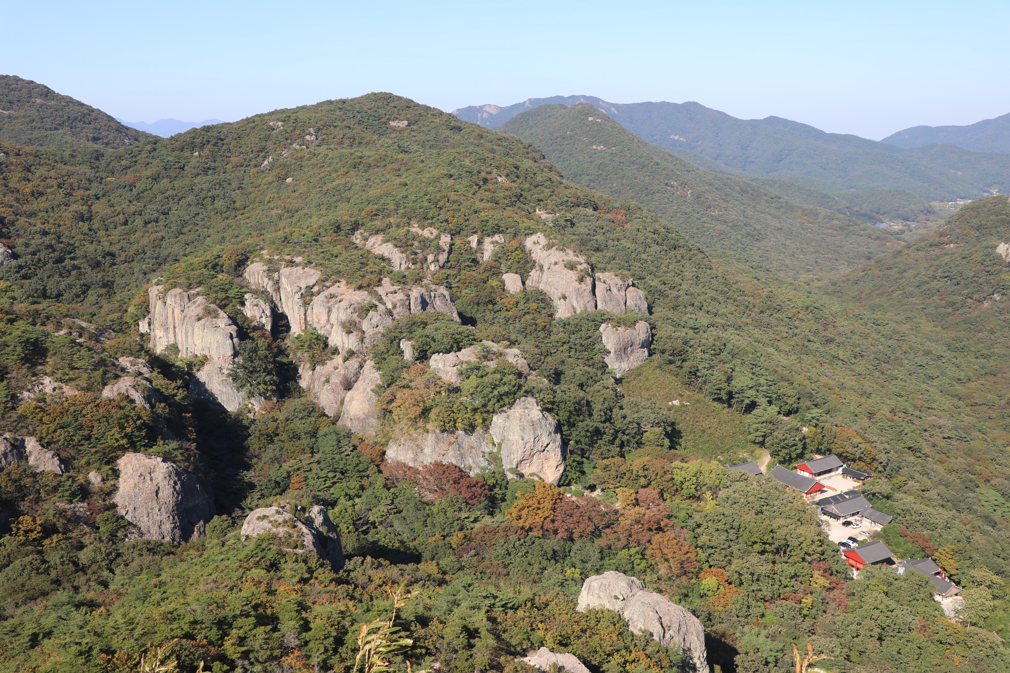 멀리서 볼 땐 두 암봉이 제법 멀리 떨어진 듯 보여도 두 암봉 사이의 소나무 숲은 오른쪽 암봉의 일부이다.