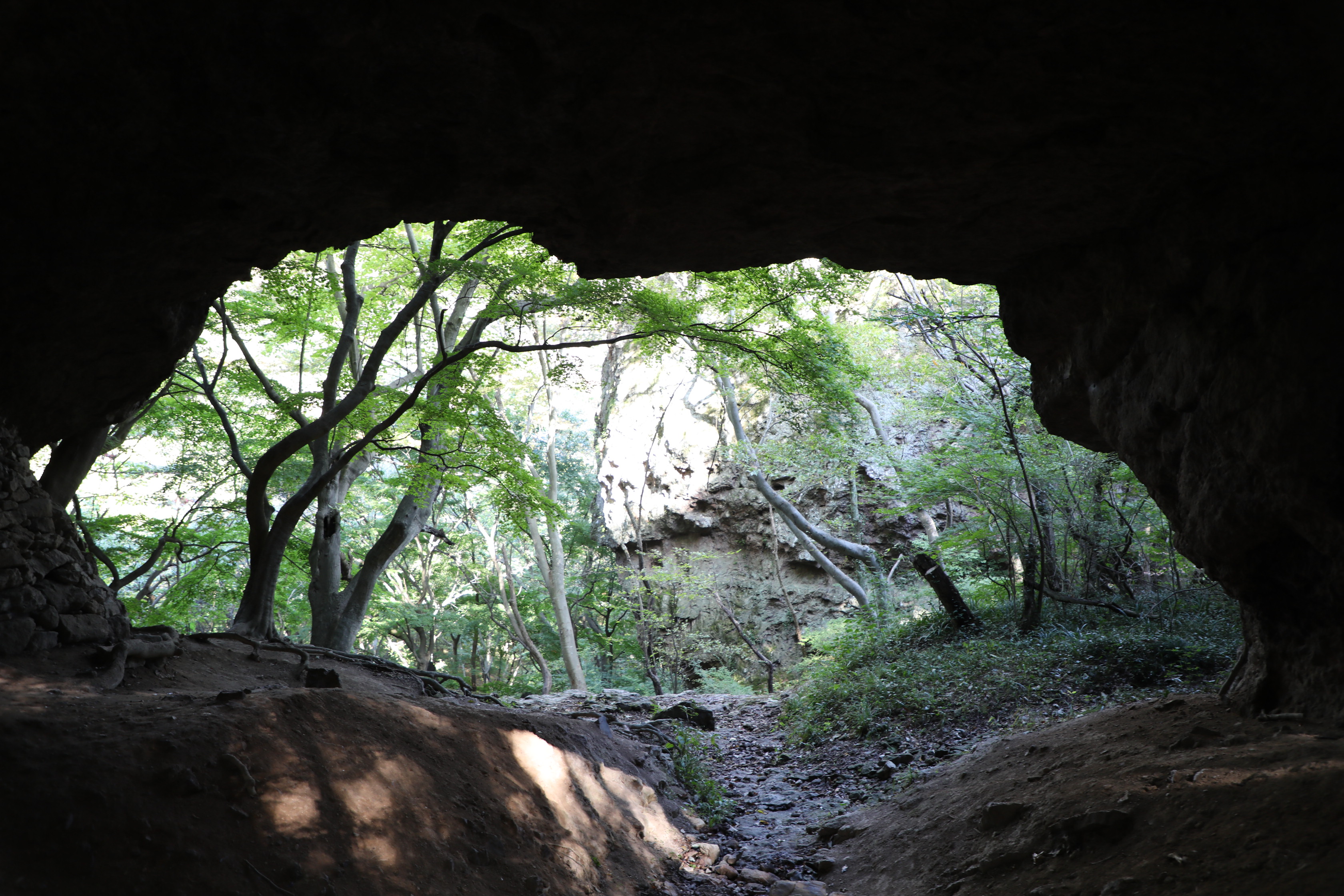 진흥굴 안쪽에는 천정과 옆면에 절리가 잘 발달하여 박리 작용의 관찰이 가능하다.