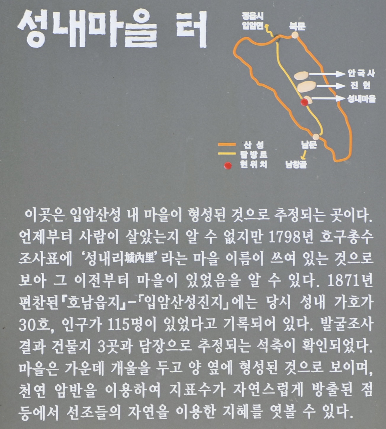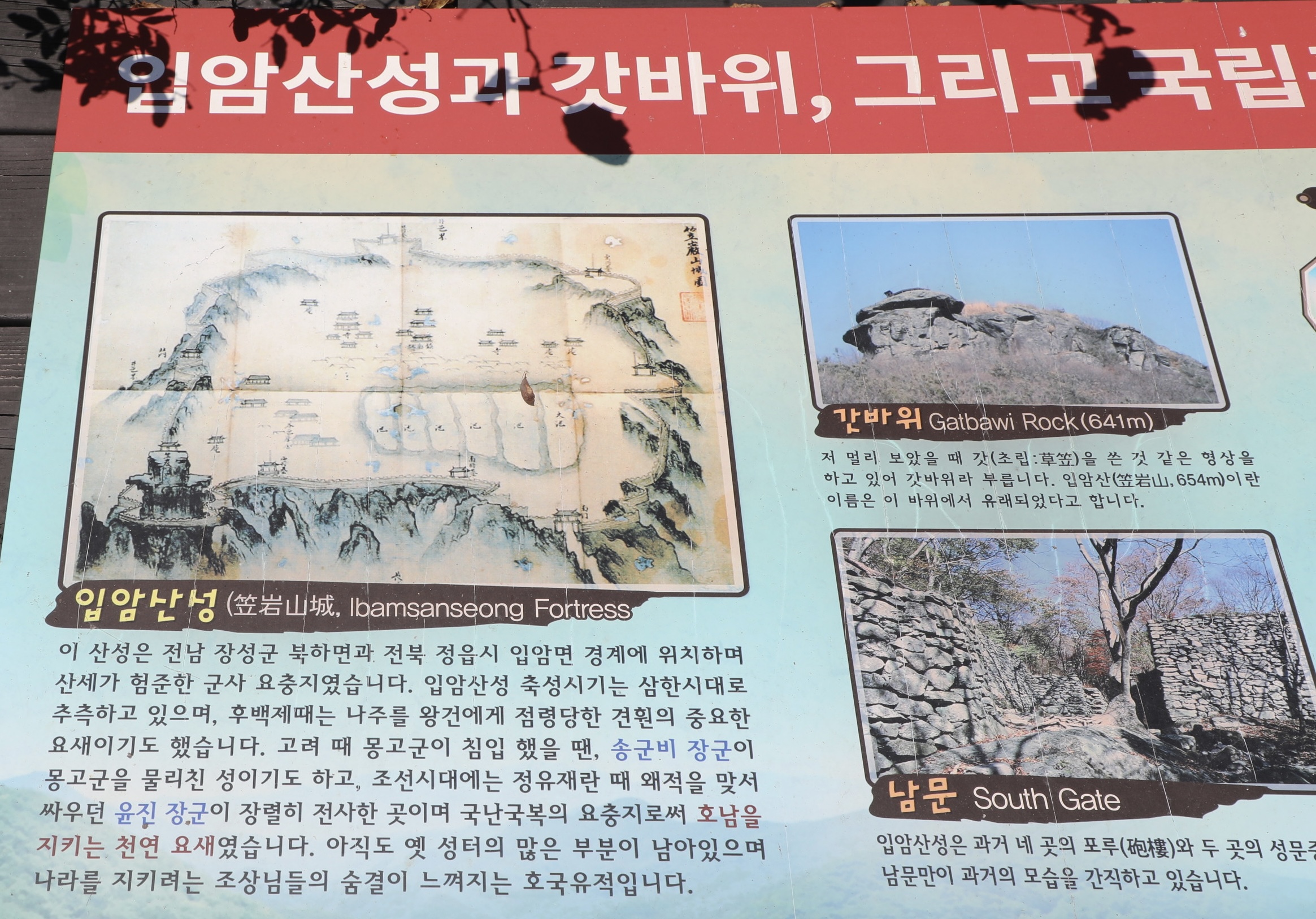 입암산성을 한 바퀴 도는 코스를 개발하면 좋은데, 산성 훼손을 염려해서인지 일부 구간만 지나게 된다.
