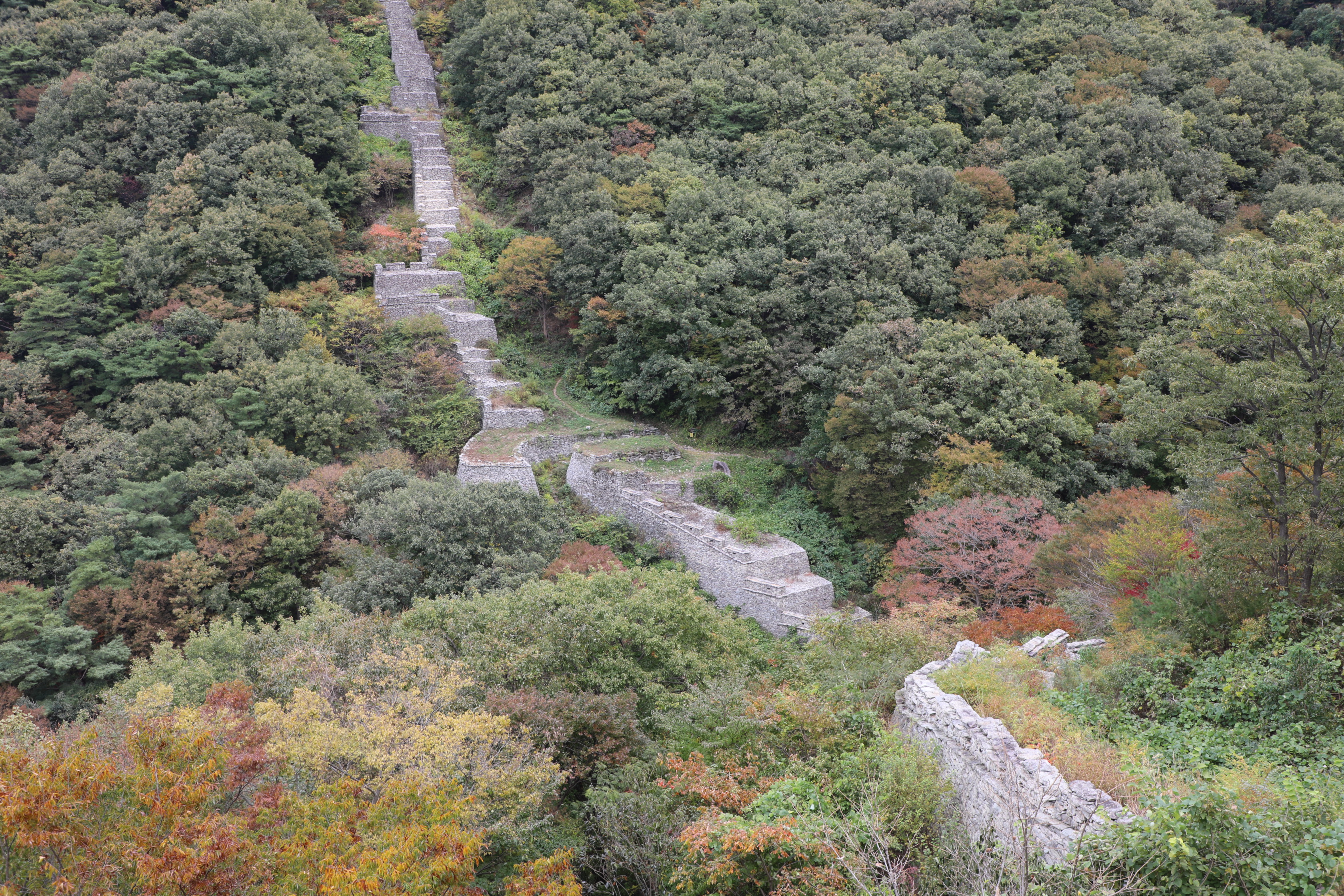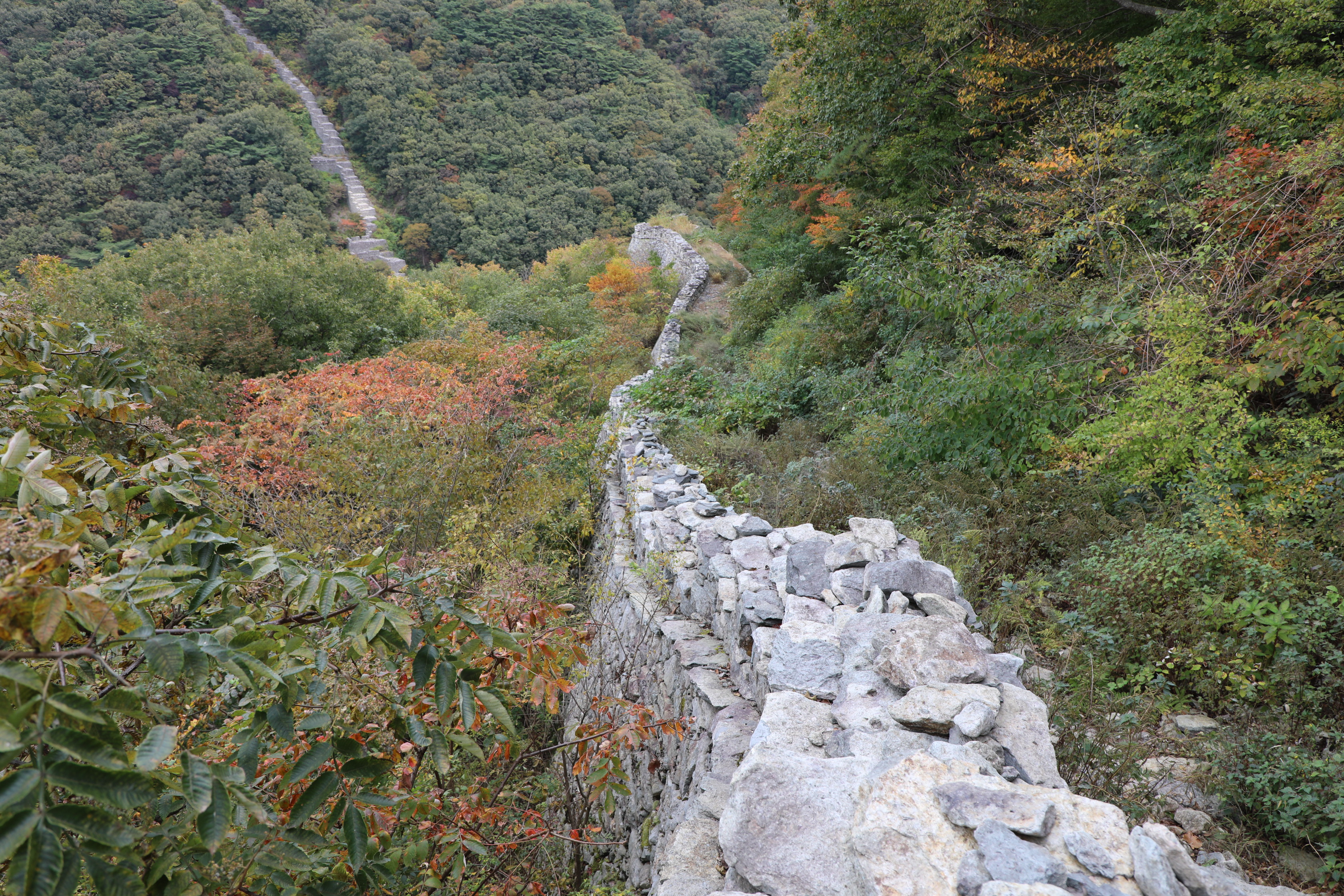 서쪽에서 북쪽으로 올라가는 산성은 비교적 상태가 좋다.
