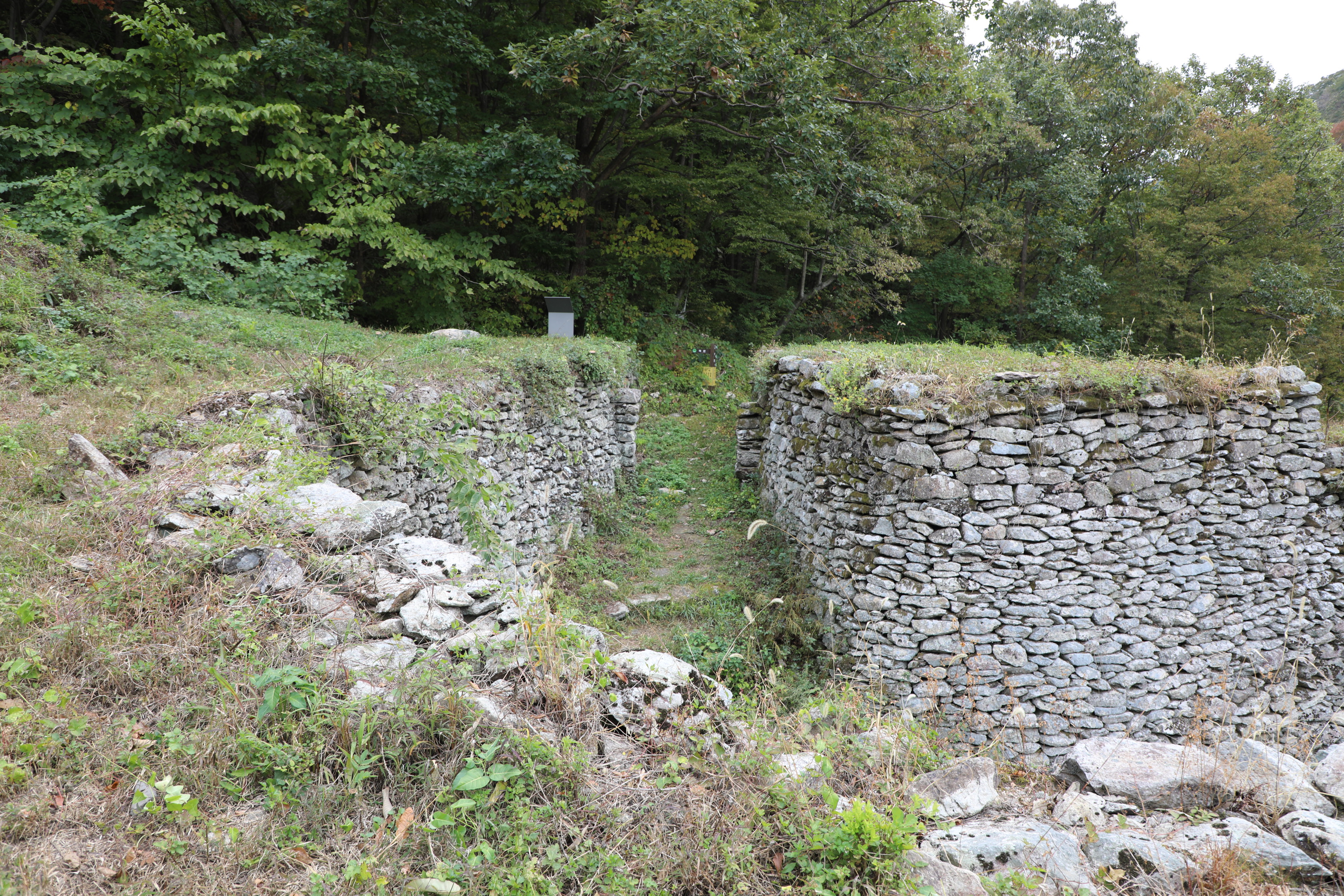 계곡보다 훨씬 높은 위치에 양옆으로 축단을 쌓고 그 사이에 성문을 배치하였다.