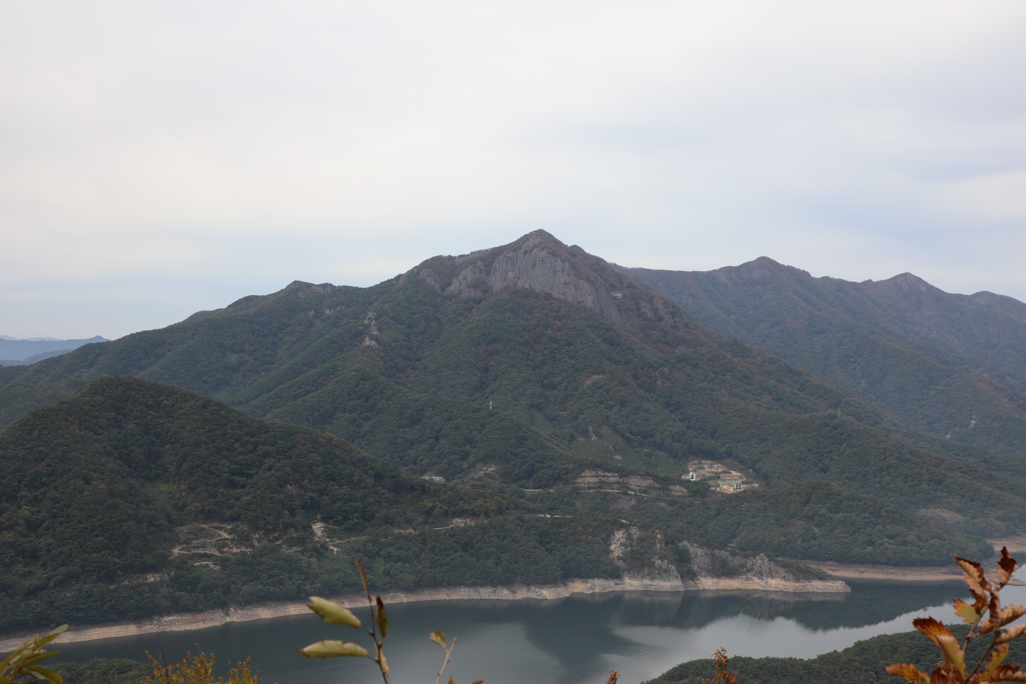 담양호 건너편엔 추월산의 거대한 바위가 드러났다.