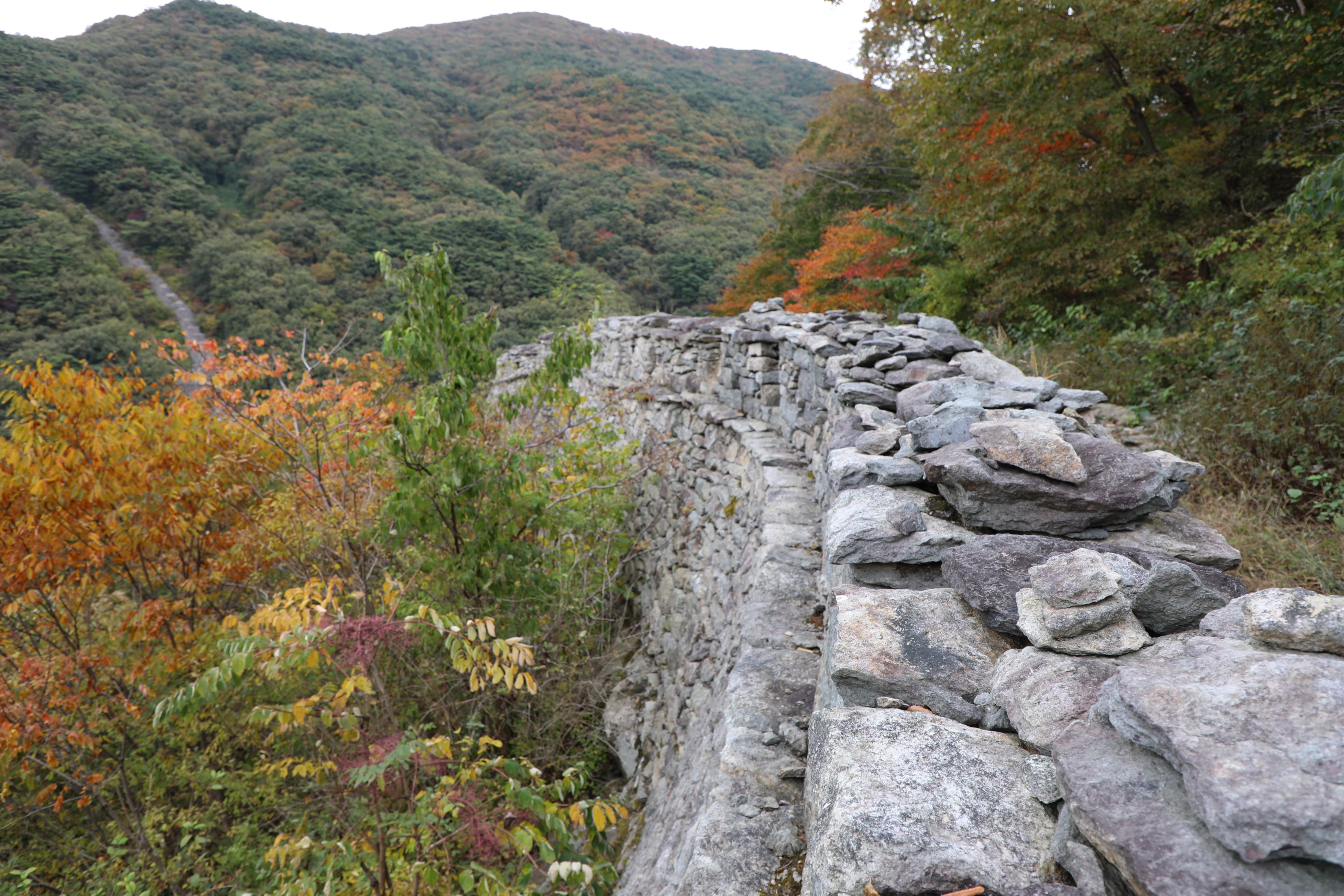 서쪽에서 북쪽으로 올라가는 산성은 비교적 상태가 좋다.
