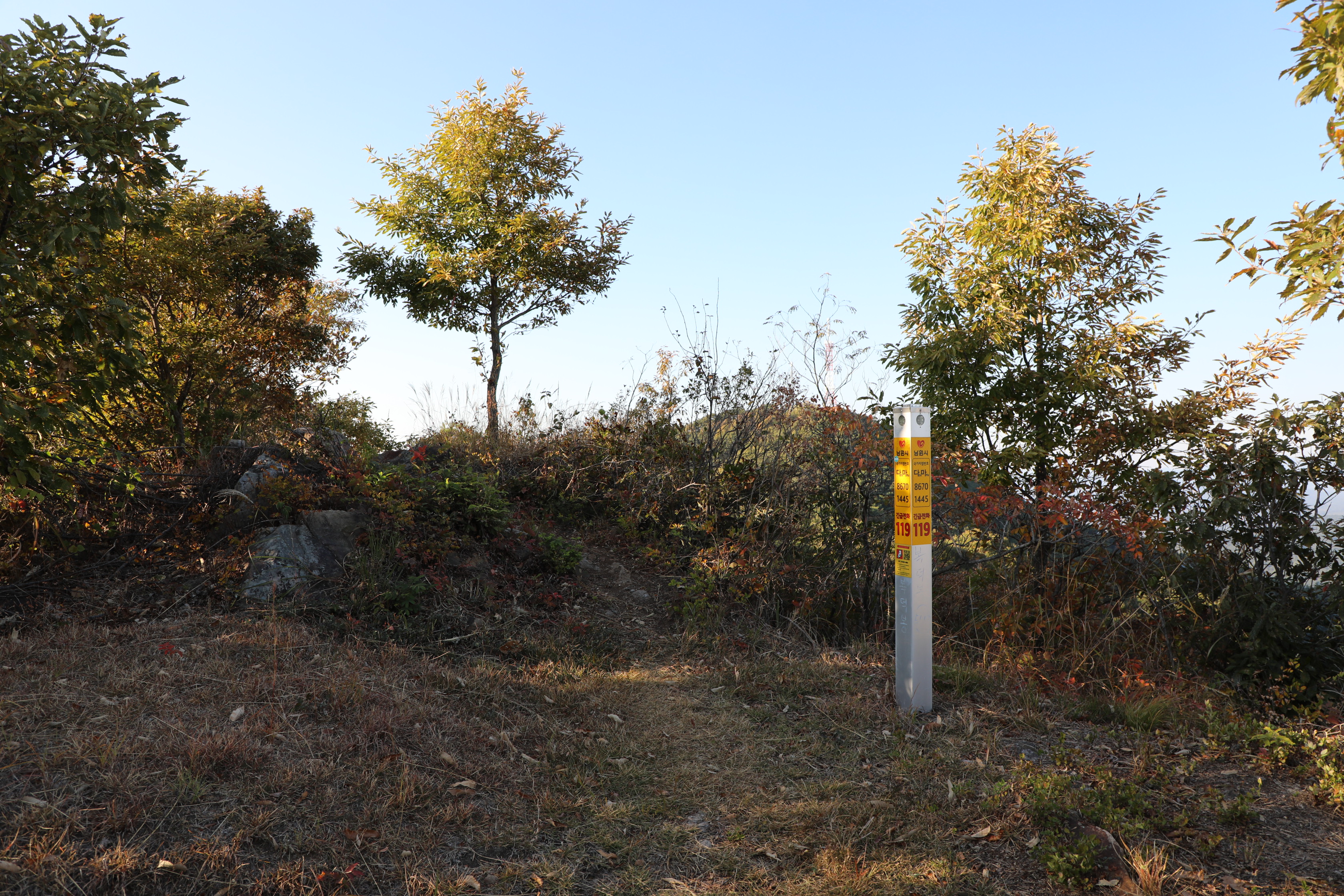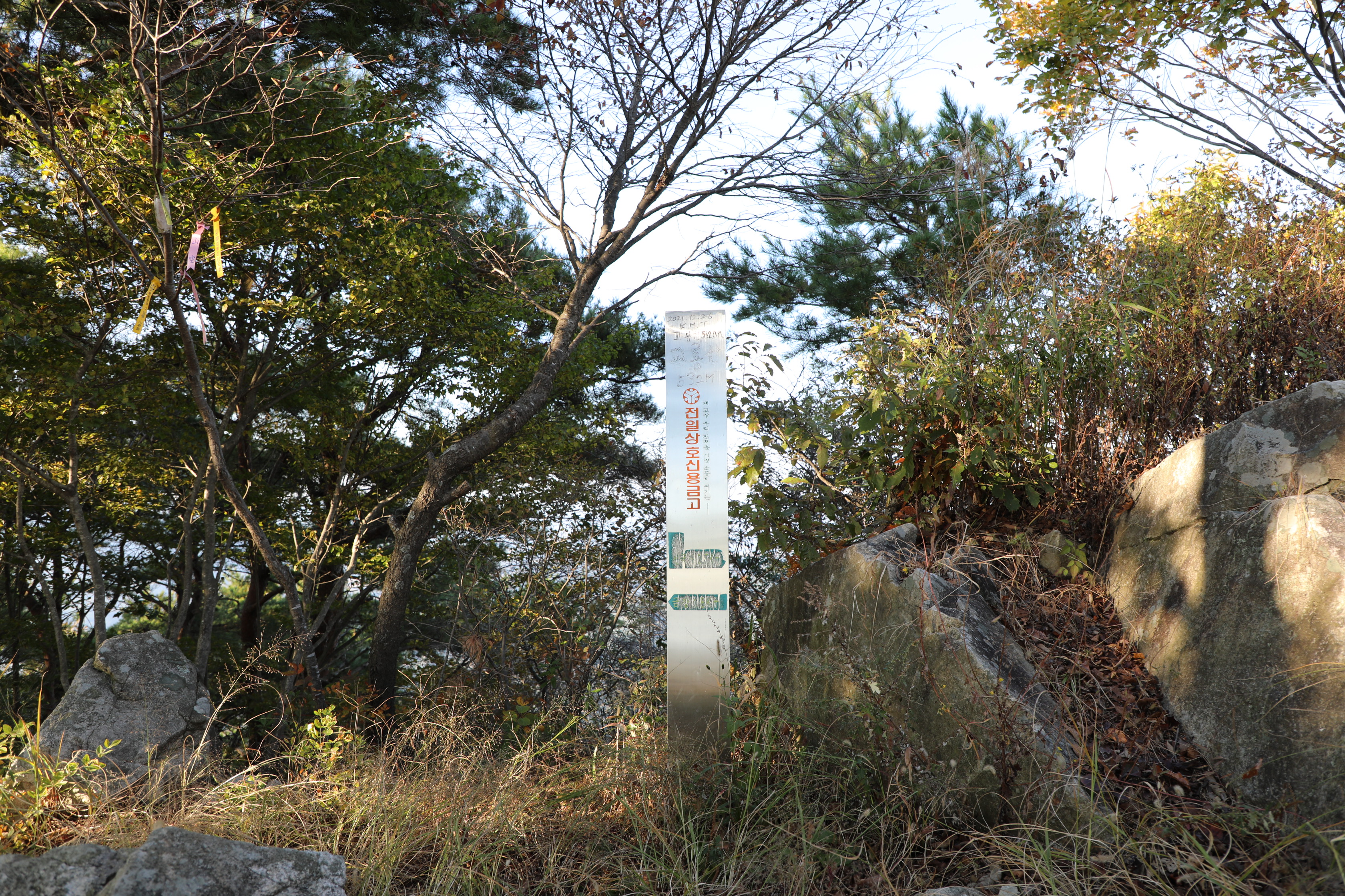 교룡산 정상이지만, 특별한 표지석은 보이지 않고 어느 상호신용금고의 표지판이 정상이란 걸 암시한다.
