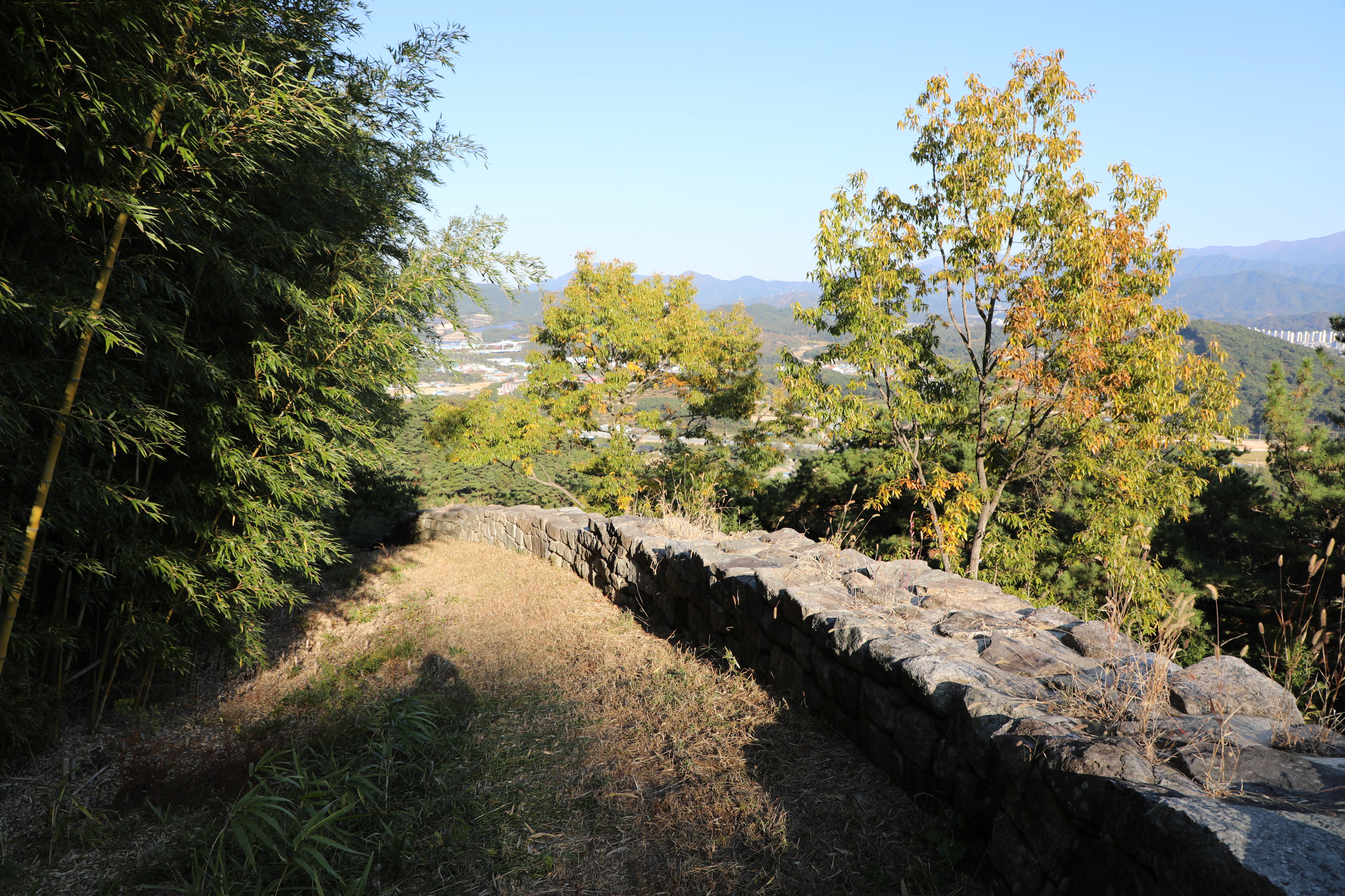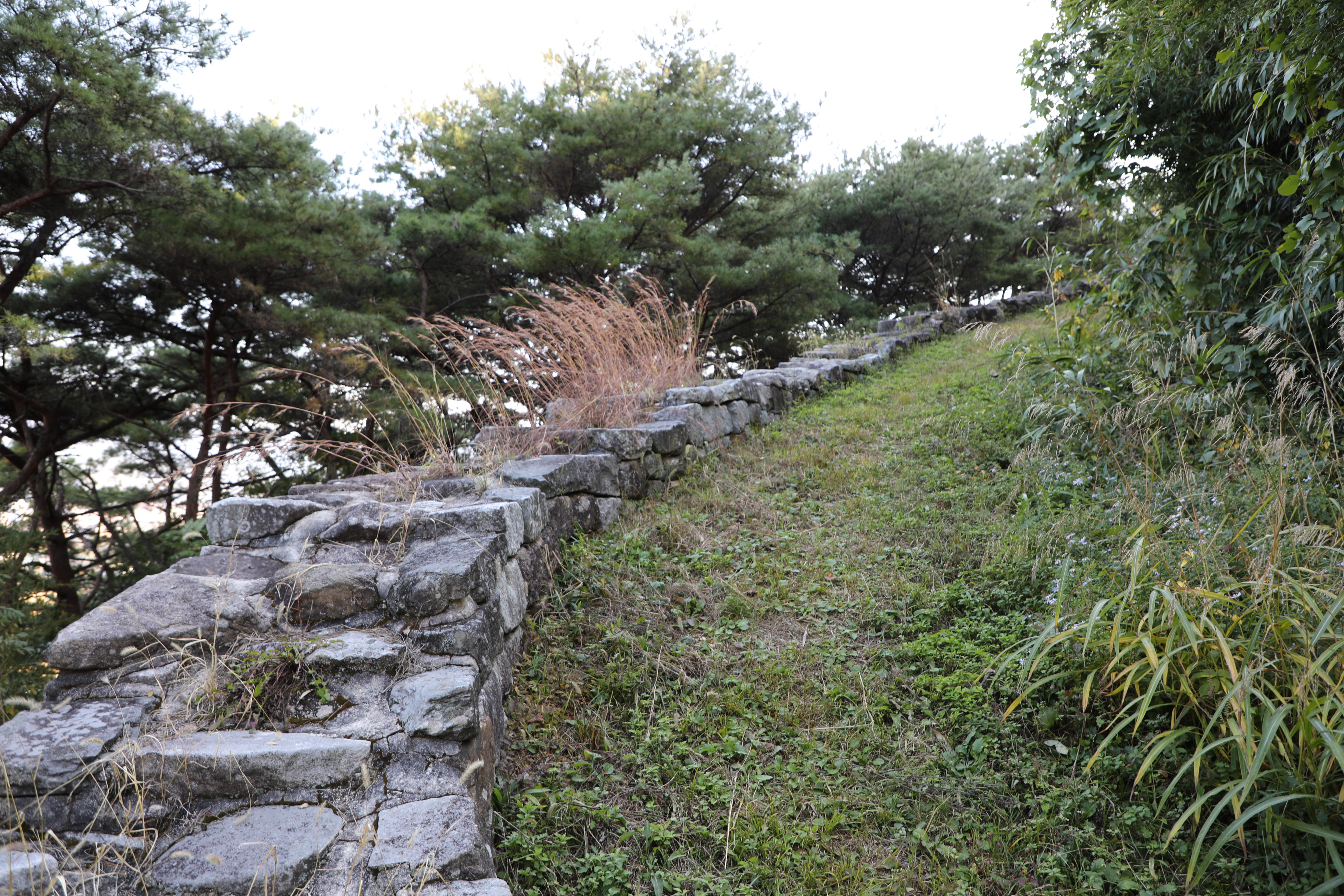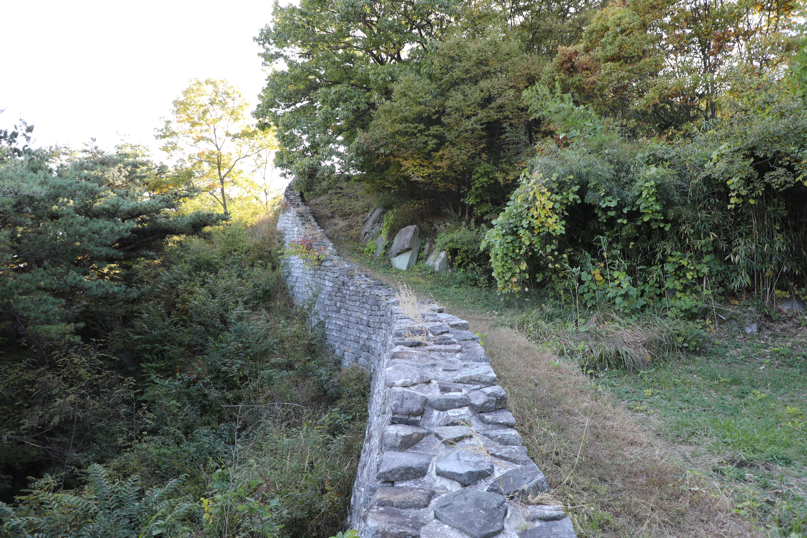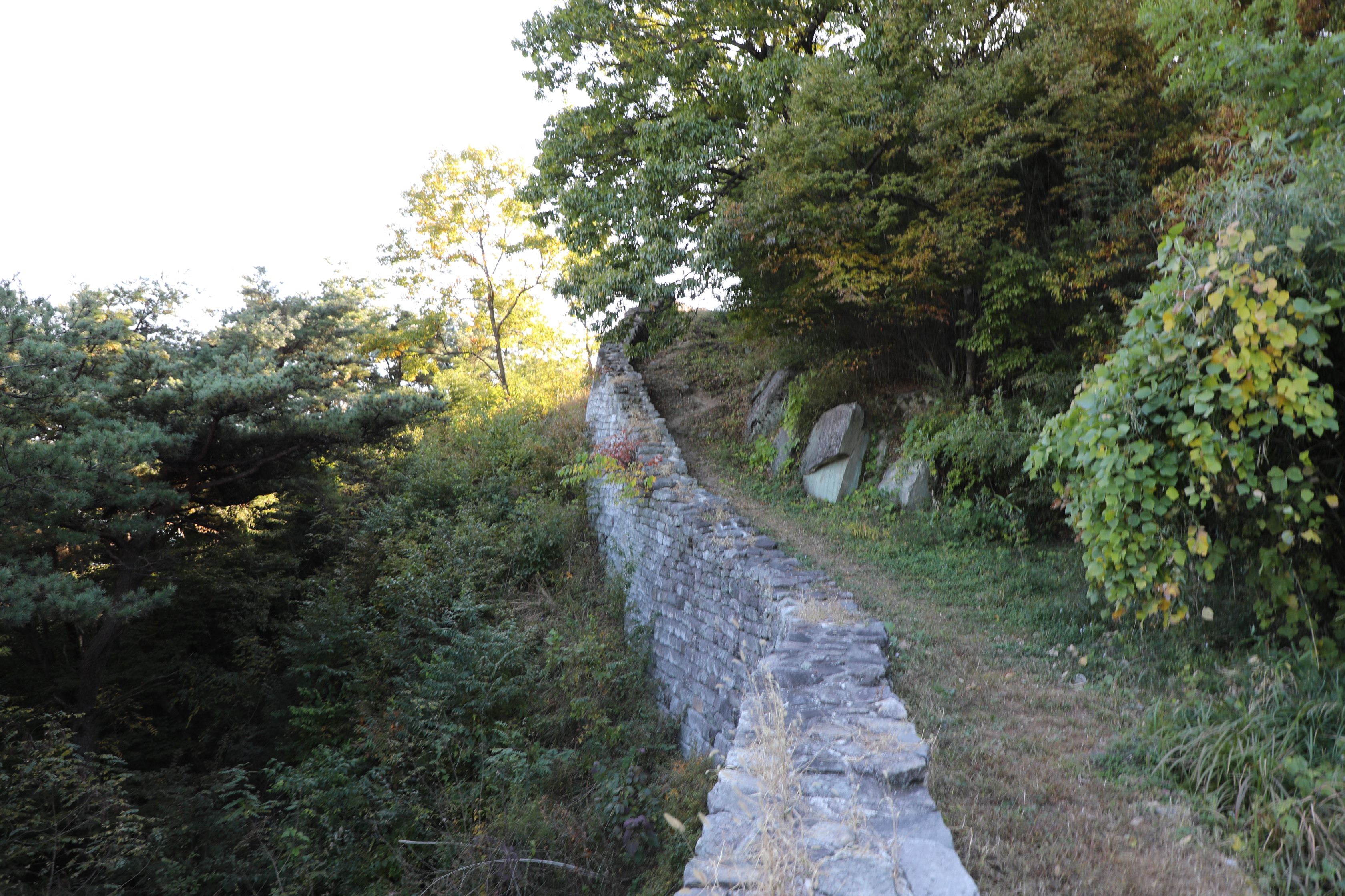 내려가는 길에 간혹 성벽이 보이기도 하고, 안 보이기도 한다.