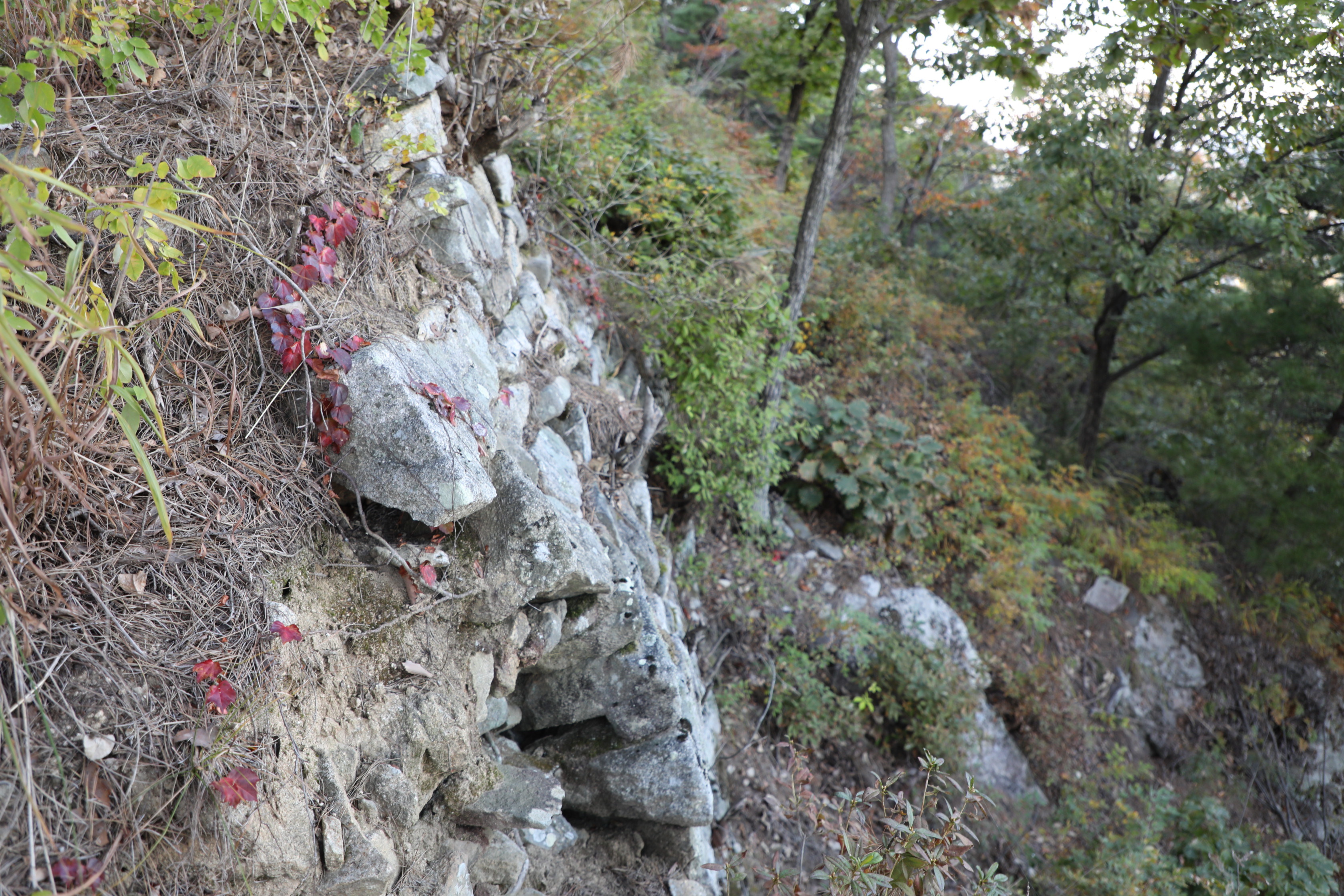일부 토성으로 만든 듯 보이지만 왼쪽으로 석축이 조금 있는 곳도 있다.