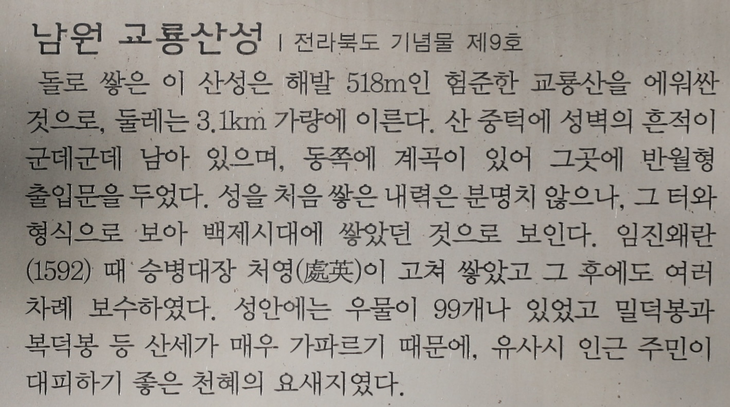 순창의 용궐산과 채계산에 이어 남원의 광한루원과 남원읍성을 둘러보고 교룡산성으로 넘어왔다.