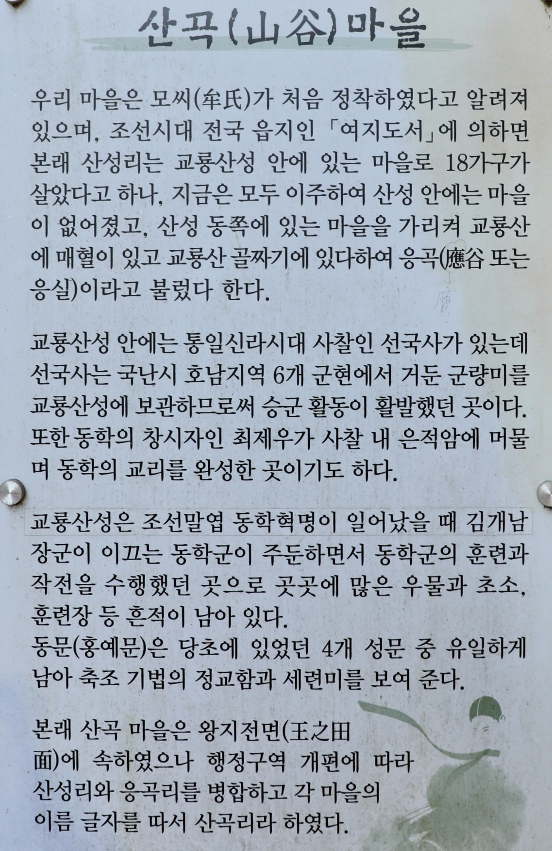 동학혁명의 전개과정에서는 남원 일대 농민군의 군사적 거점이 되었다.