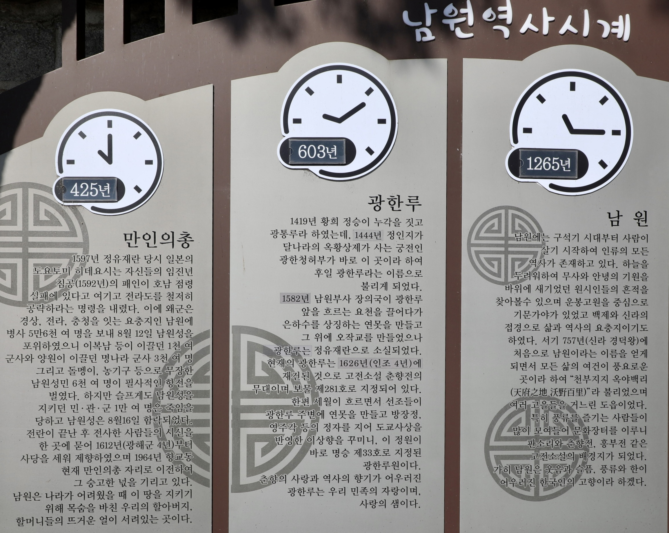 남원성 고지도를 보면 광한루는 남원성(2011.7.28. 남원읍성으로 변경)의 남문 밖에 위치했다.