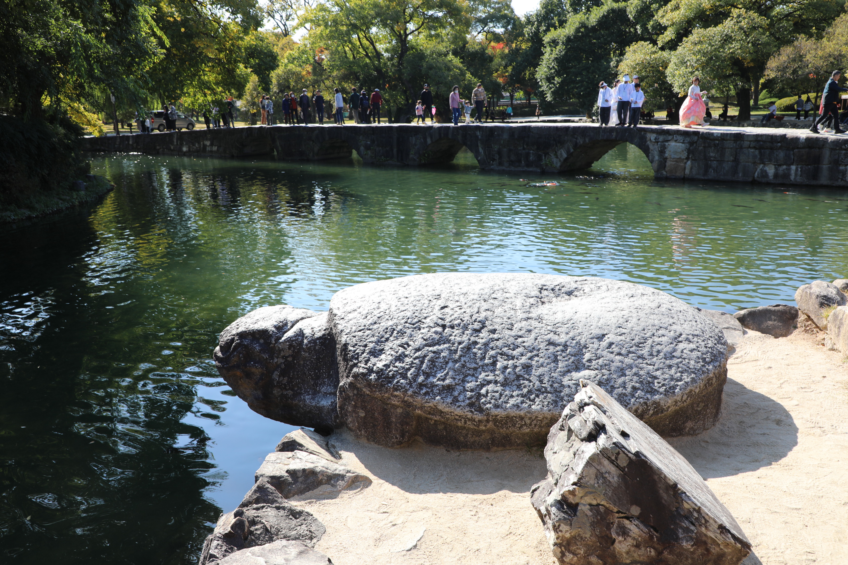 광한루원 앞에는 동서 100m, 남북 59m에 이르는 정방형의 호수와 호수 속의 3개의 섬(삼신산),