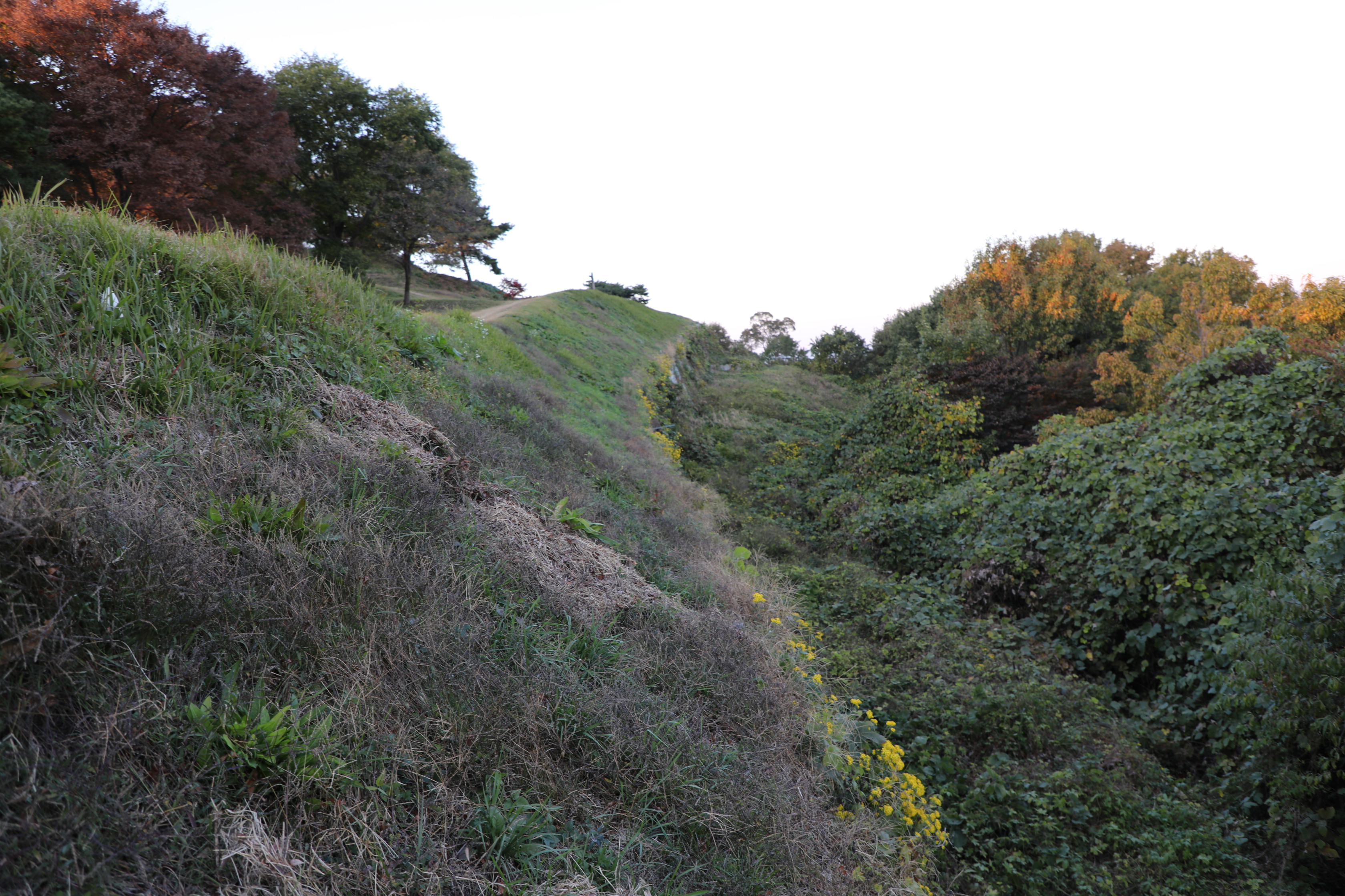 왼쪽 성벽으로 나가는 구간은 계곡으로 떨어지며 더 나가기 힘들어 되돌아왔다.