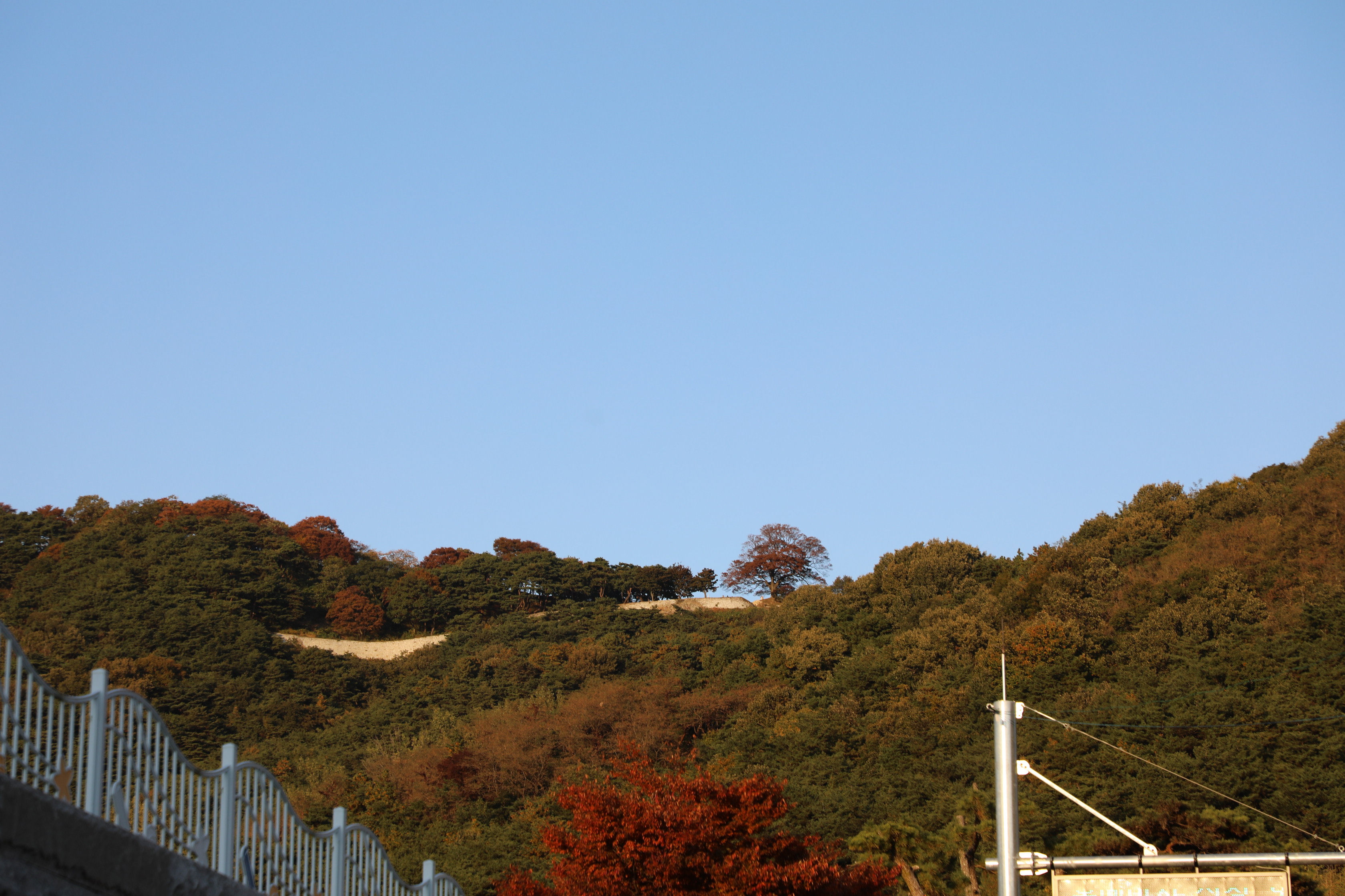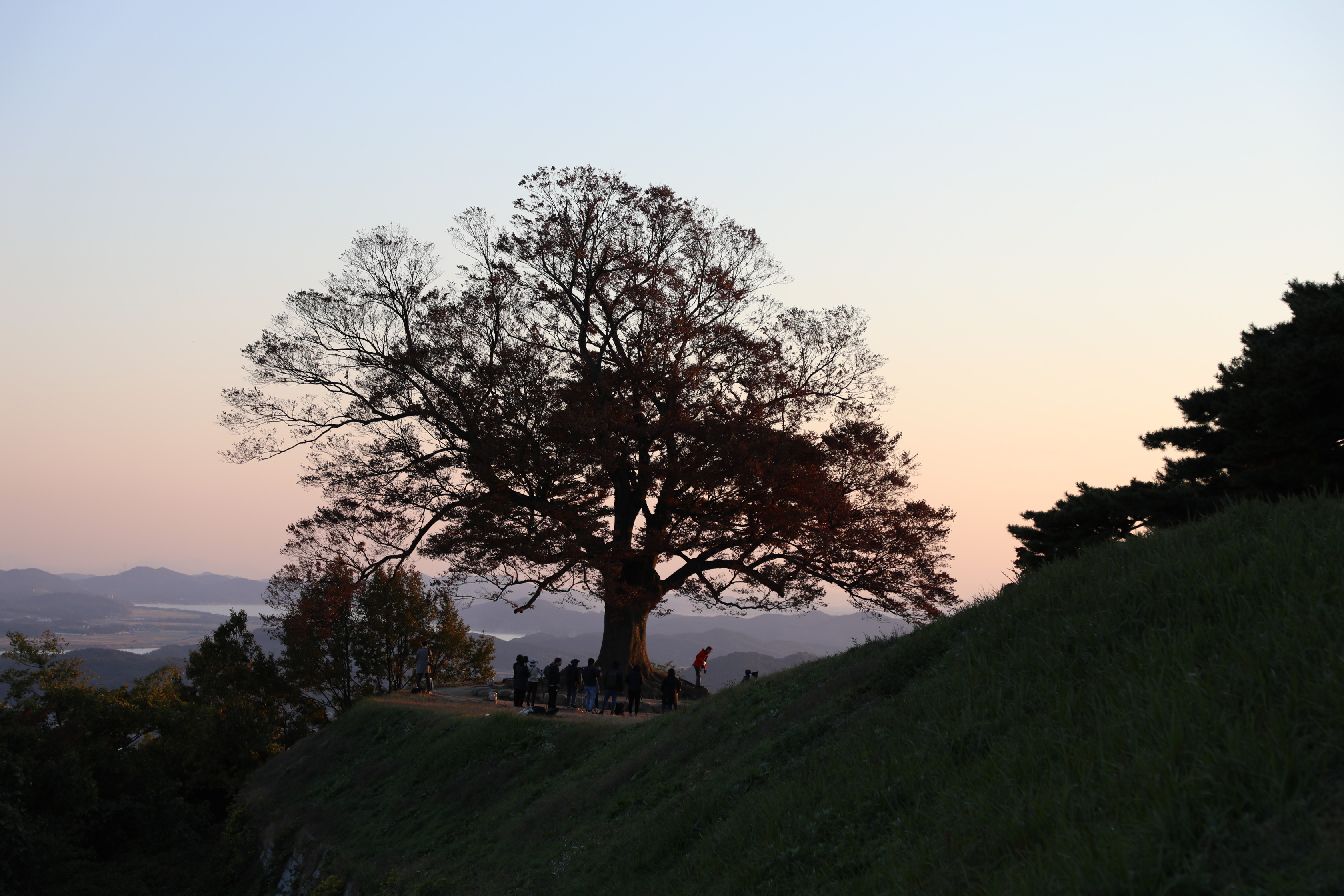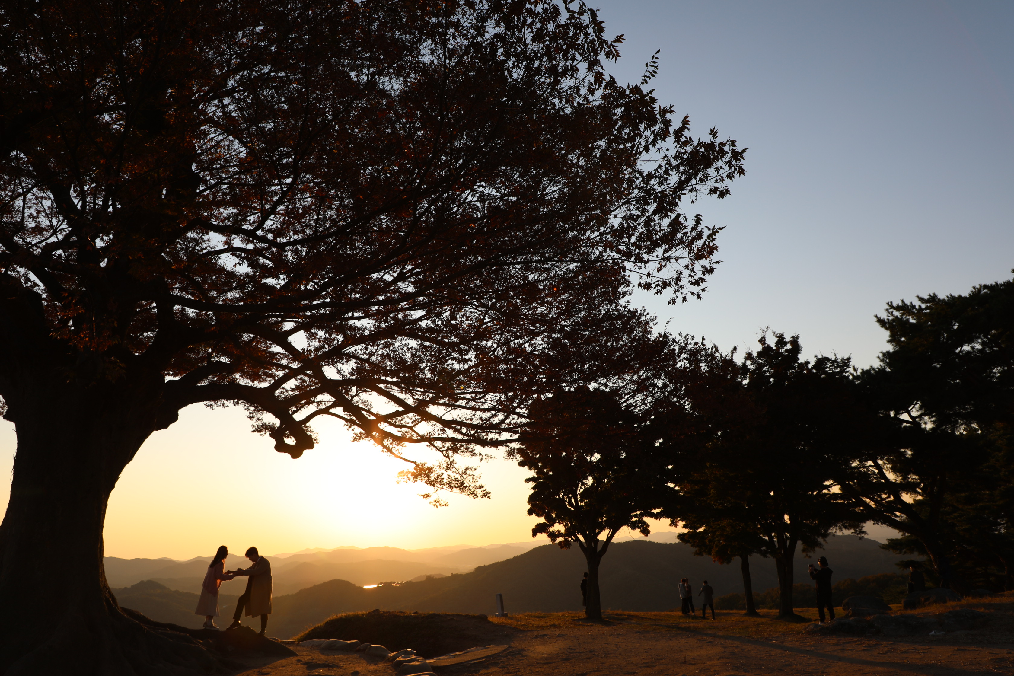부여 가림성은 너무 늦게 오르는 바람에 사랑나무 밖으로 지는 일몰을 구경하는 행운을 얻었다.