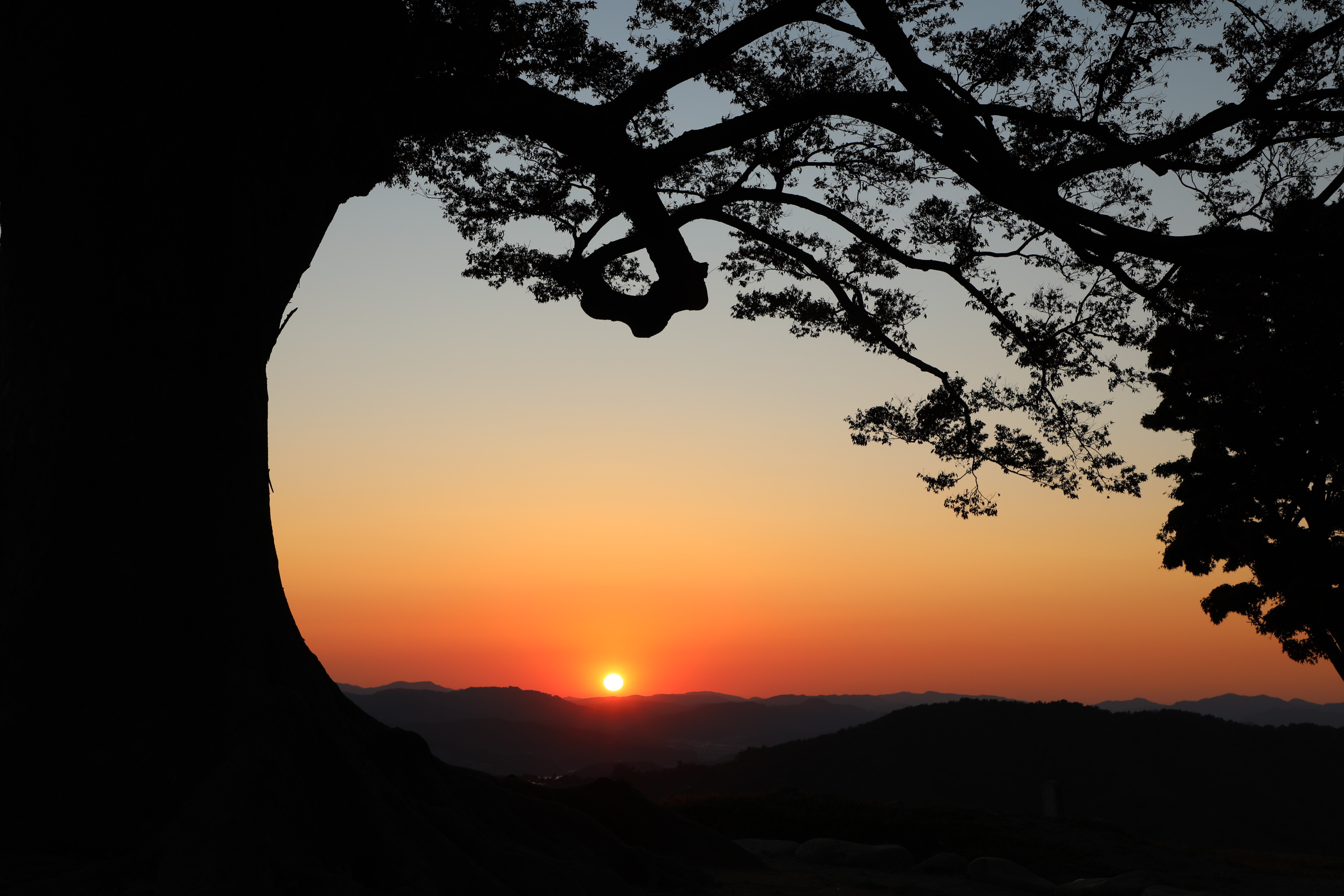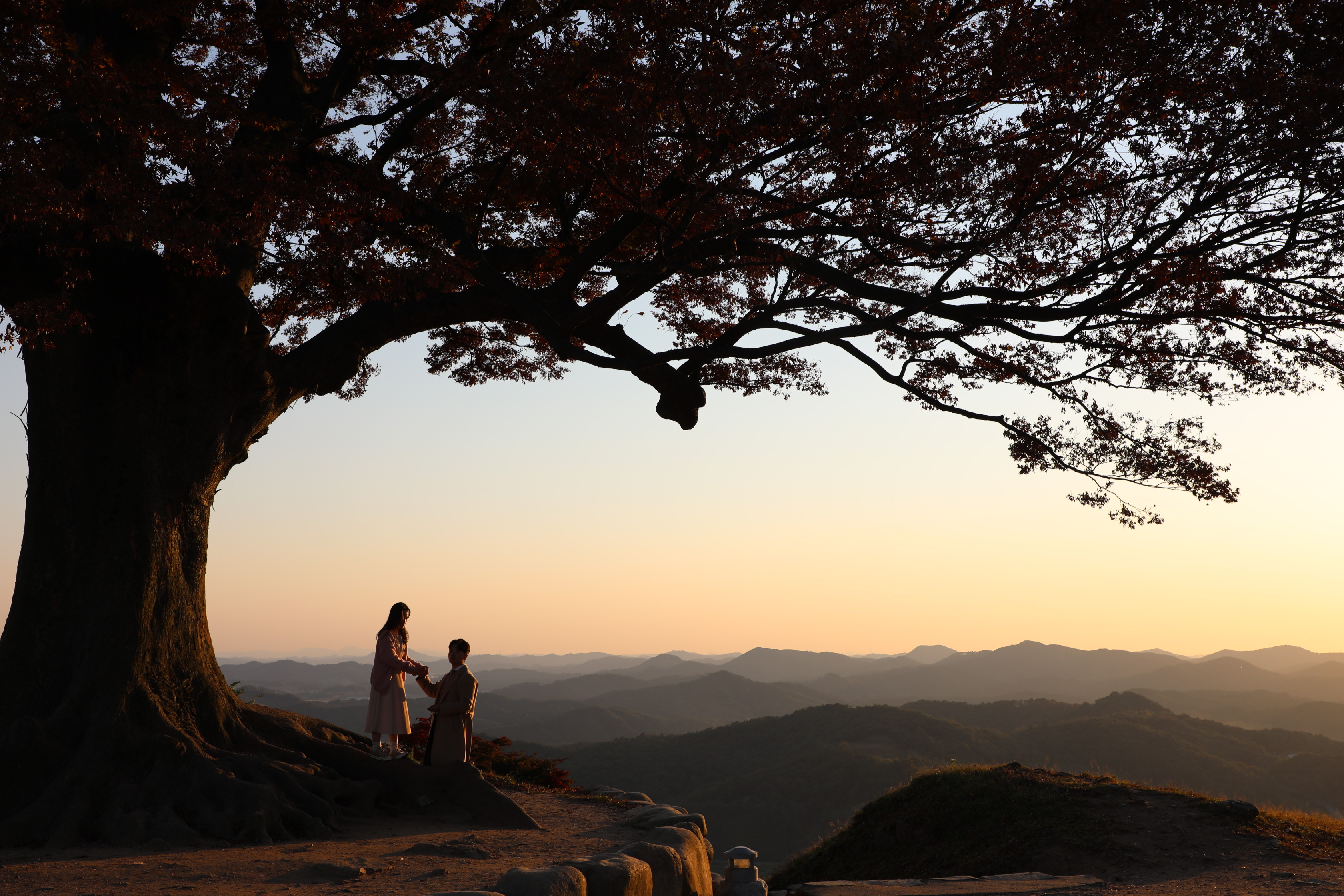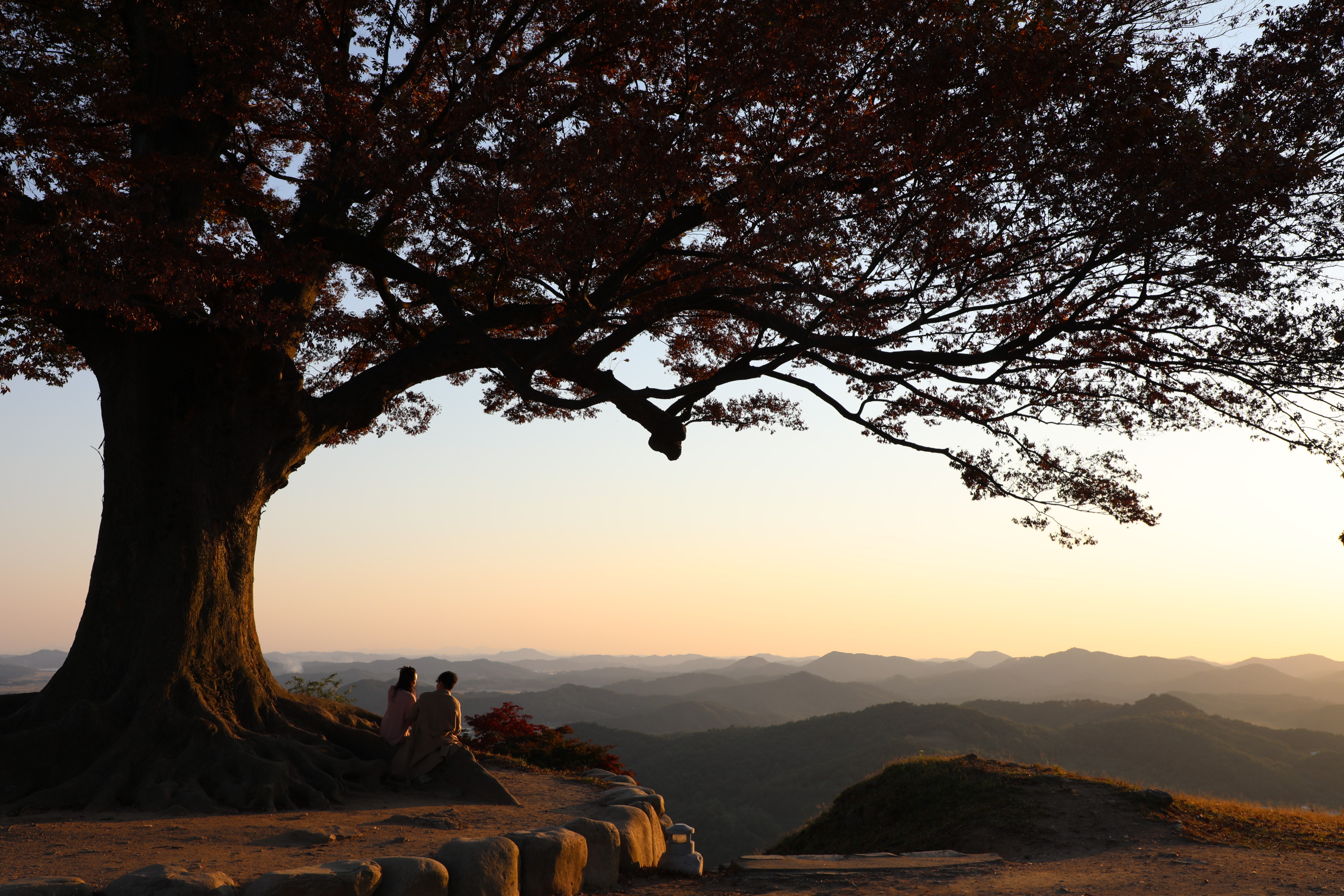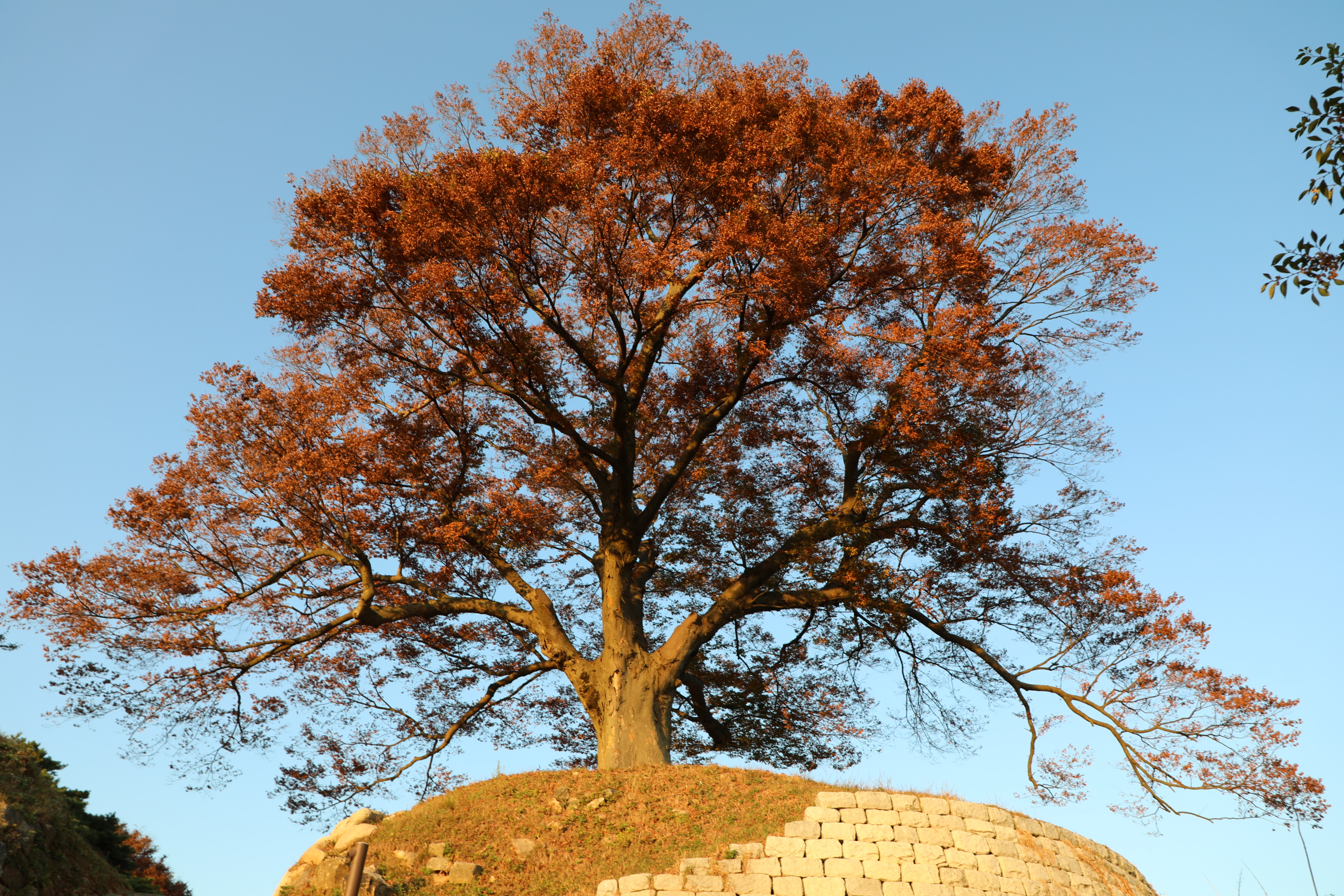 부여 가림성은 너무 늦게 오르는 바람에 사랑나무 밖으로 지는 일몰을 구경하는 행운을 얻었다.