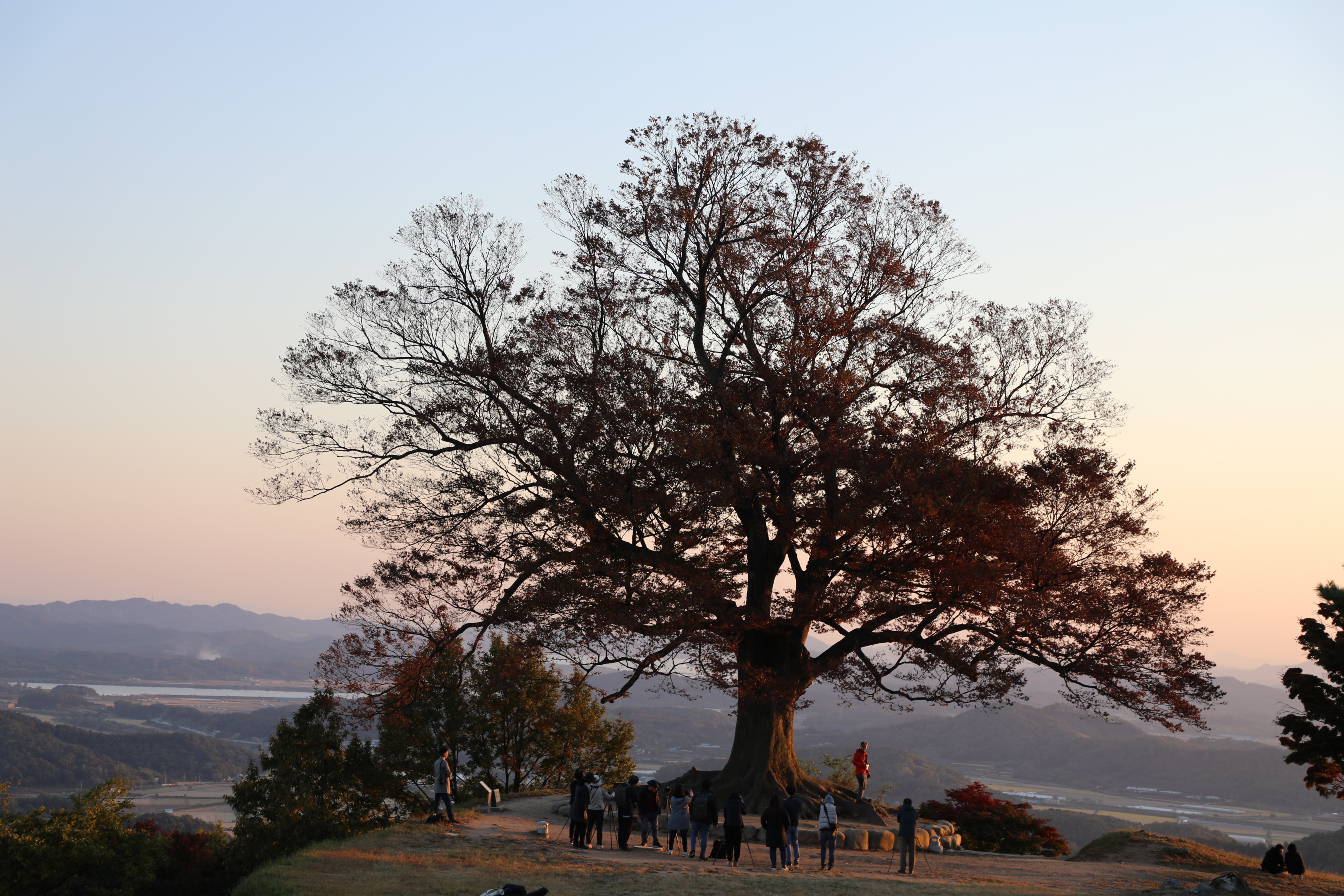 나무 아래서 논산, 강경, 익산, 서천이 한눈에 보인다.